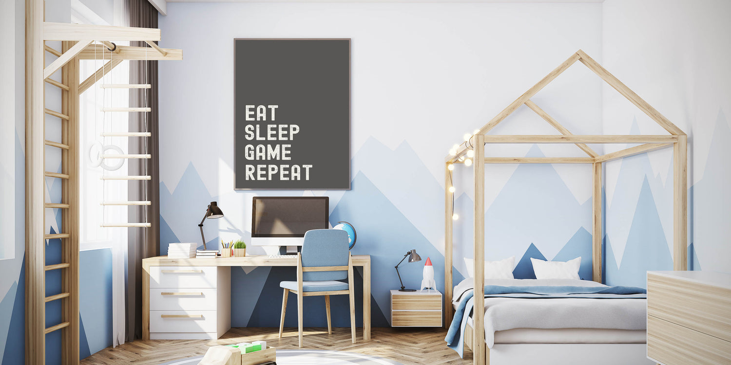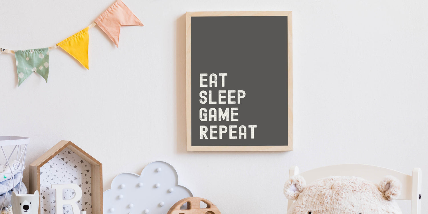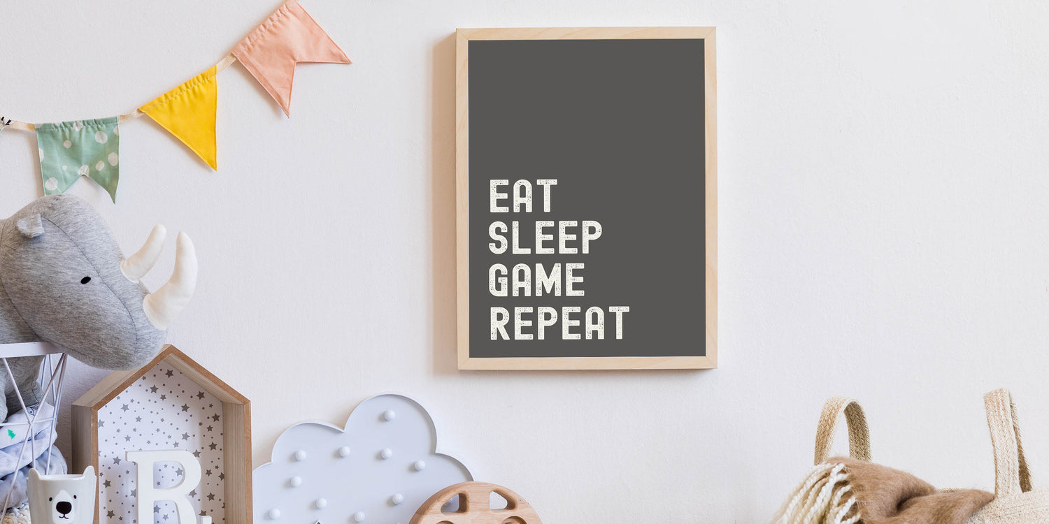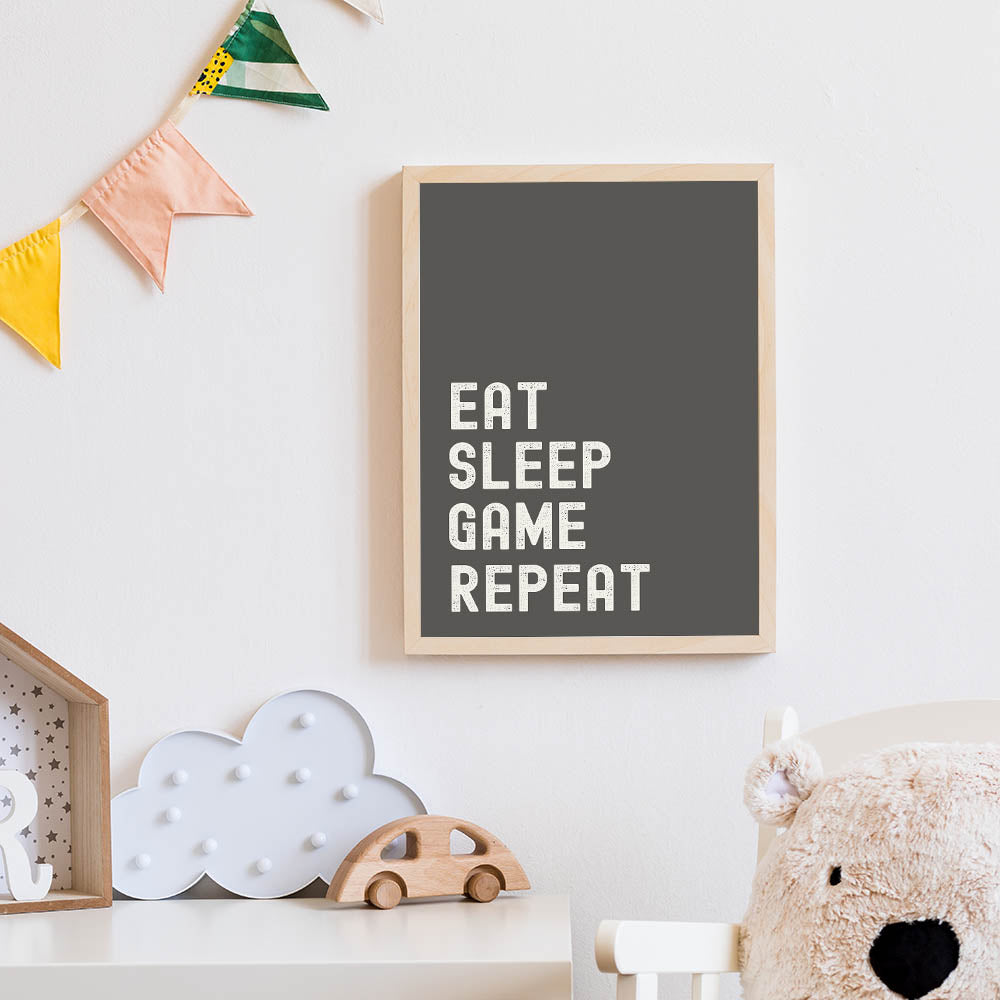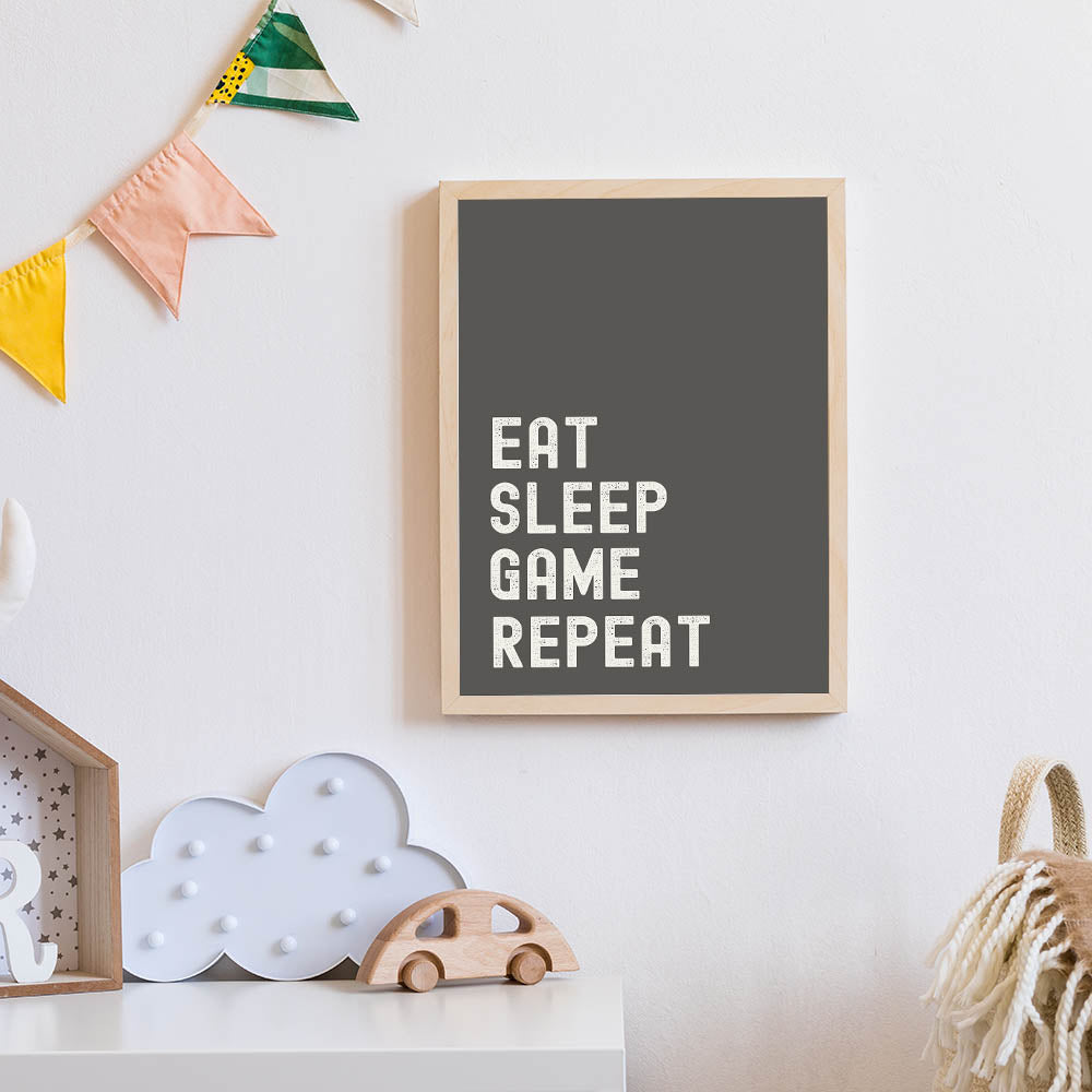 Eat Sleep Game Repeat Typography Art – Gamer Wall Decor