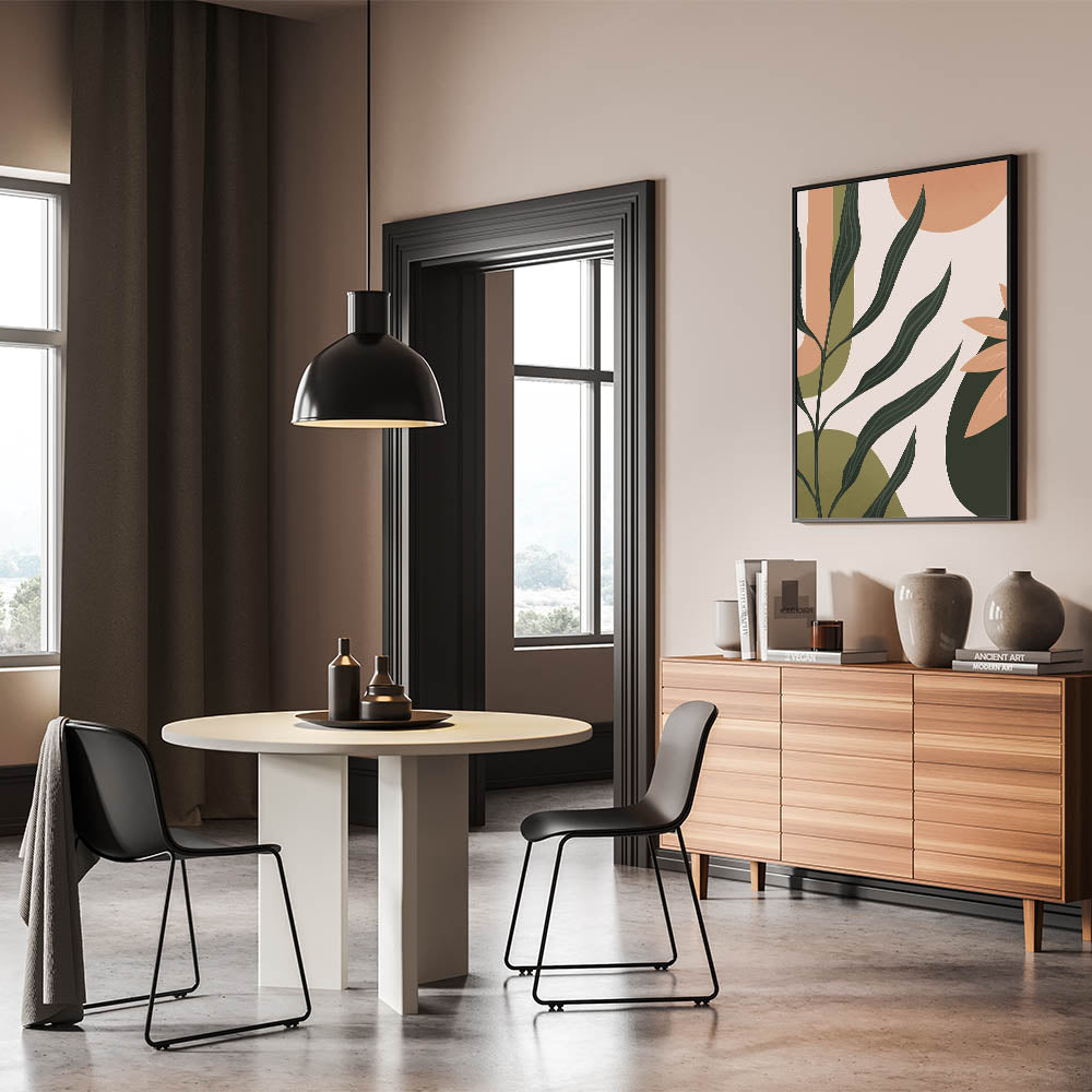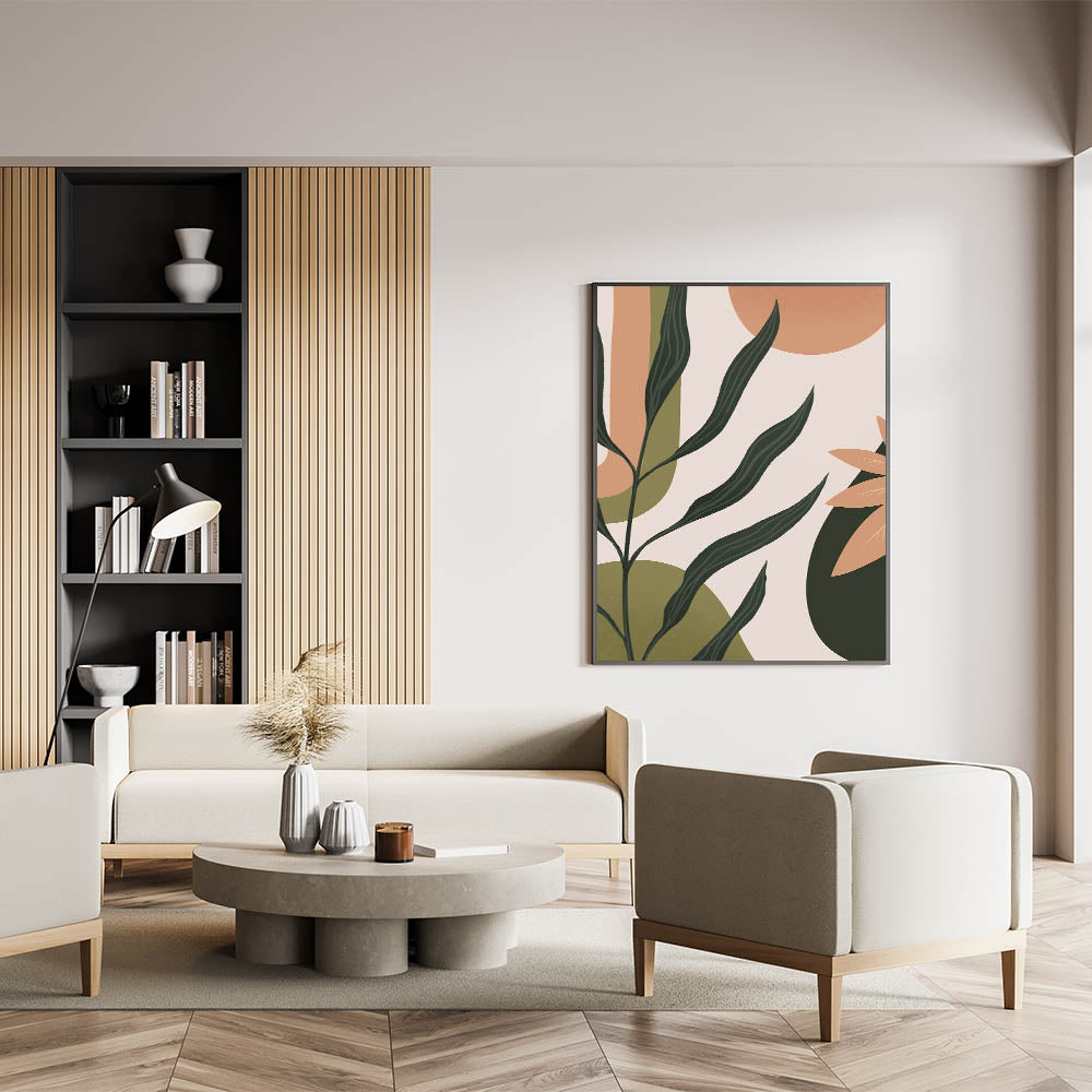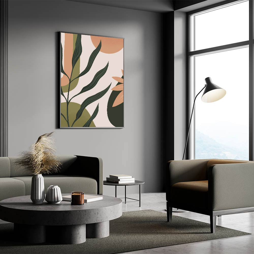 Bring a touch of nature into your home with this unique bohemian wall art. Featuring an abstract plant design with deep green and soft peach tones, this boho decor canvas embodies the free-spirited essence of artistic bohemian style. The vibrant mix of earthy colors makes it a perfect addition to living rooms, bedrooms, or even home offices, where it can enhance your space with a warm, natural vibe.
