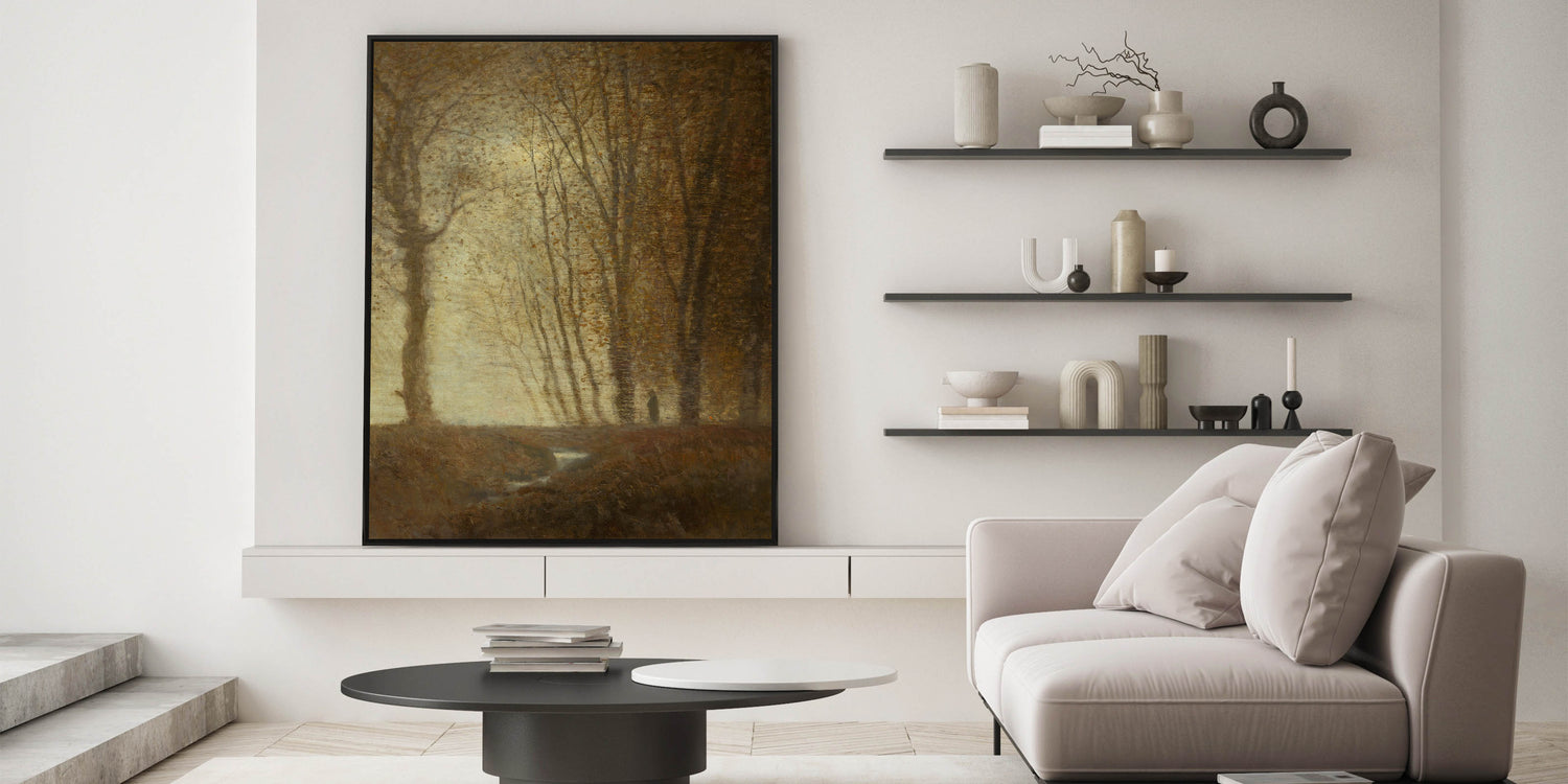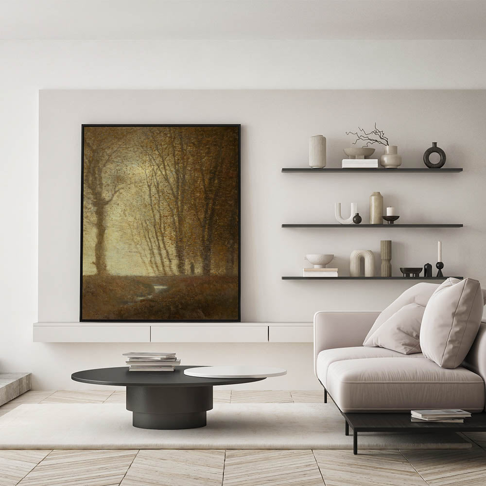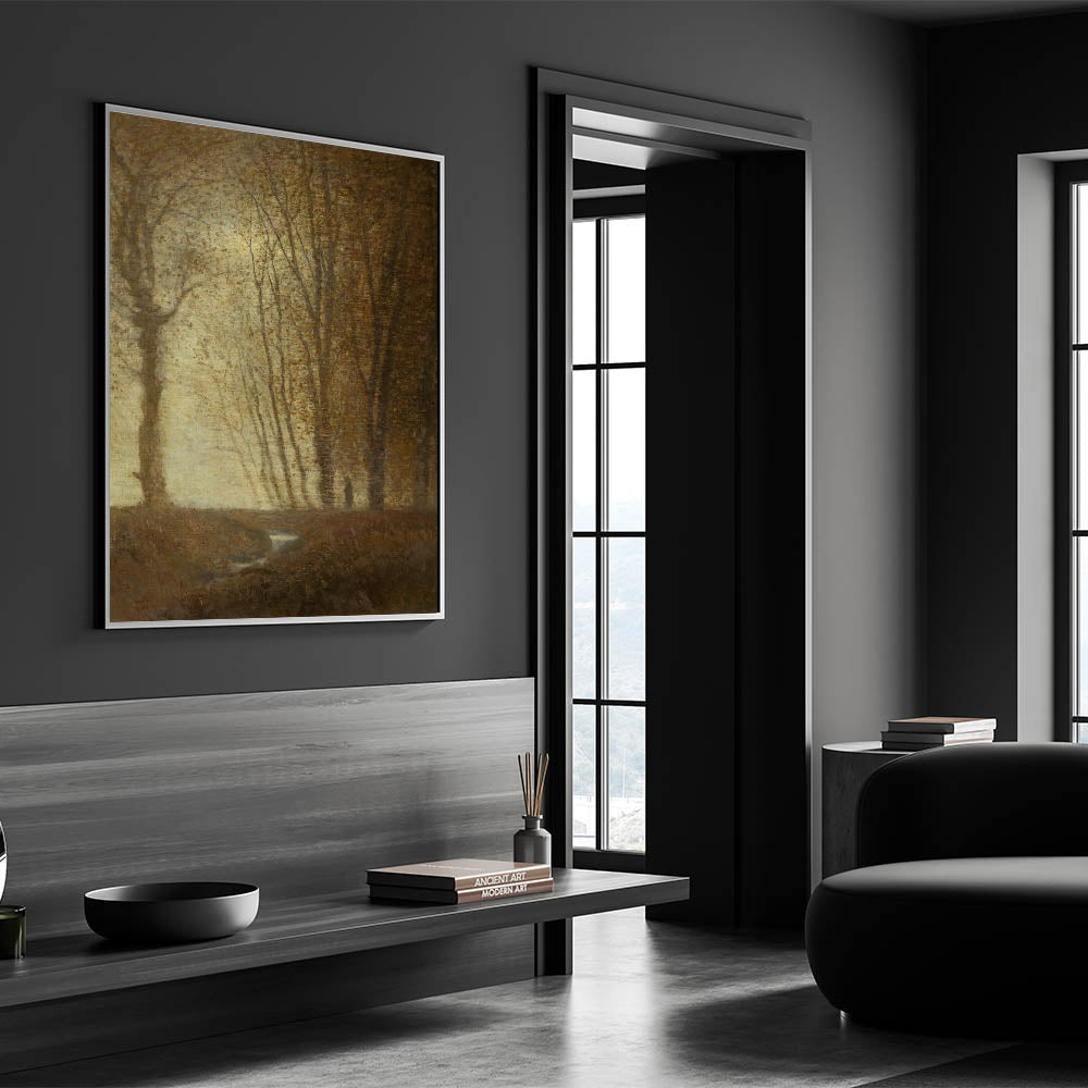 Edge of the Forest in Moonlight" by Ladislav Mednyánszky captures the quiet beauty of a moonlit forest scene, rendered in soft, earthy tones that evoke a sense of mystery and solitude. This Impressionist landscape art brings the subtle beauty of nature to life, making it a perfect addition for those who appreciate modern Impressionism and the natural world. Ideal for creating a serene, introspective atmosphere, this piece is available in multiple formats to suit your decor needs.