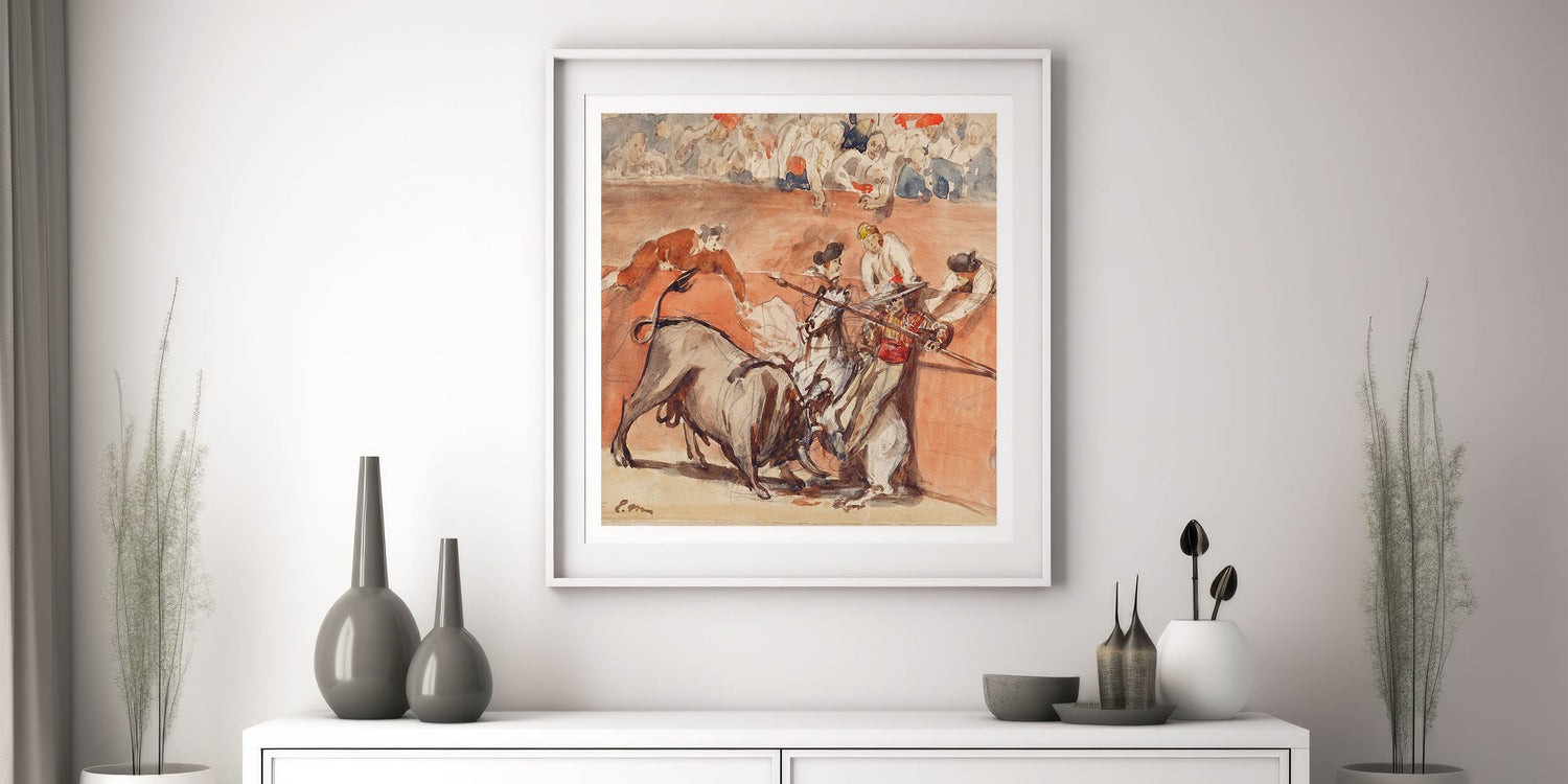 This Manet print brings the raw energy and passion of the bullring into your space, adding a captivating element to any decor. Perfect for those who enjoy art that celebrates movement and life’s intensity.