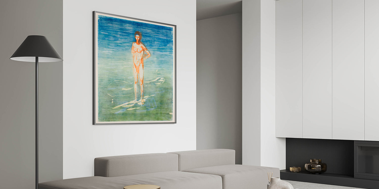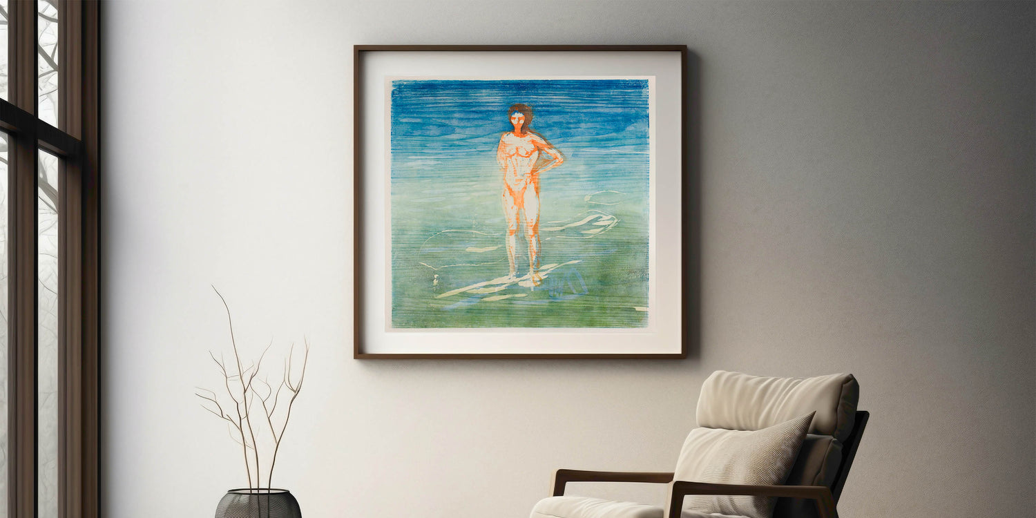 This timeless piece captures the essence of Munch's ability to portray human vulnerability and strength through art. Whether displayed in a home, studio, or gallery, "Man Bathing" is a powerful and sophisticated addition to any collection.