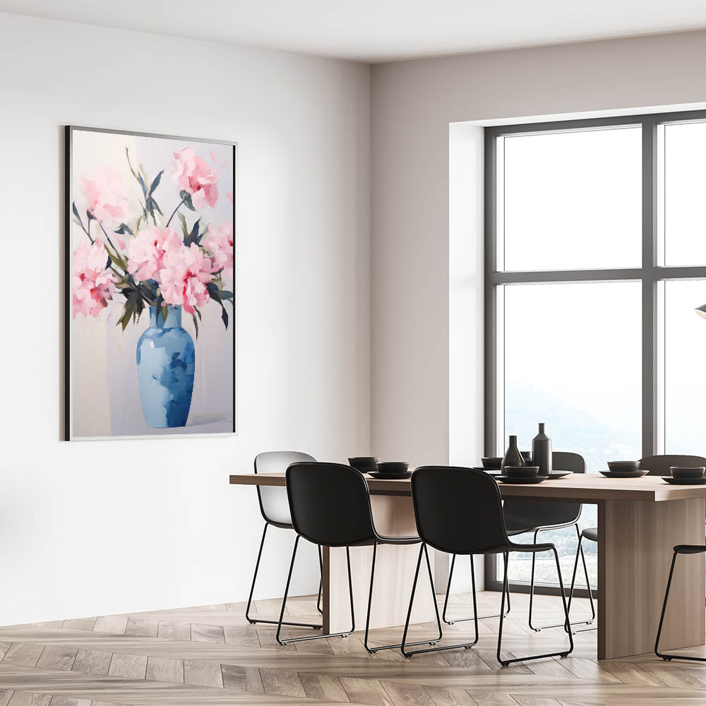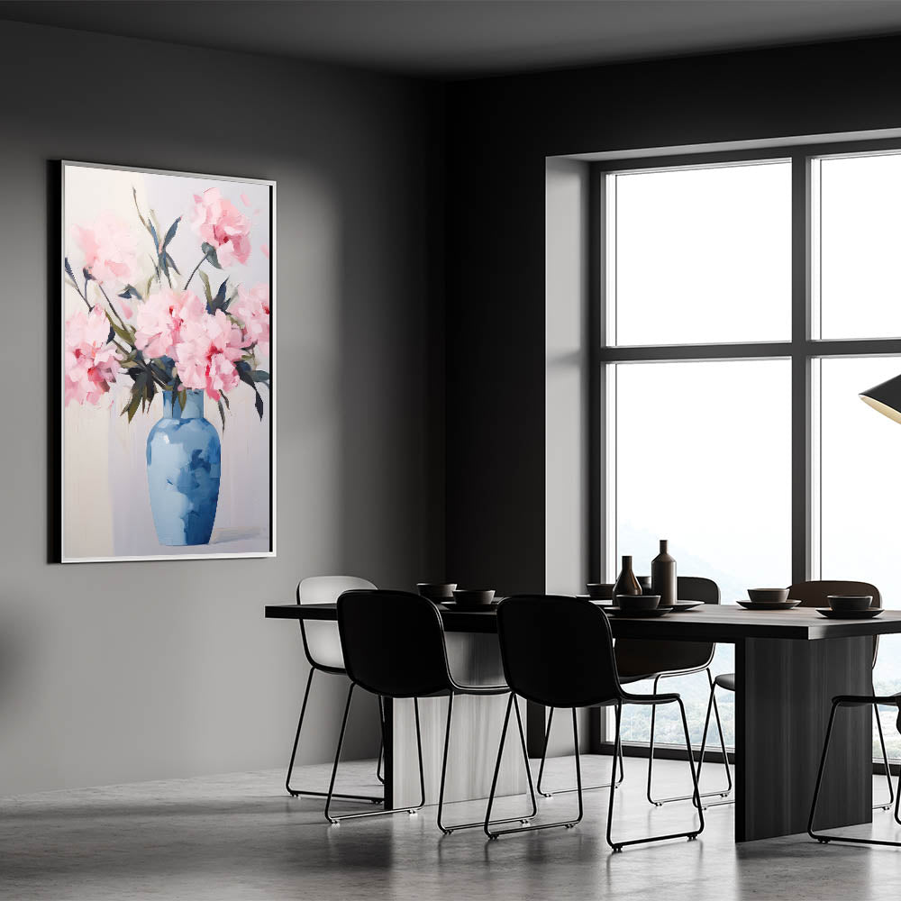 Add a pop of color and elegance to your space with this electric wall art featuring a charming blue vase filled with vibrant pink flowers. The vibrant electric painting captures the delicate beauty of floral arrangements while adding a modern twist with bold brush strokes and a striking blue vase. Perfect for living rooms, bedrooms, or even kitchens, this artwork infuses any space with a sense of freshness and elegance.