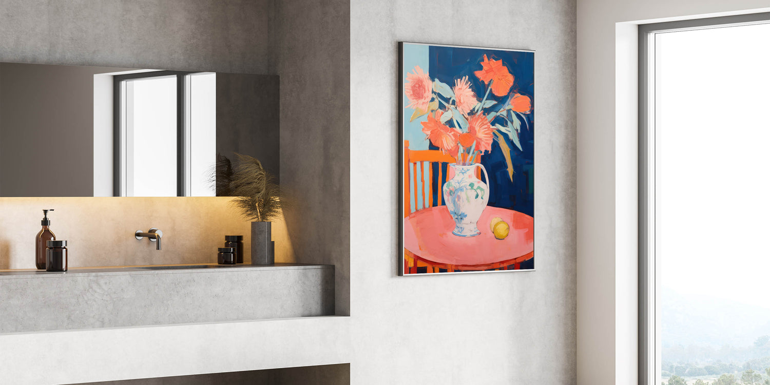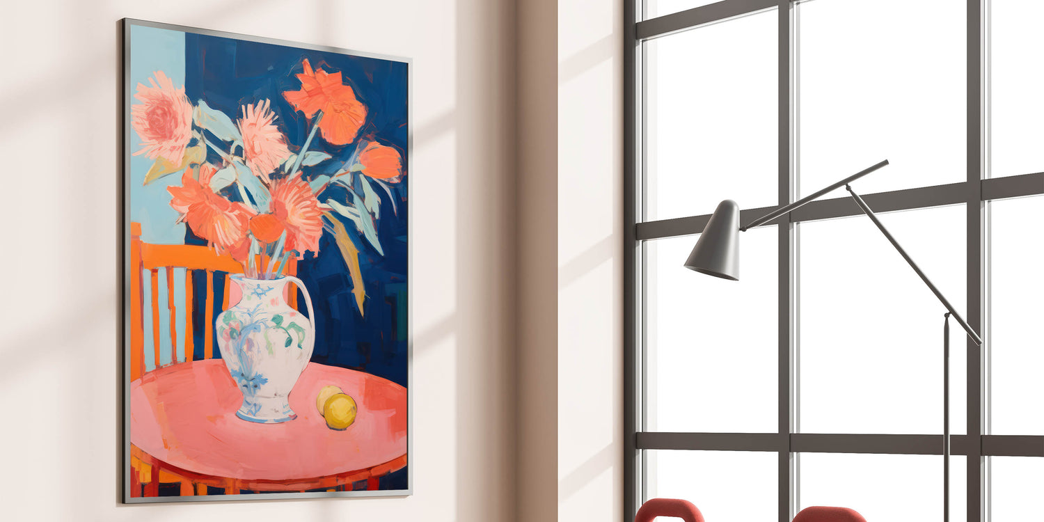 Electric Floral Wall Art: Bold Pink and Orange Flowers in Modern Decor