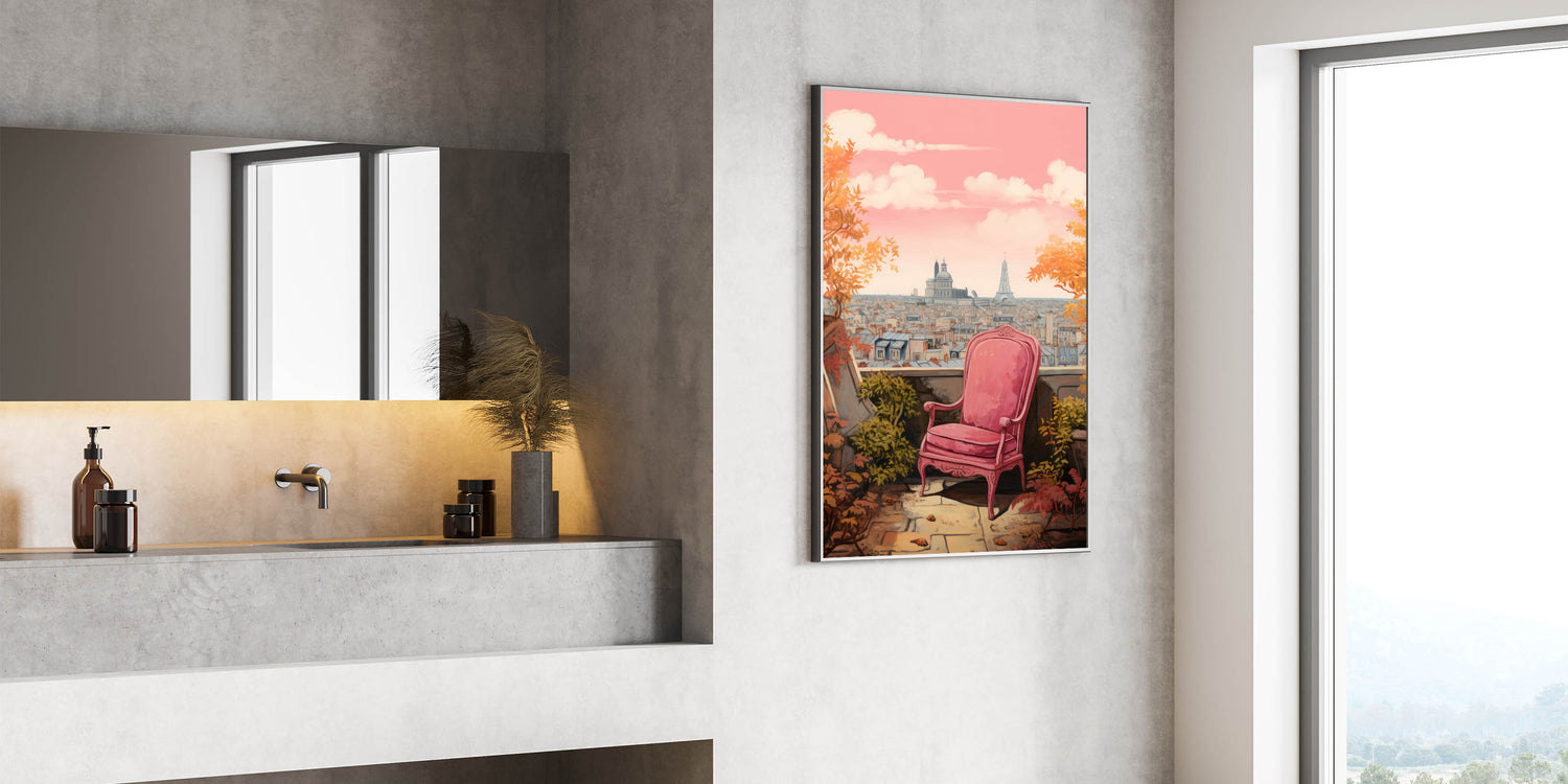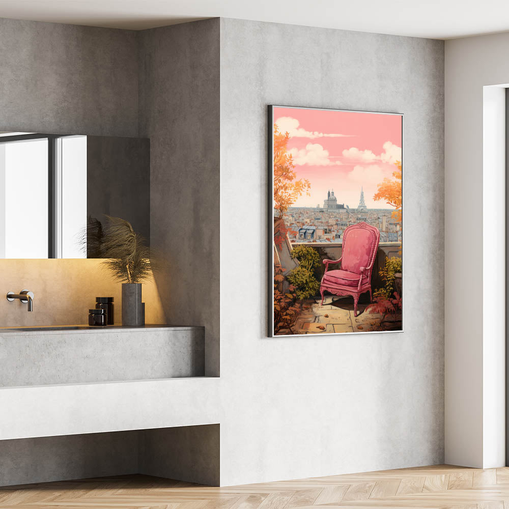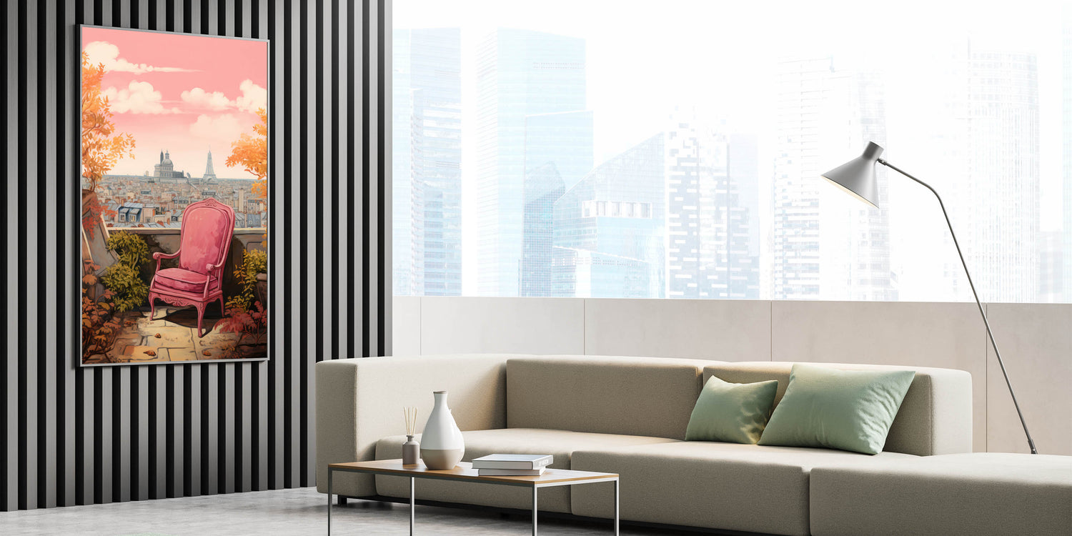 Transform your space with this charming electric-themed artwork featuring a vibrant pink chair set against a picturesque Parisian cityscape. The warm autumn leaves and iconic view of Paris in the background bring a touch of elegance and sophistication to any room. This electric art canvas captures the beauty of modern life blended with nature, making it an ideal piece for those who appreciate bold, contemporary decor.