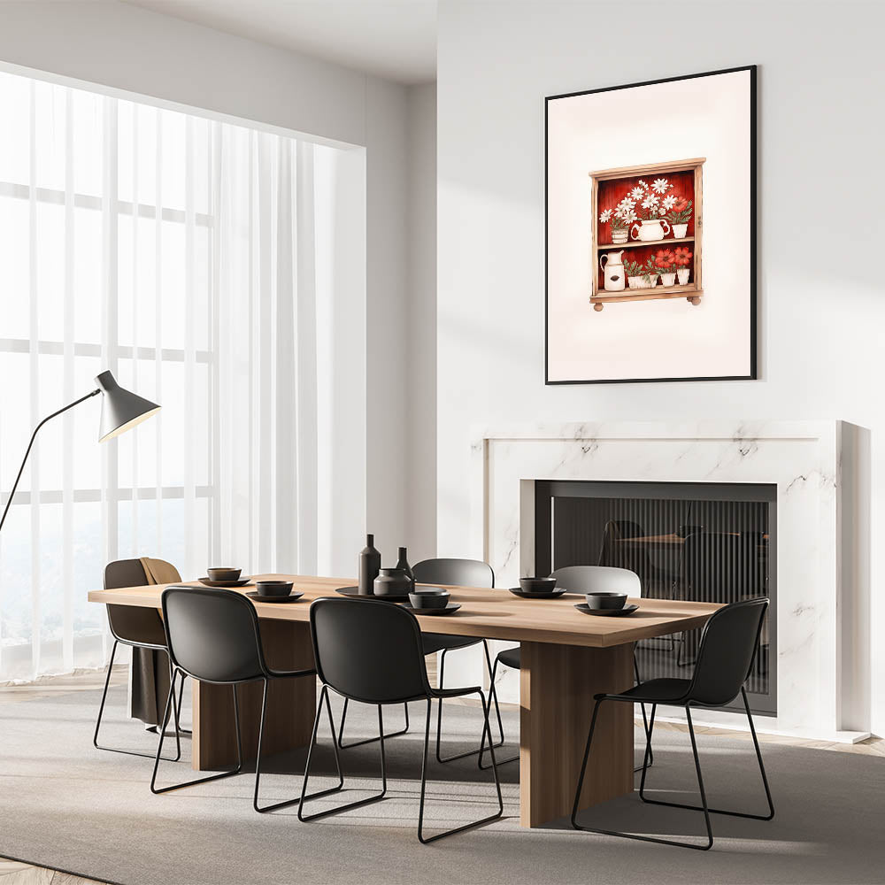 Brighten up your living space with this charming electric wall art, showcasing a vibrant floral shelf design. The eye-catching mix of florals arranged in rustic pottery brings a unique blend of cozy and modern aesthetics to your decor. Perfect for kitchens, living rooms, or any space needing a touch of warmth and energy, this colorful electric wall decor is a wonderful way to uplift any room.
