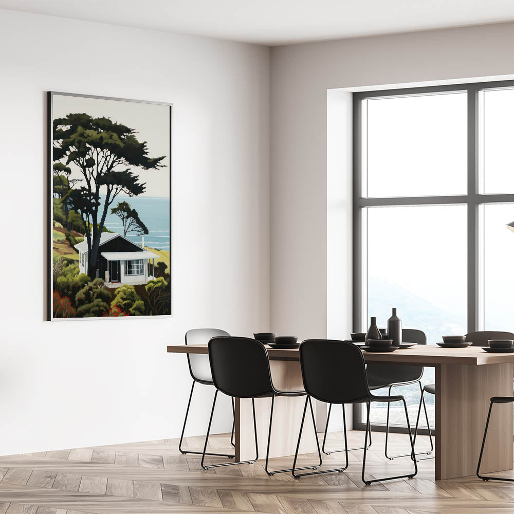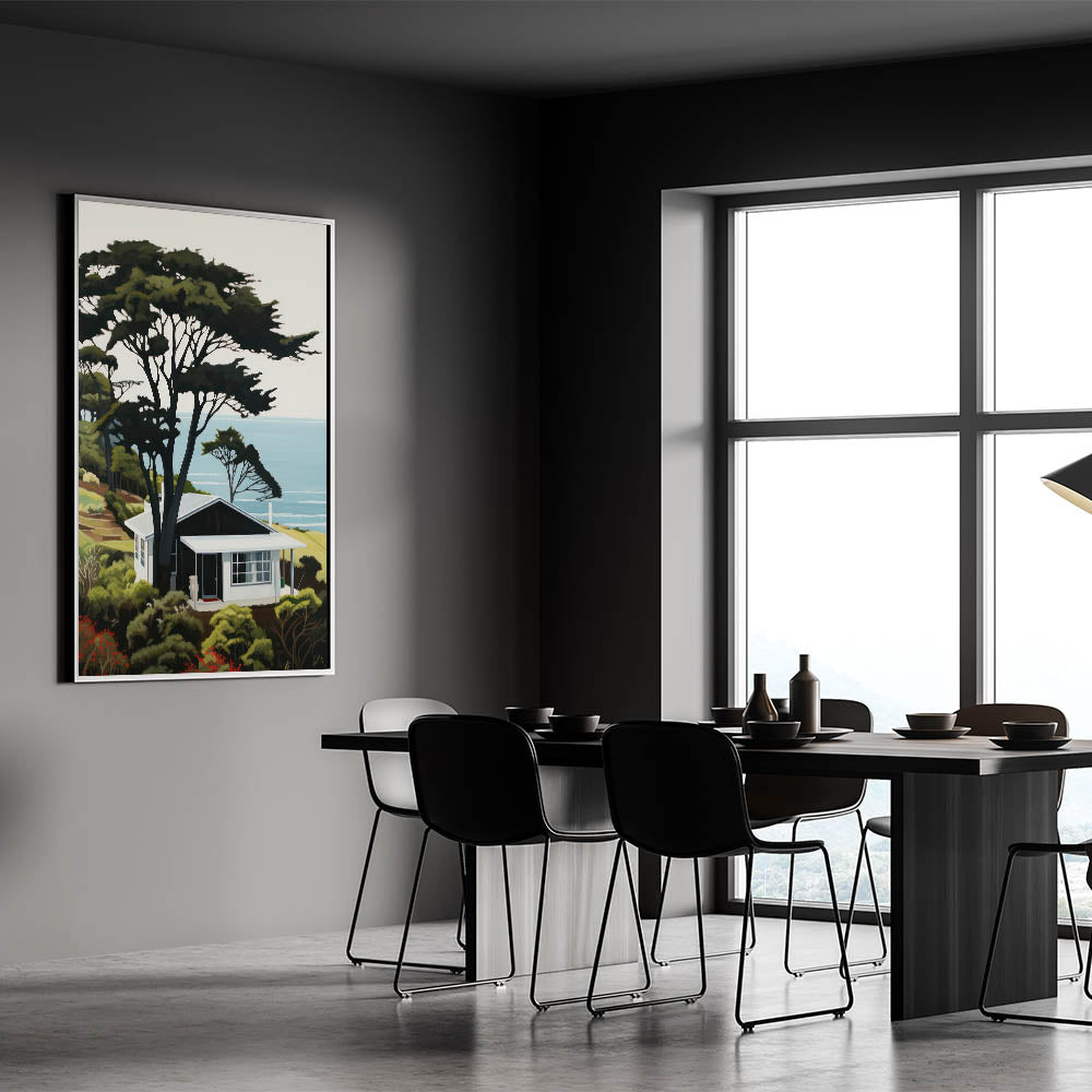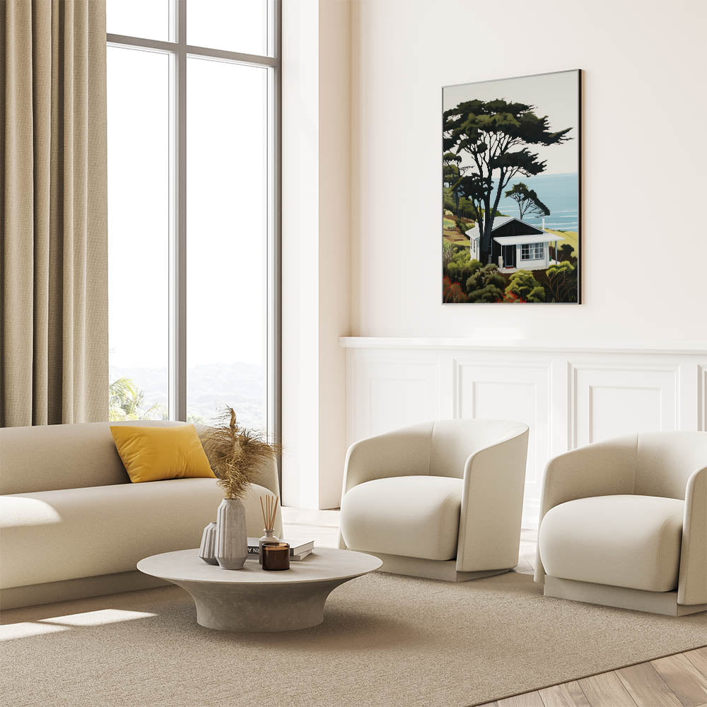 Embrace the charm of nature and modern design with this electric wall art, featuring a vibrant hillside cabin scene overlooking the ocean. This bold and dynamic electric artwork effortlessly combines natural beauty with modern decor, creating a stunning focal point for any room. Perfect for living rooms, bedrooms, or offices, this colorful electric wall decor brings a serene yet vibrant energy to your home.