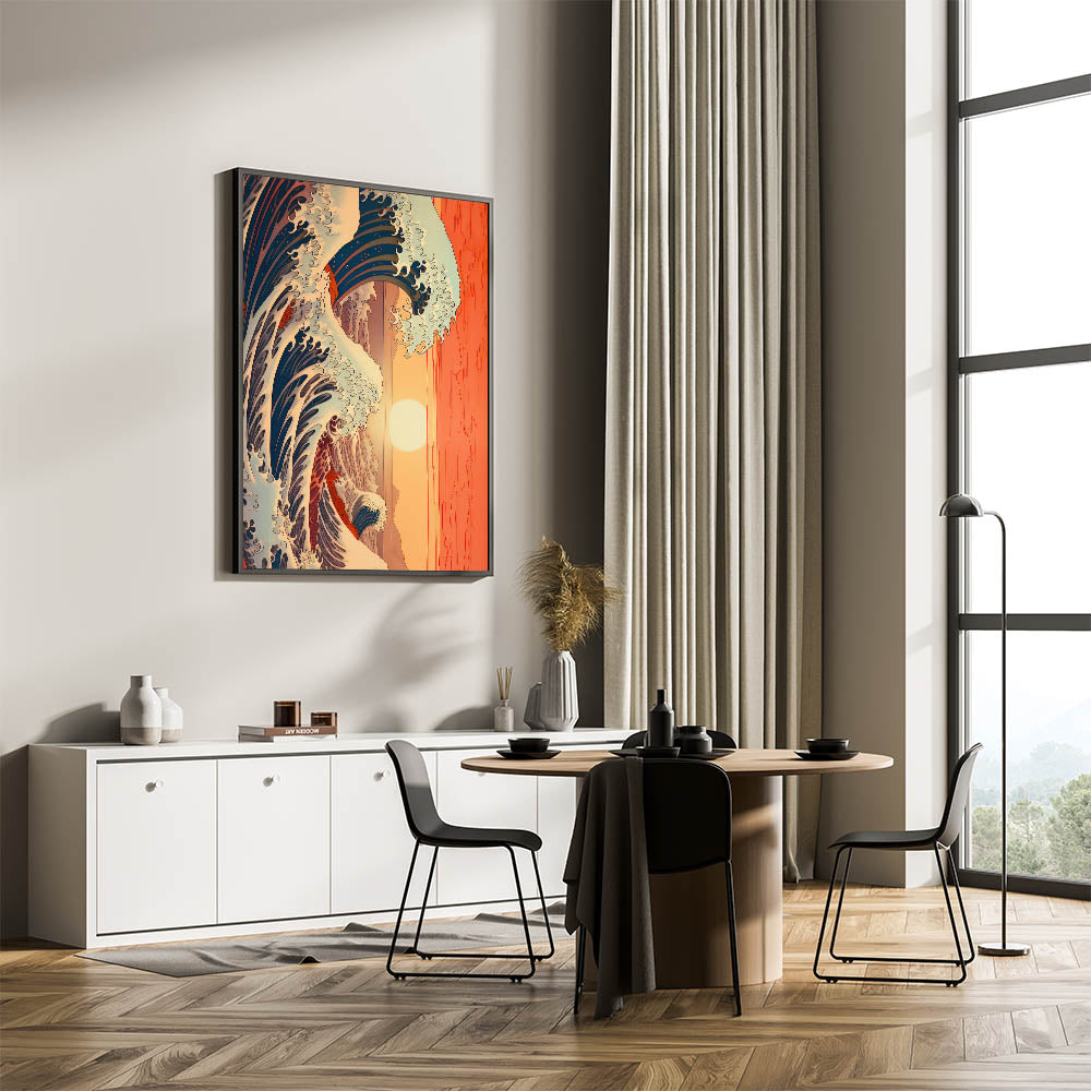 Electric Wave Art: Vibrant Sunset Ocean Scene on Modern Canvas Print