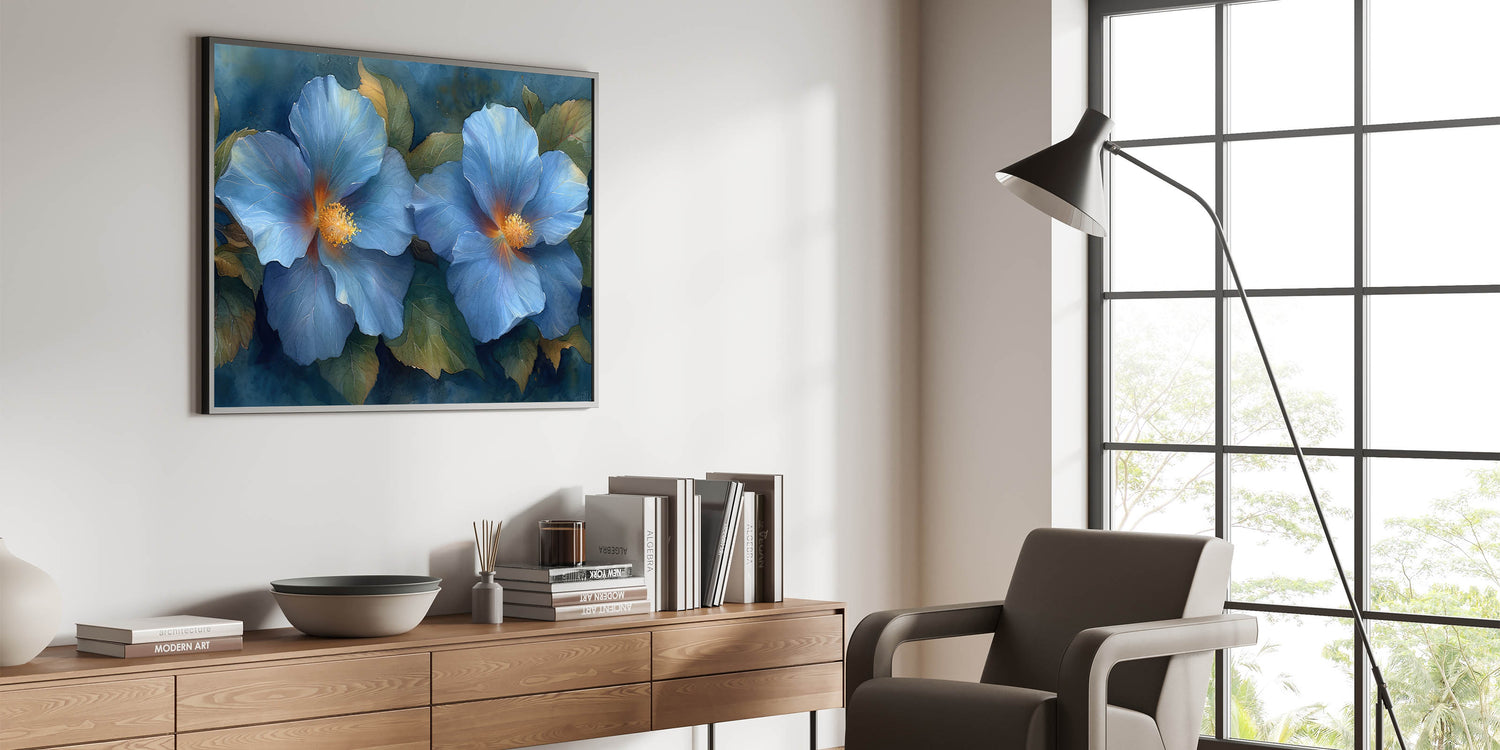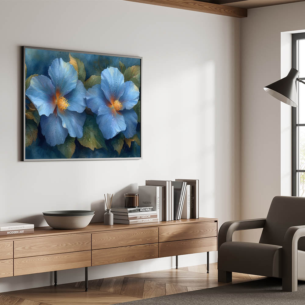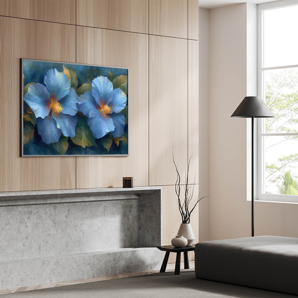 Elegant Blue Flower Glam Wall Art – Luxury Botanical Glam Decor