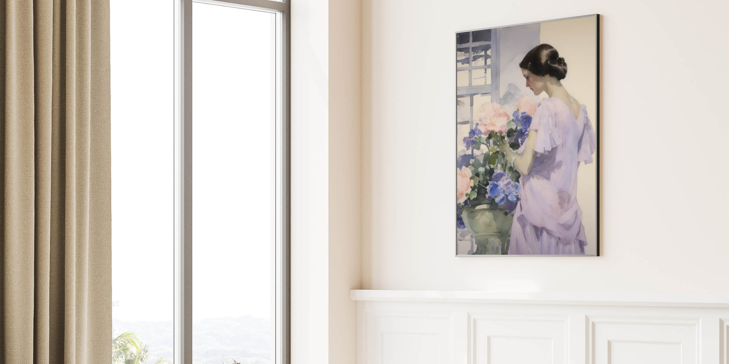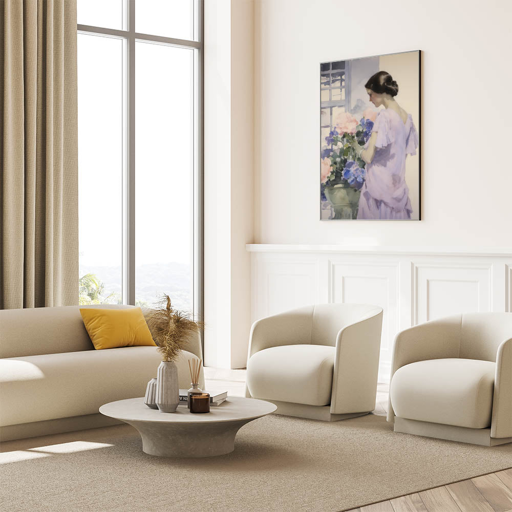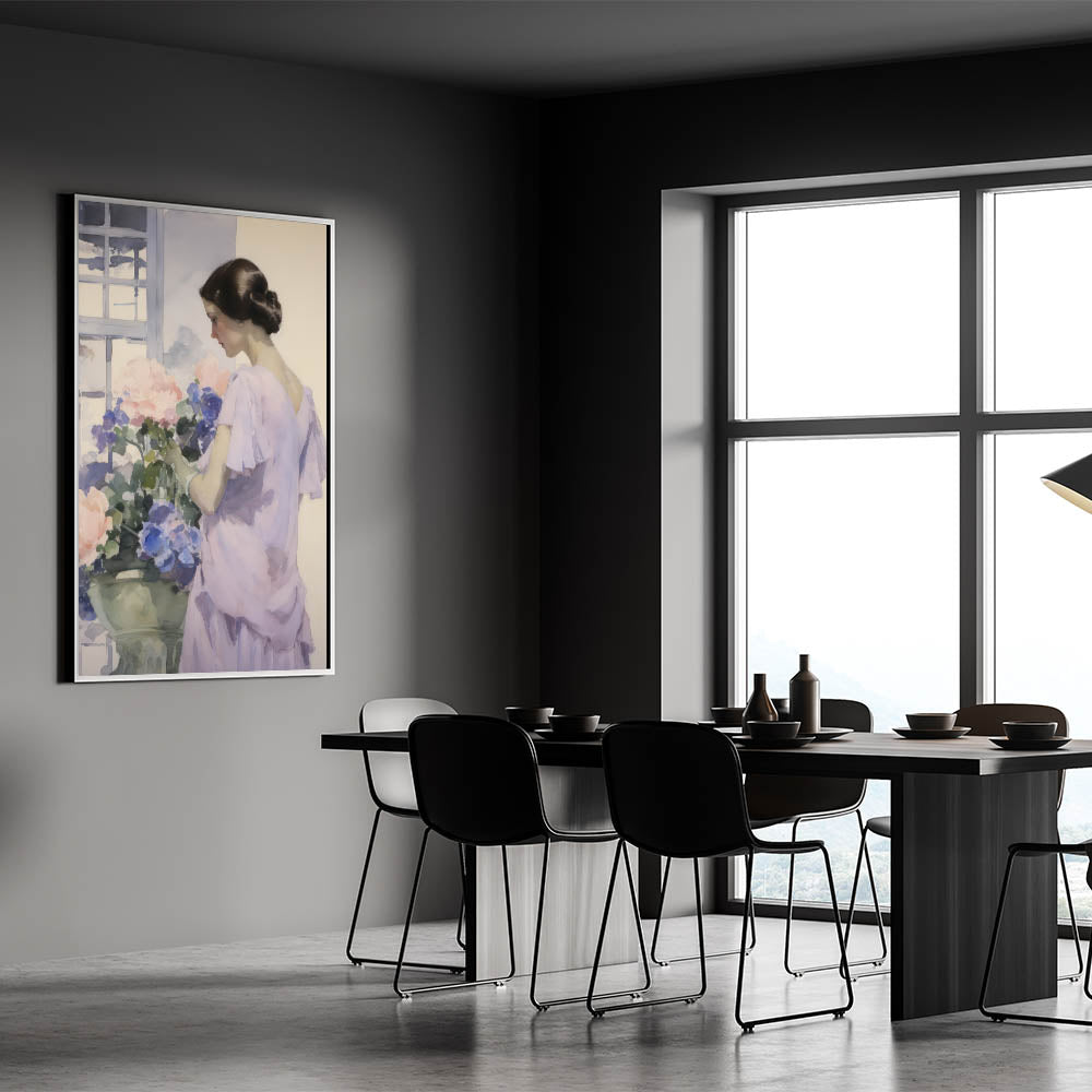 Add a touch of elegance and grace to your home with this stunning electric-themed artwork of a woman quietly admiring a beautiful bouquet of flowers. The soft pastel tones, paired with the serene figure, create a sense of calm and timeless beauty. This electric art canvas is perfect for those seeking an artistic statement that brings a sense of sophistication and tranquility to any room. Whether in a living room, bedroom, or study, this piece exudes charm and elegance, blending classic beauty with modern style.