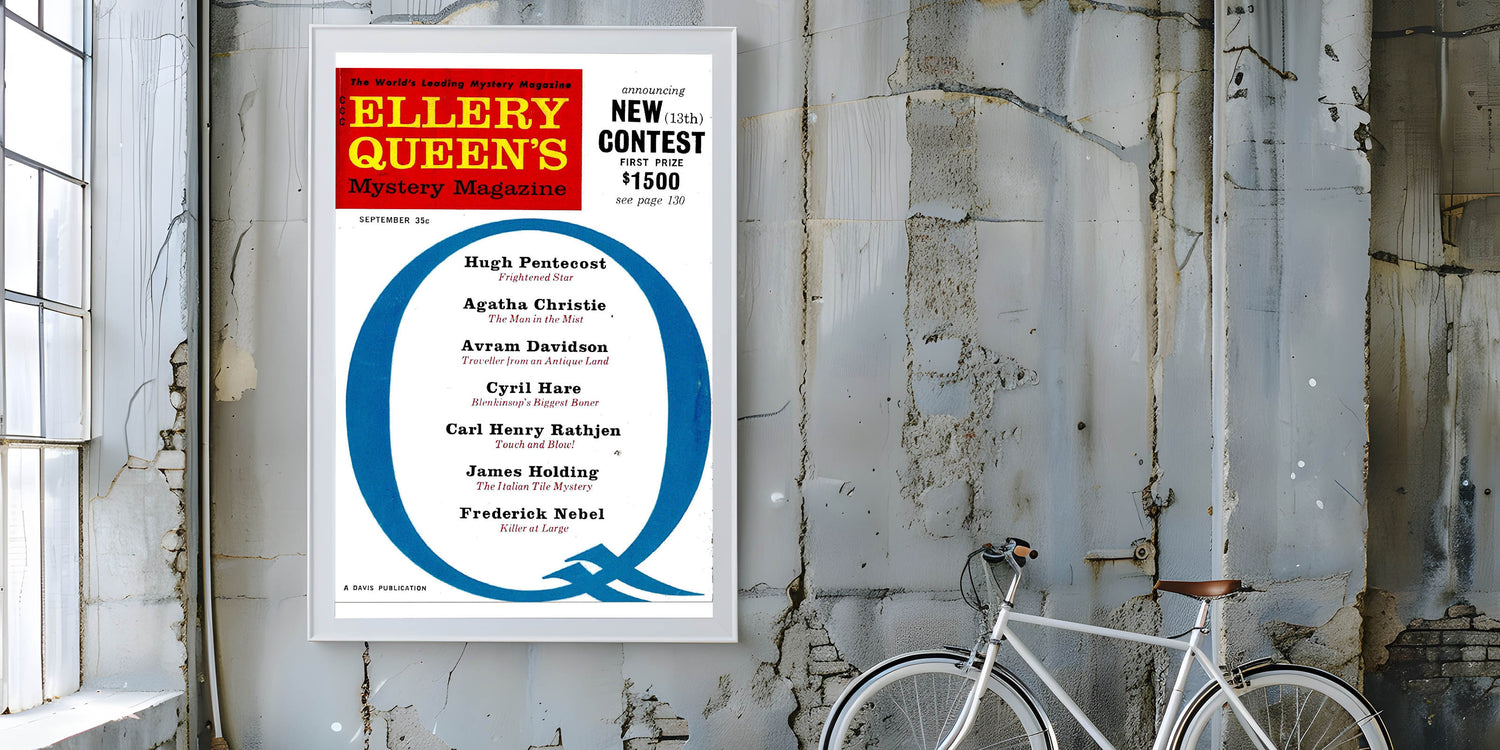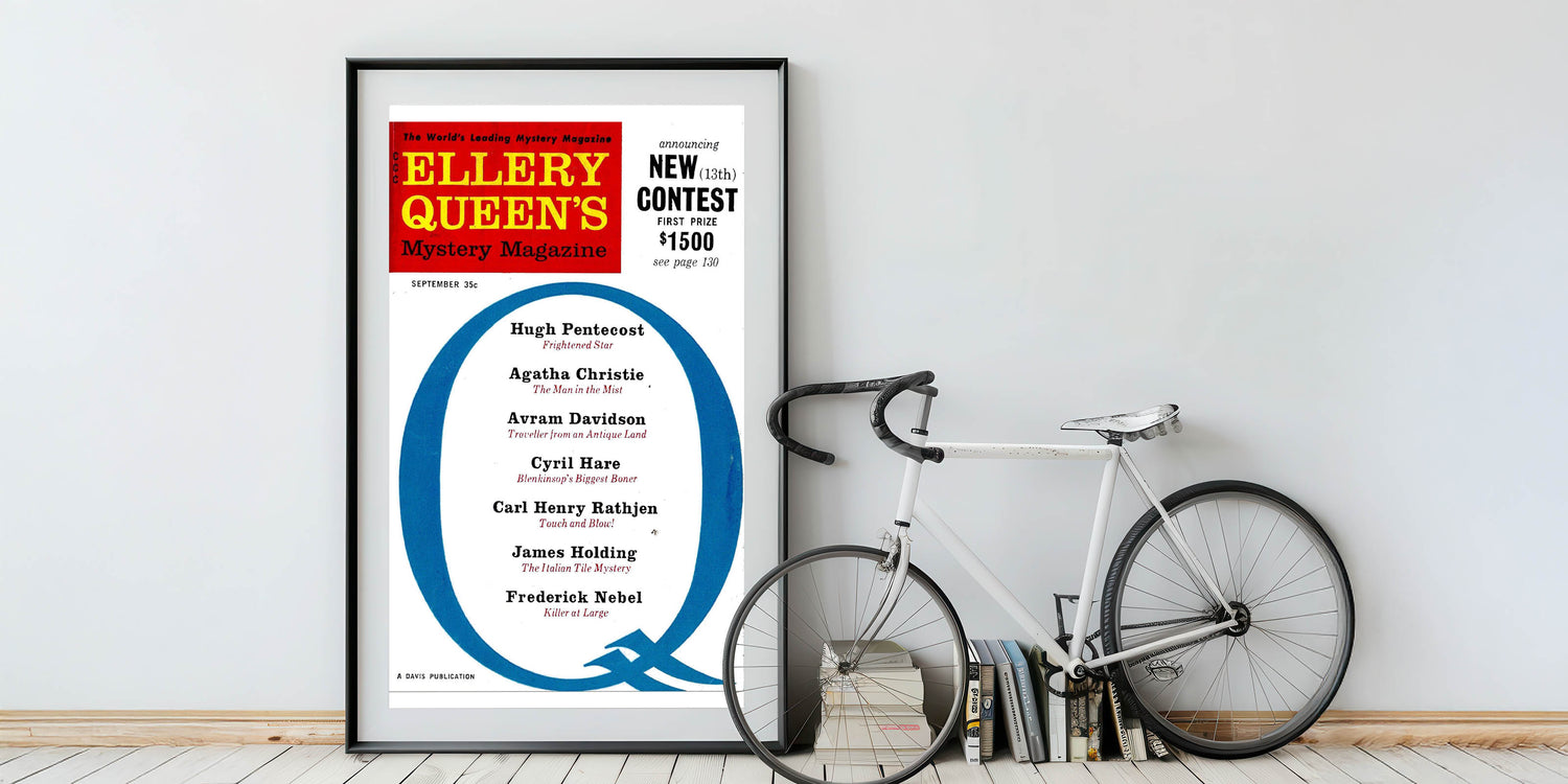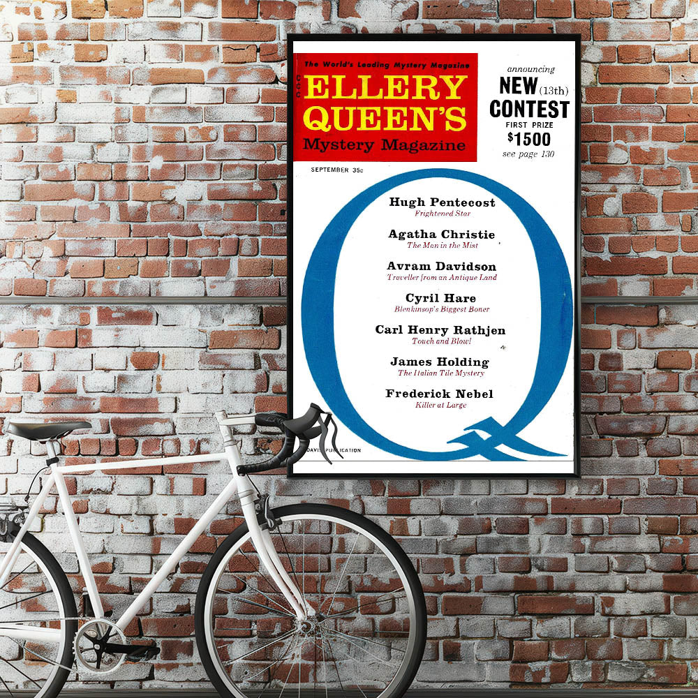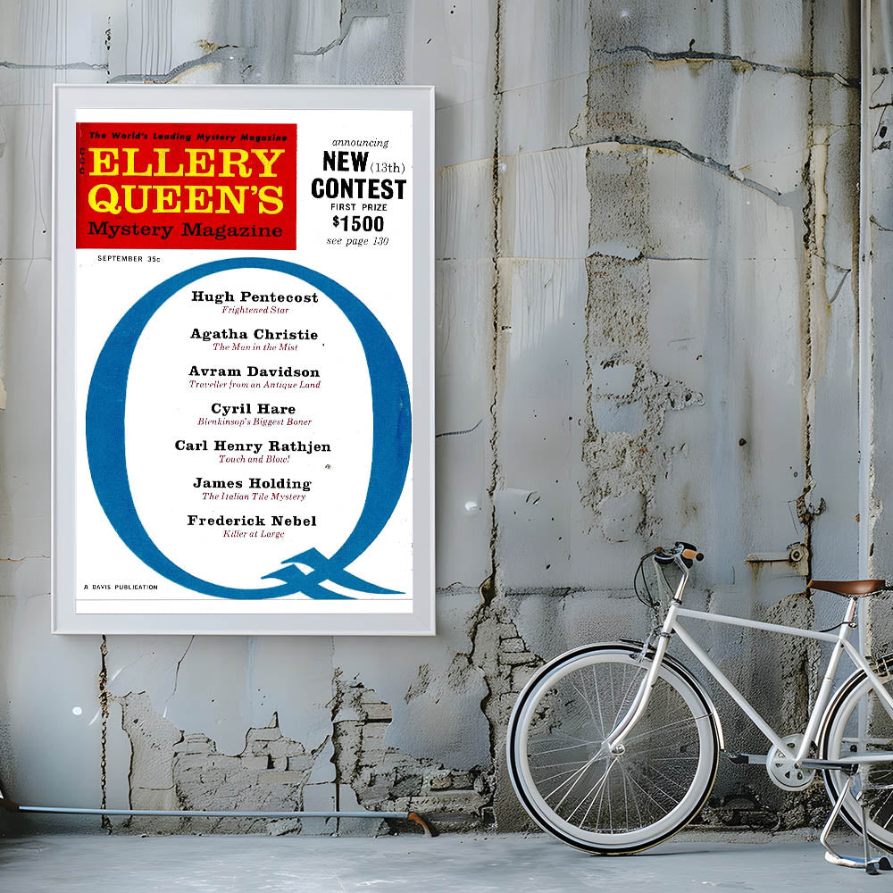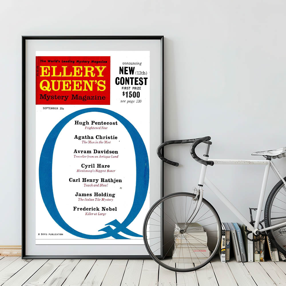 Bring home a piece of literary history with this Ellery Queen’s Mystery Magazine cover print. This vintage magazine cover wall art is a perfect addition for classic mystery lovers, collectors, and retro decor enthusiasts. Featuring bold typography, timeless authors like Agatha Christie, and a striking design, this classic magazine cover artwork embodies the charm of mid-century editorial art.