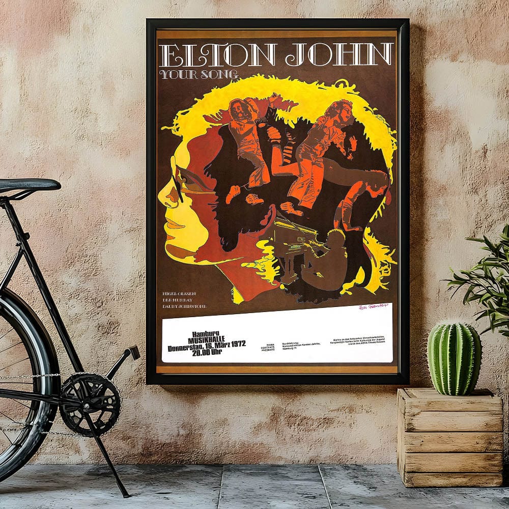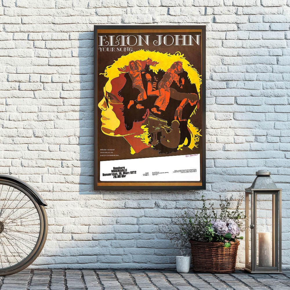 Bring the timeless charm of retro aesthetics into your home with this iconic Elton John Retro Poster Art. Inspired by the vibrant energy of the 1972 "Your Song" performance, this vintage music print is perfect for fans of classic rock and pop. Featuring bold colors and a dynamic design, it captures the essence of vintage decor and nostalgic art prints, making it an ideal addition to any collection.