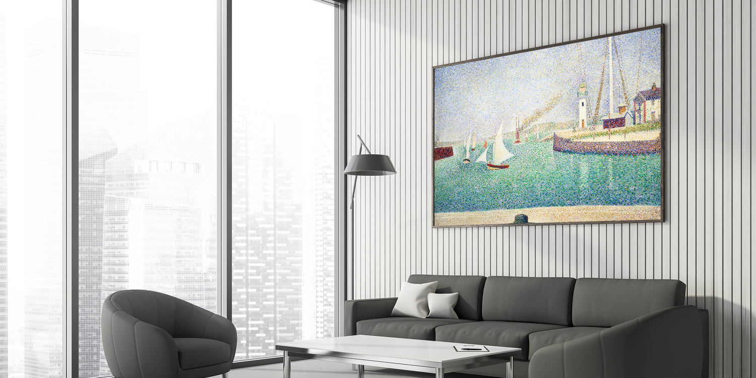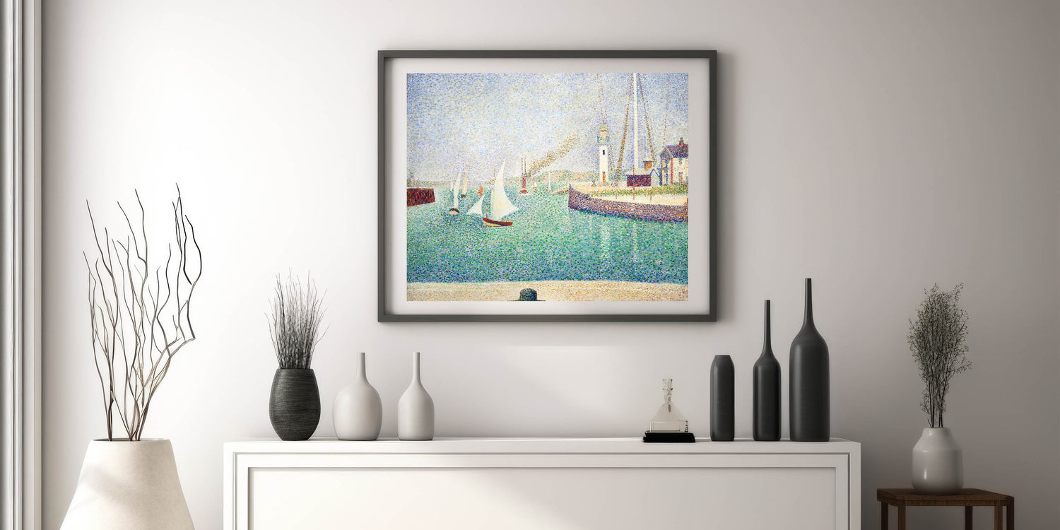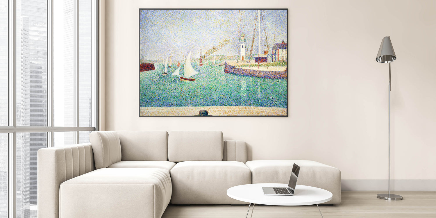 - High-quality reproduction of Georges Seurat’s "Entrance to the Port of Honfleur"