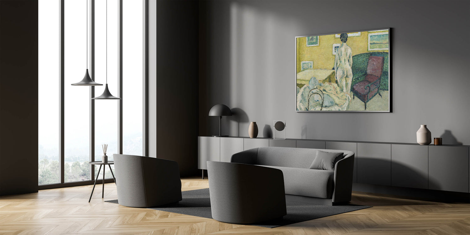 Bring an expressive and emotive touch to your space with this captivating Expressionism Wall Art piece. The painting depicts a modern nude figure in an interior setting, skillfully blending muted tones and vibrant brushstrokes that characterize Modern Expressionism. Perfect for art enthusiasts, this Expressionist Canvas Print will add a sophisticated and artistic ambiance to your home or office.