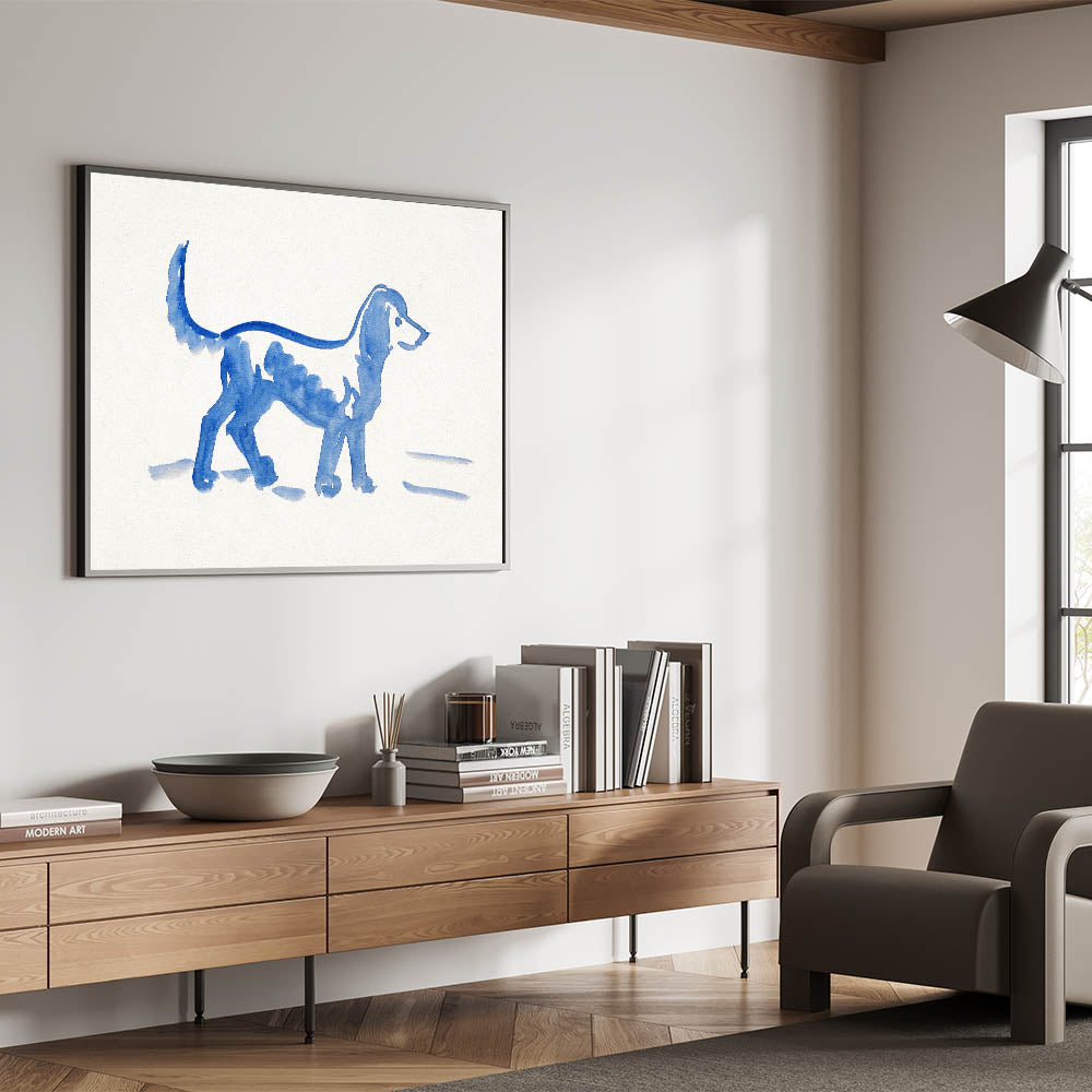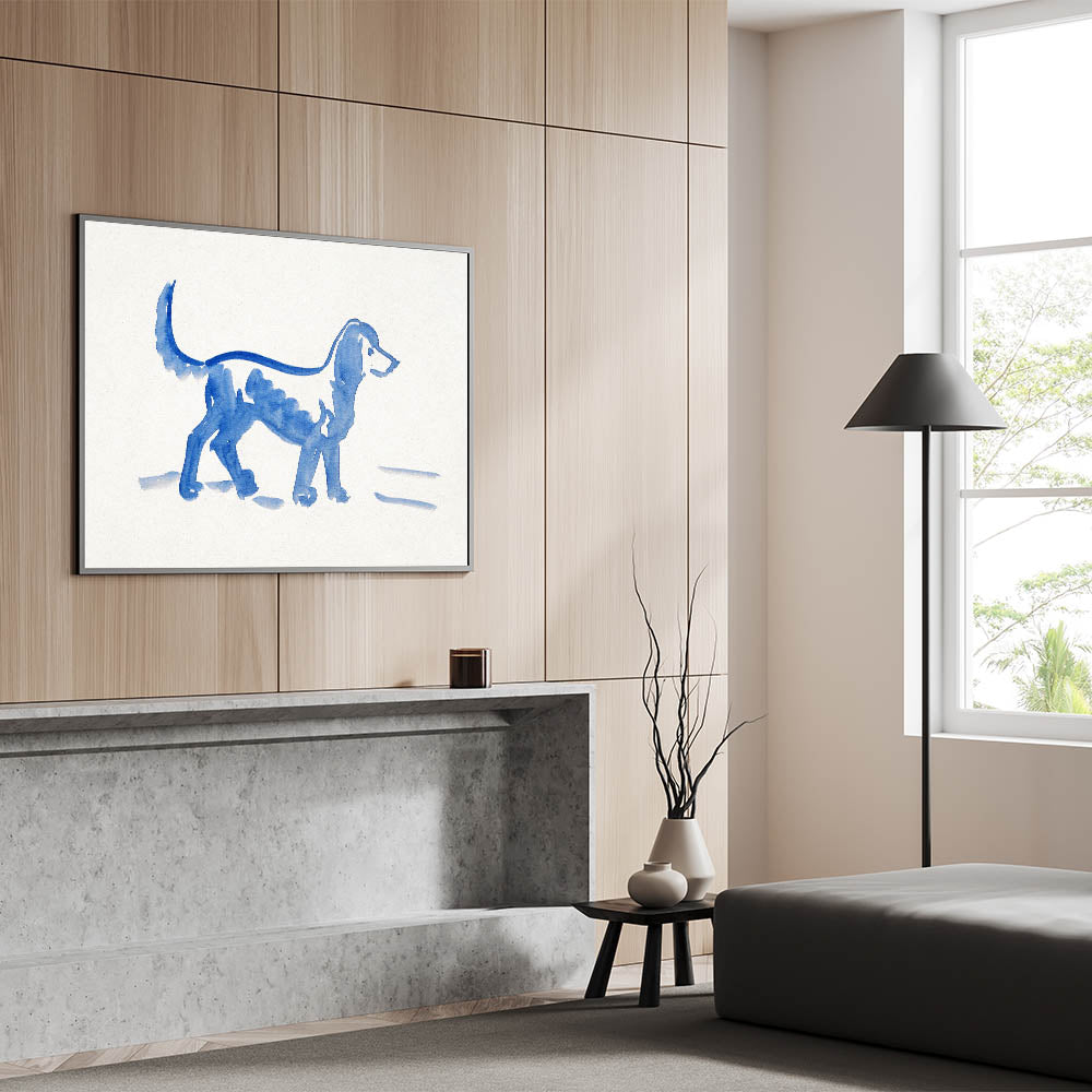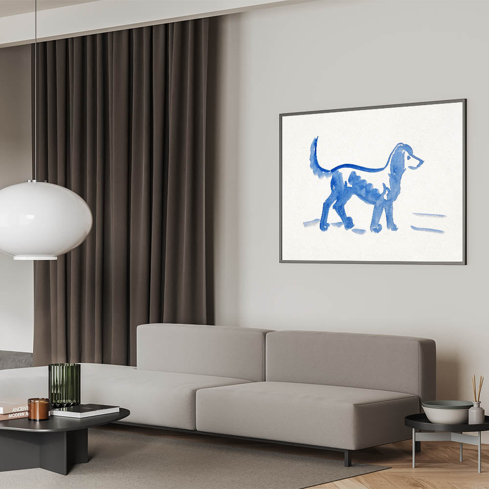 Introduce simplicity and elegance to your decor with this charming Expressionist Art piece, "Great Dane" by Arnold Peter Weisz-Kubínčan. This artwork features a graceful depiction of a Great Dane in a fluid, abstract style using soft blue watercolor strokes. The minimalist design captures the essence of the animal, making it a perfect blend of modern art and timeless sophistication.