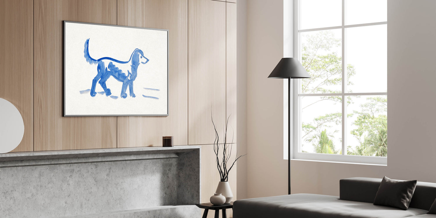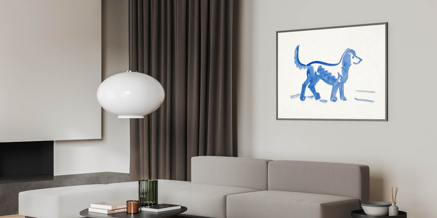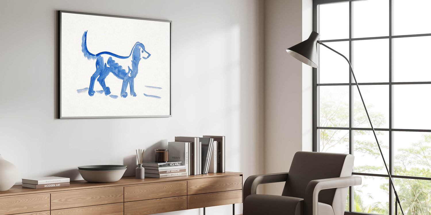 Introduce simplicity and elegance to your decor with this charming Expressionist Art piece, "Great Dane" by Arnold Peter Weisz-Kubínčan. This artwork features a graceful depiction of a Great Dane in a fluid, abstract style using soft blue watercolor strokes. The minimalist design captures the essence of the animal, making it a perfect blend of modern art and timeless sophistication.