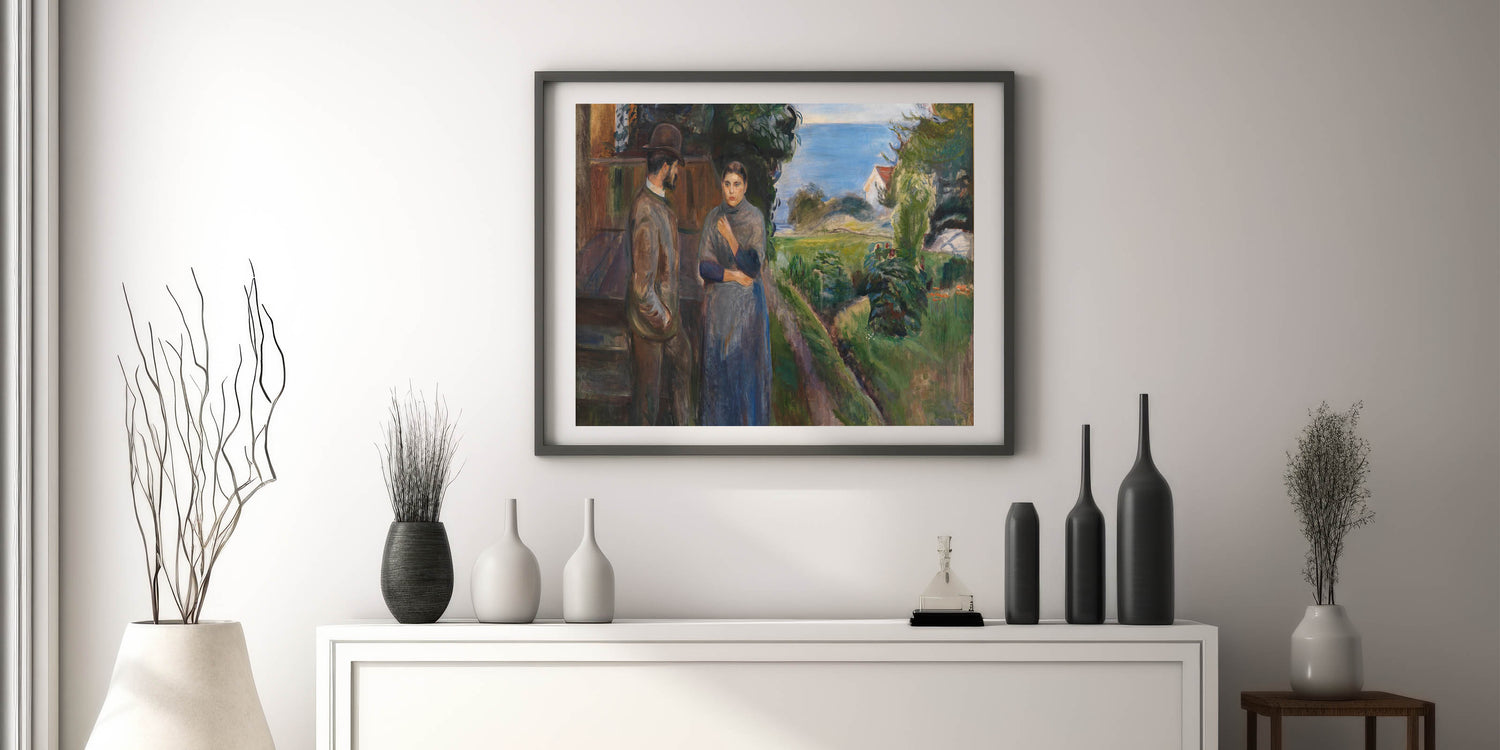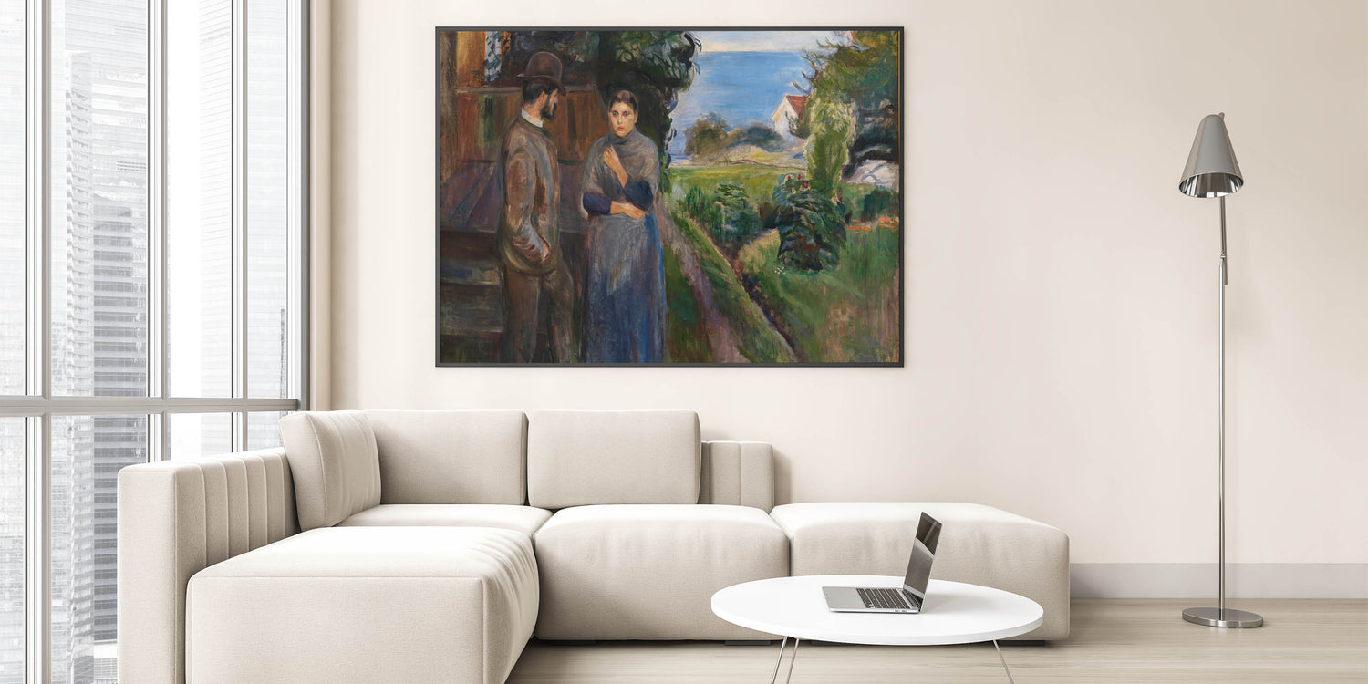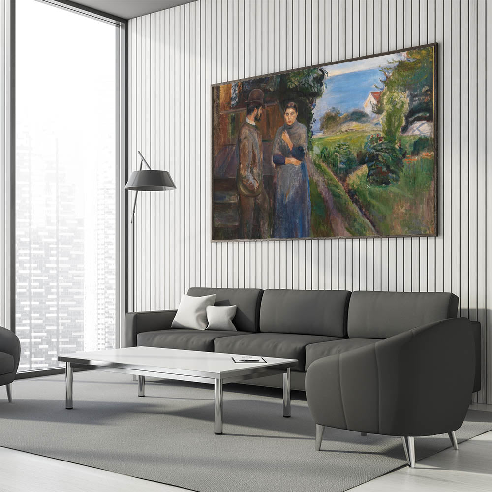 Enhance your home or workspace with this Expressionist canvas print, blending emotional depth with artistic brilliance. Munch’s Evening Passion is a testament to his mastery of capturing human relationships through art.