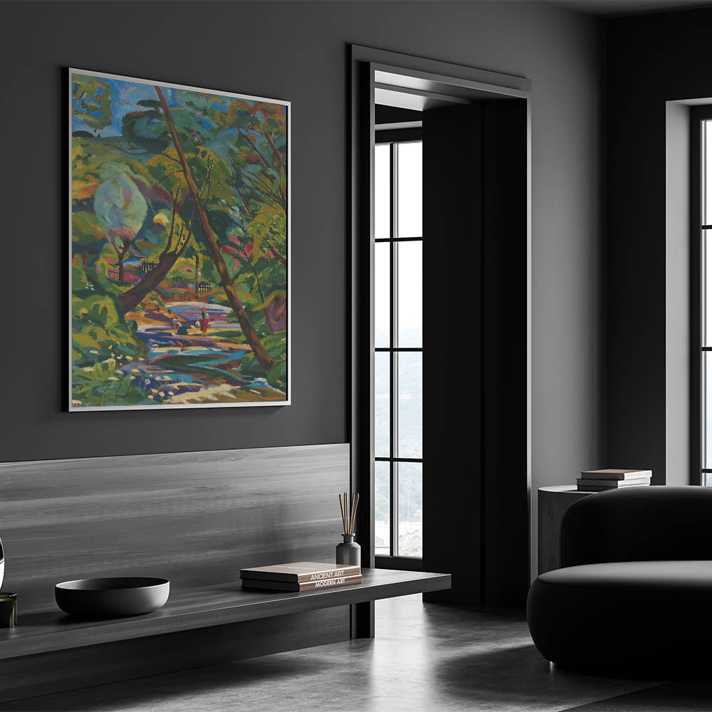 Brighten your space with the dynamic and colorful Expressionist Wall Art, "Kubínsky Stream" by Arnold Peter Weisz-Kubínčan. This masterpiece captures a lush landscape with bold strokes and vivid hues, embodying the emotive and energetic spirit of Expressionism. The interplay of green foliage, rushing water, and sunlight creates a mesmerizing scene full of life and movement.