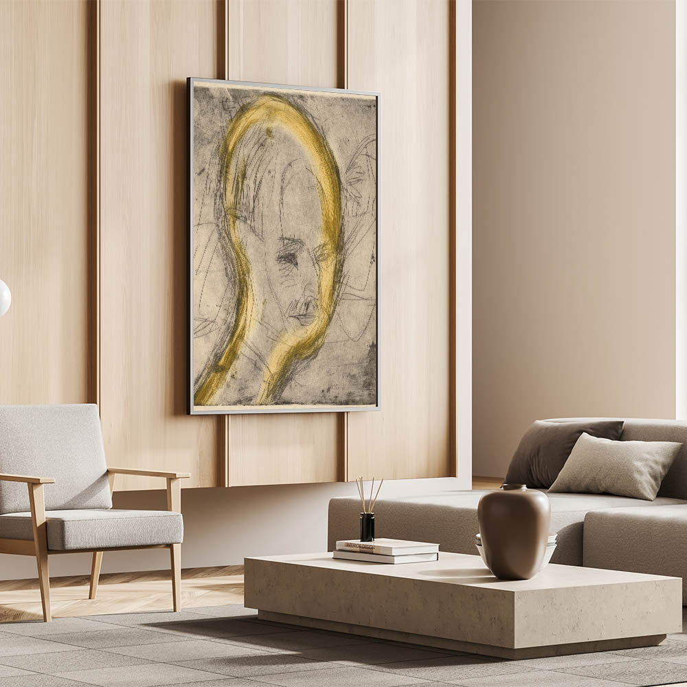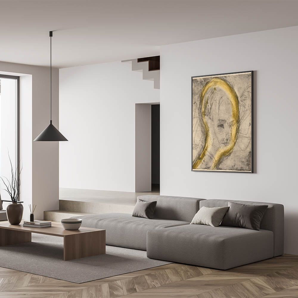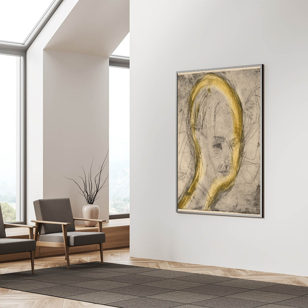 Immerse yourself in the raw emotion and dynamic energy of this Expressionist Art sketch. Featuring a delicate portrait enhanced with golden highlights, this piece epitomizes the depth and nuance of Abstract Expressionism. The minimalist strokes and textured details evoke a sense of introspection, making it a unique addition to any art collection.