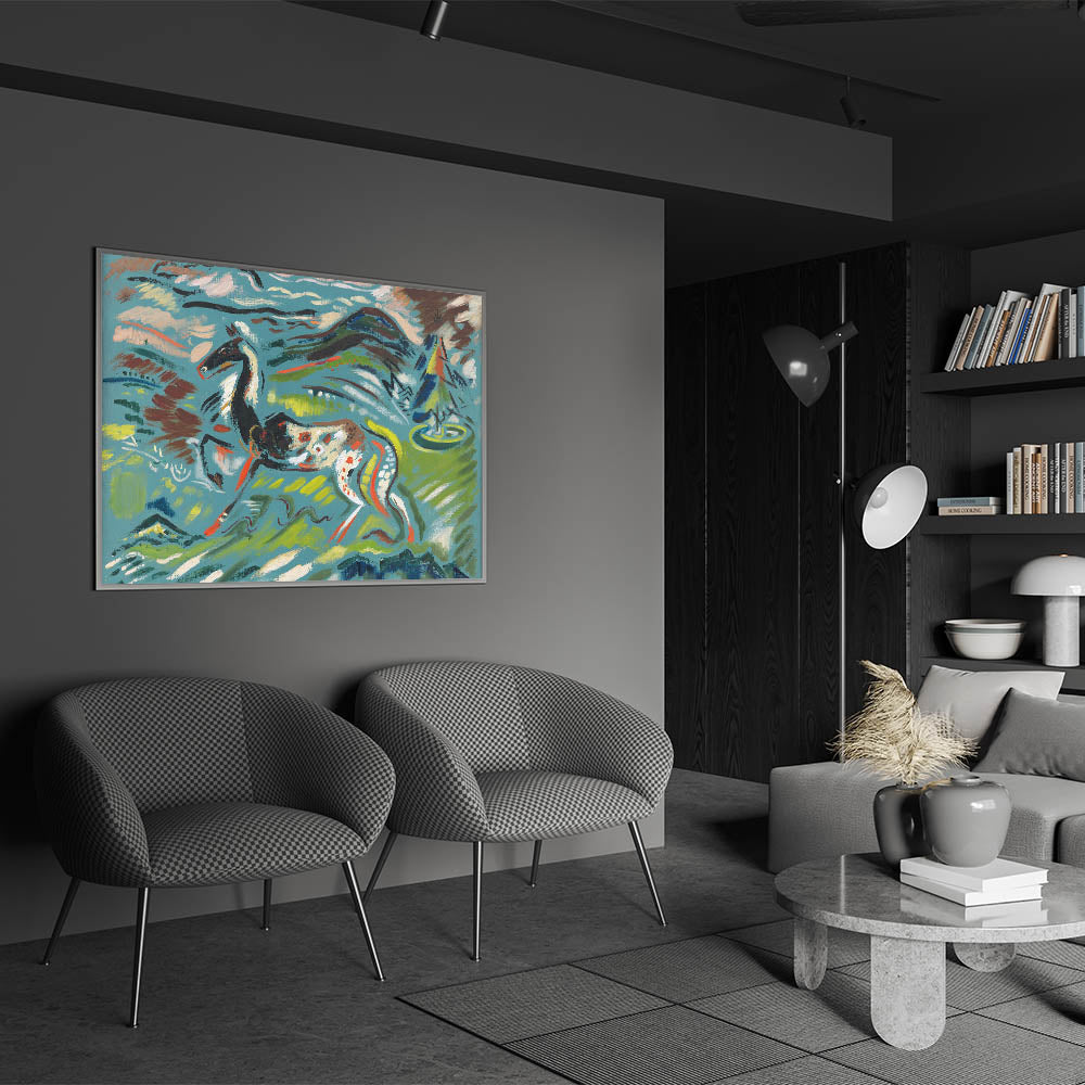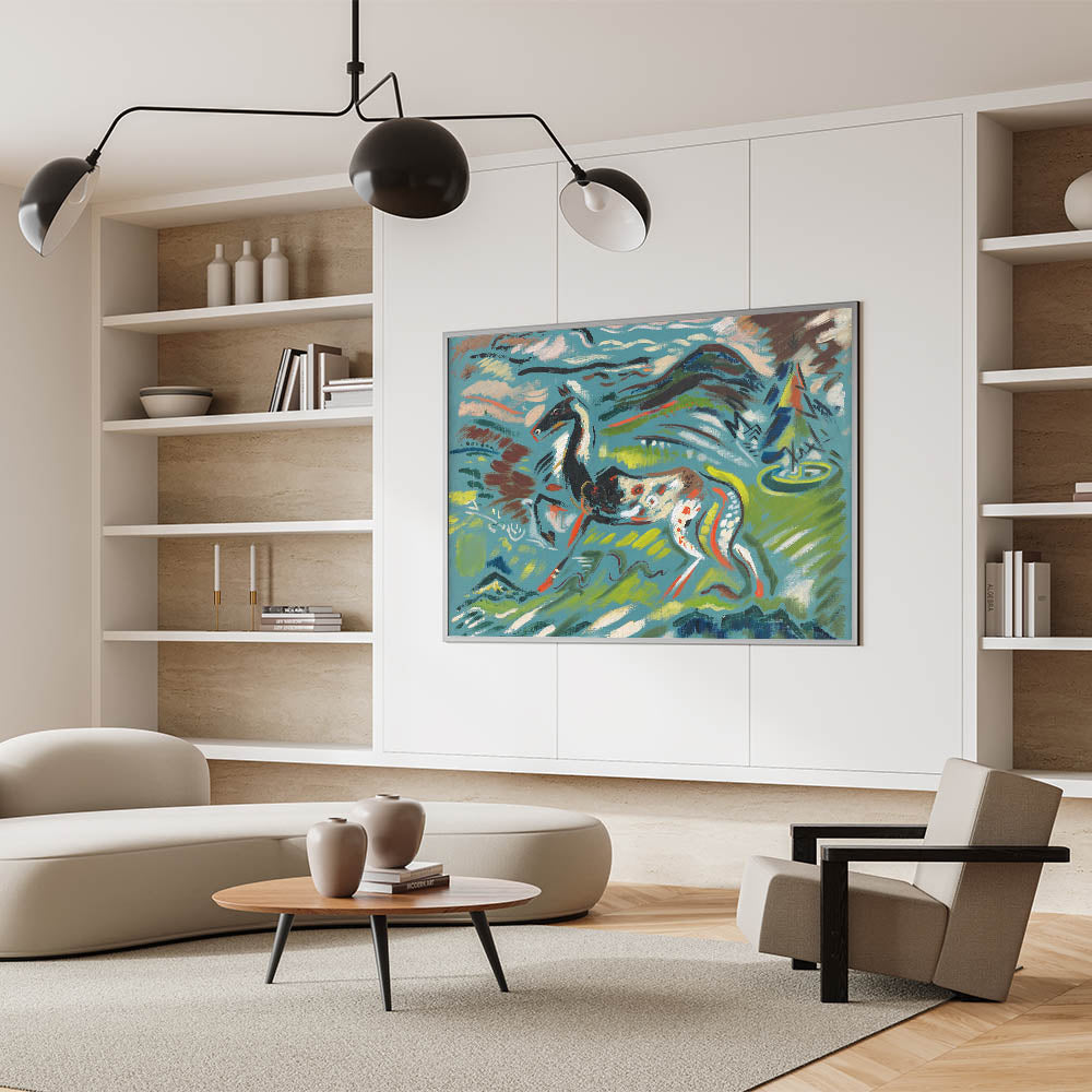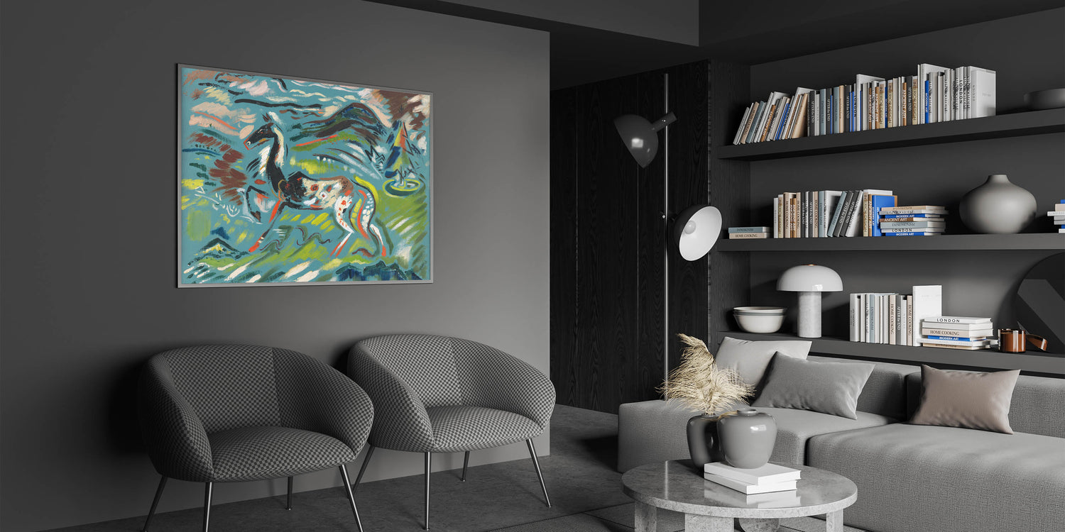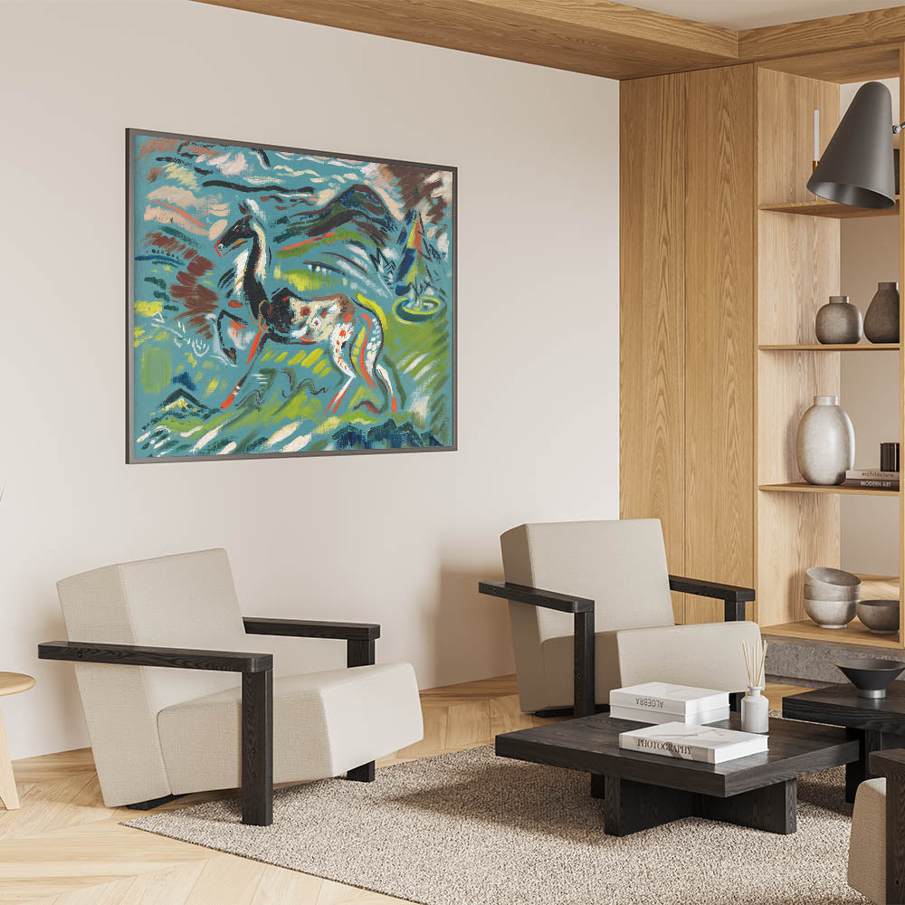 Bring the vibrant energy of nature into your space with this stunning Expressionist Art piece. Featuring an abstract horse set against a dynamic, colorful landscape, this artwork captures the freedom and movement of the Expressionist style. Bold brushstrokes and vivid hues of green, blue, and red create an eye-catching composition that evokes a sense of vitality and artistic creativity.