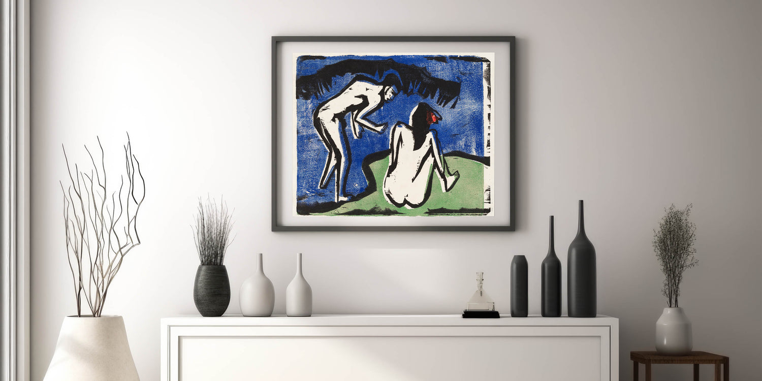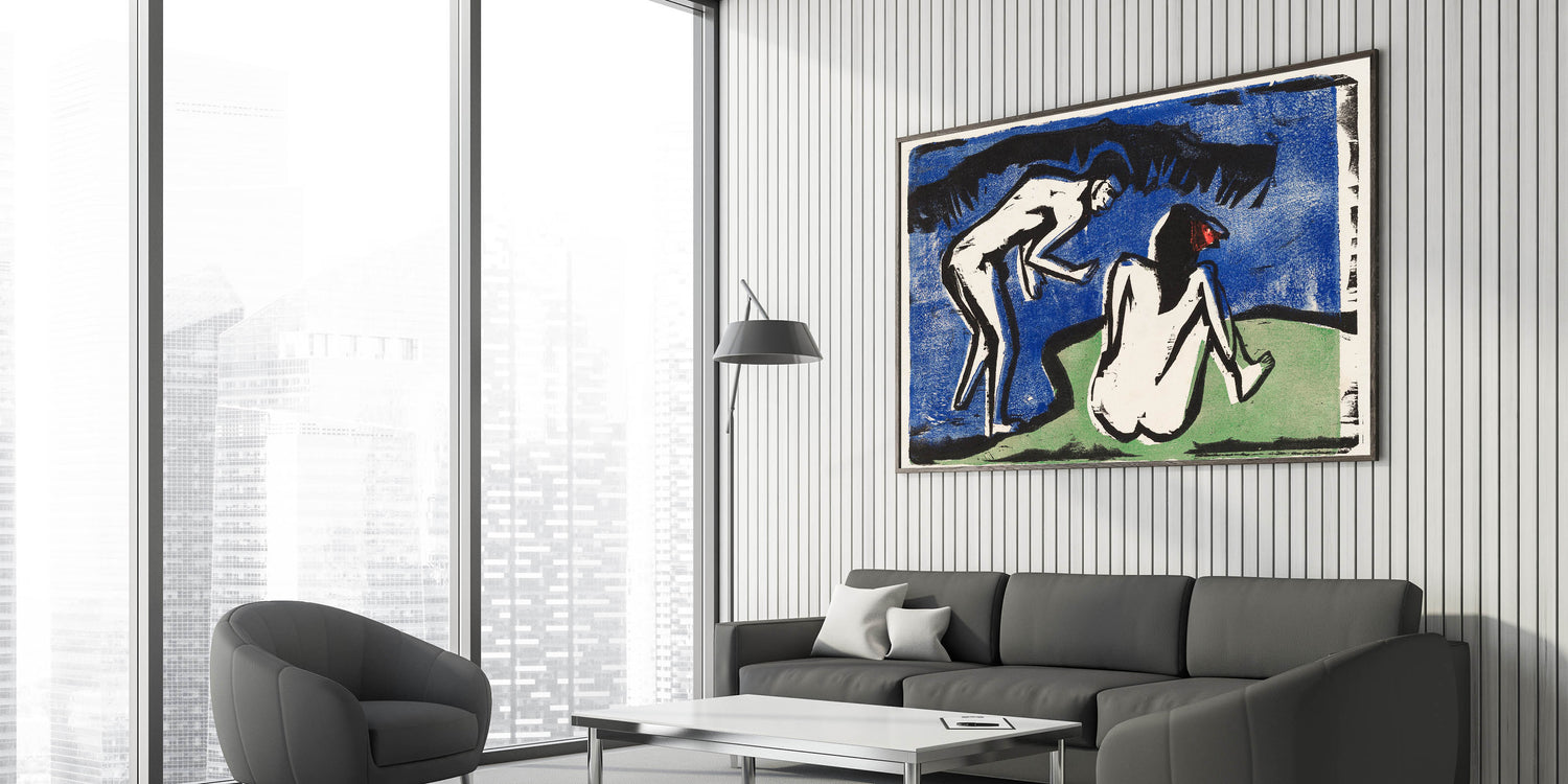 This decorative Expressionist wall art is perfect for those who appreciate art that captures the beauty of human connection and nature. Whether displayed in a living room, study, or bedroom, this piece adds elegance and a striking focal point to your space. Add this iconic Kirchner masterpiece to your collection today!