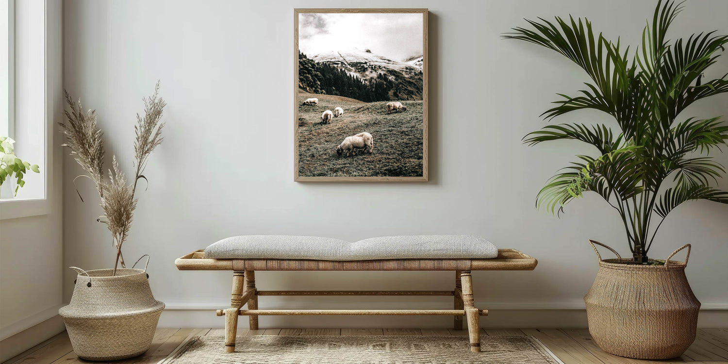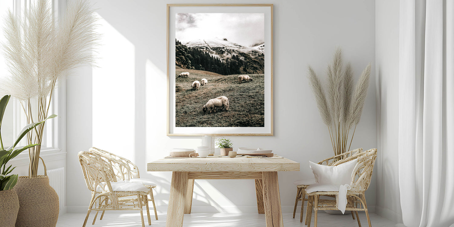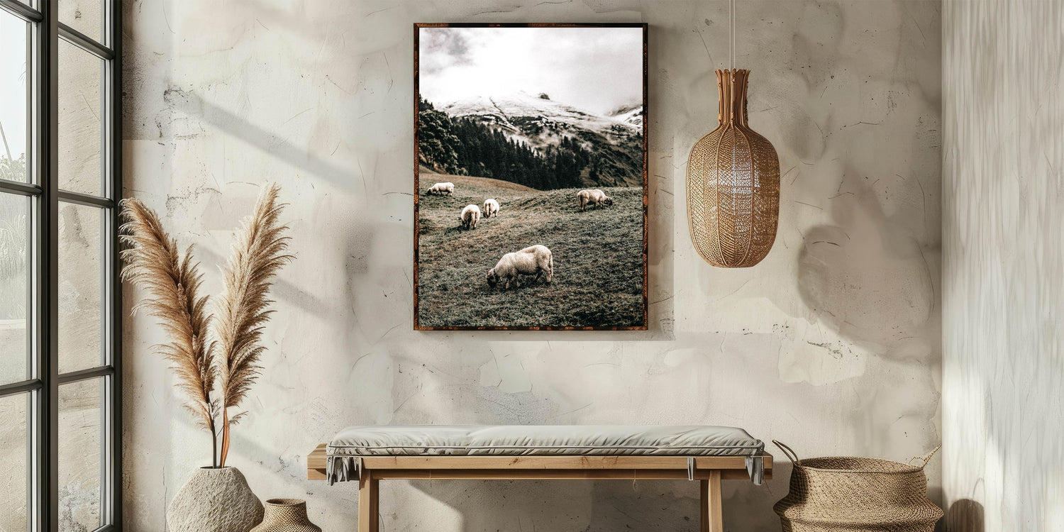 Farmhouse Sheep Mountain Art – Rustic Country Style Wall Decor