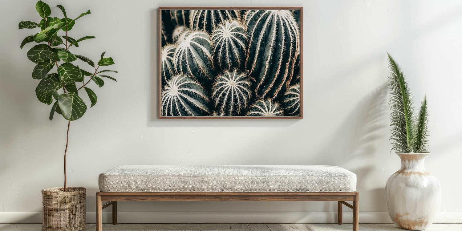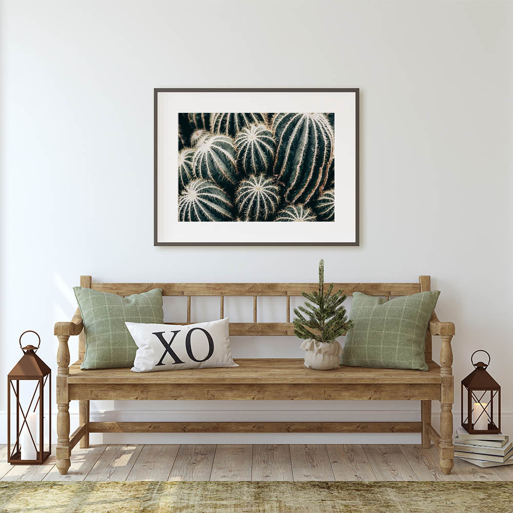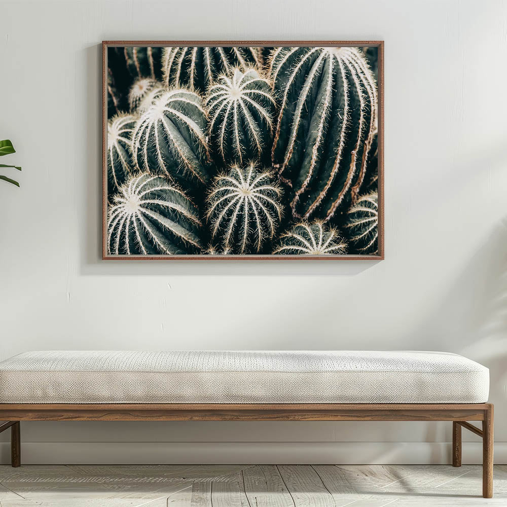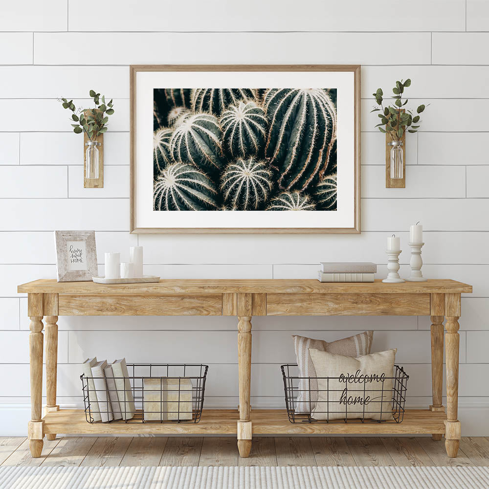 Bring a touch of the desert into your home with this farmhouse wall art featuring a stunning close-up of cacti. The intricate details of the cactus spines and the rich green tones create a natural texture that adds depth and character to any space. This artwork offers a unique rustic charm, perfect for those who appreciate the beauty of nature and the minimalist elegance of desert-inspired decor.