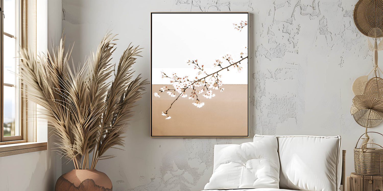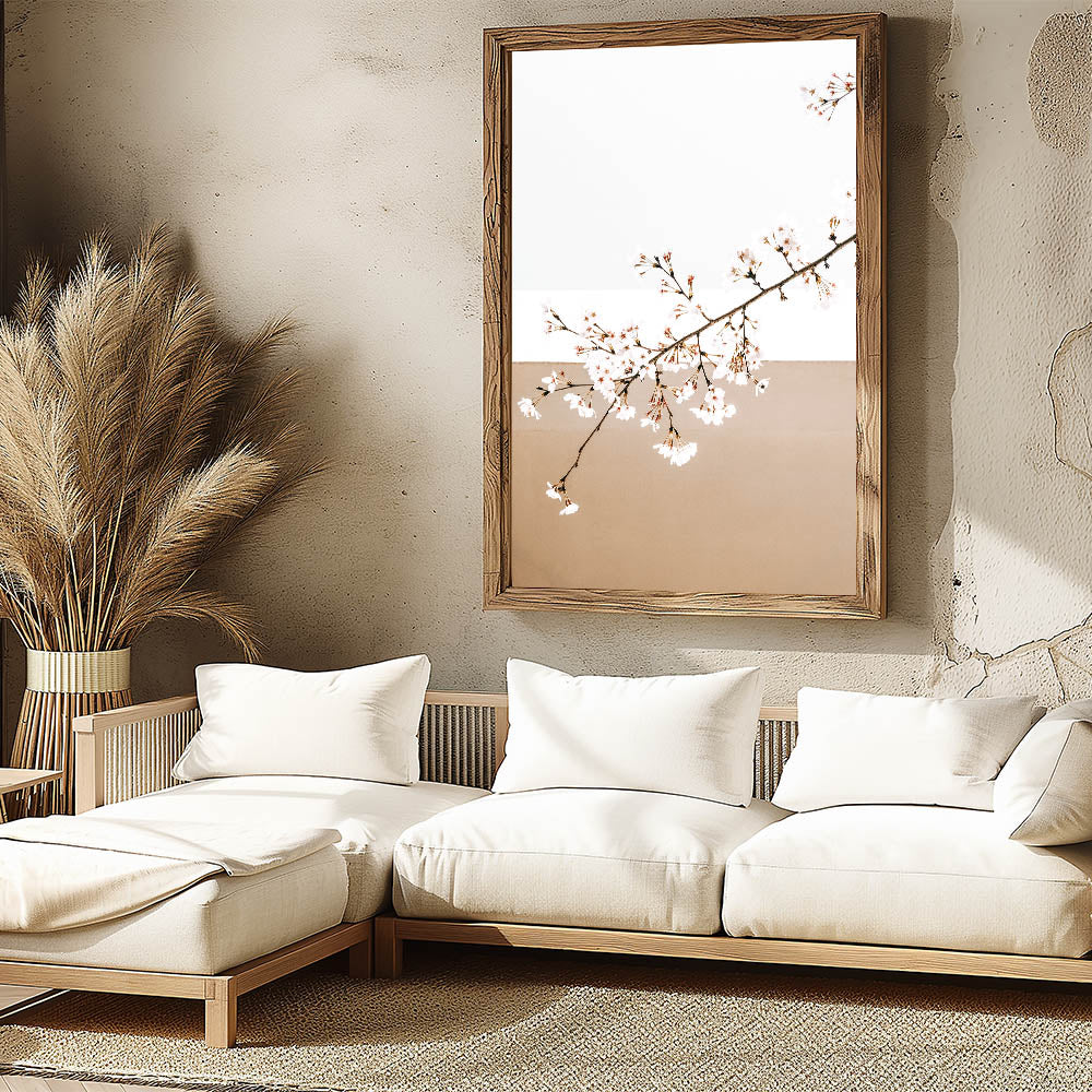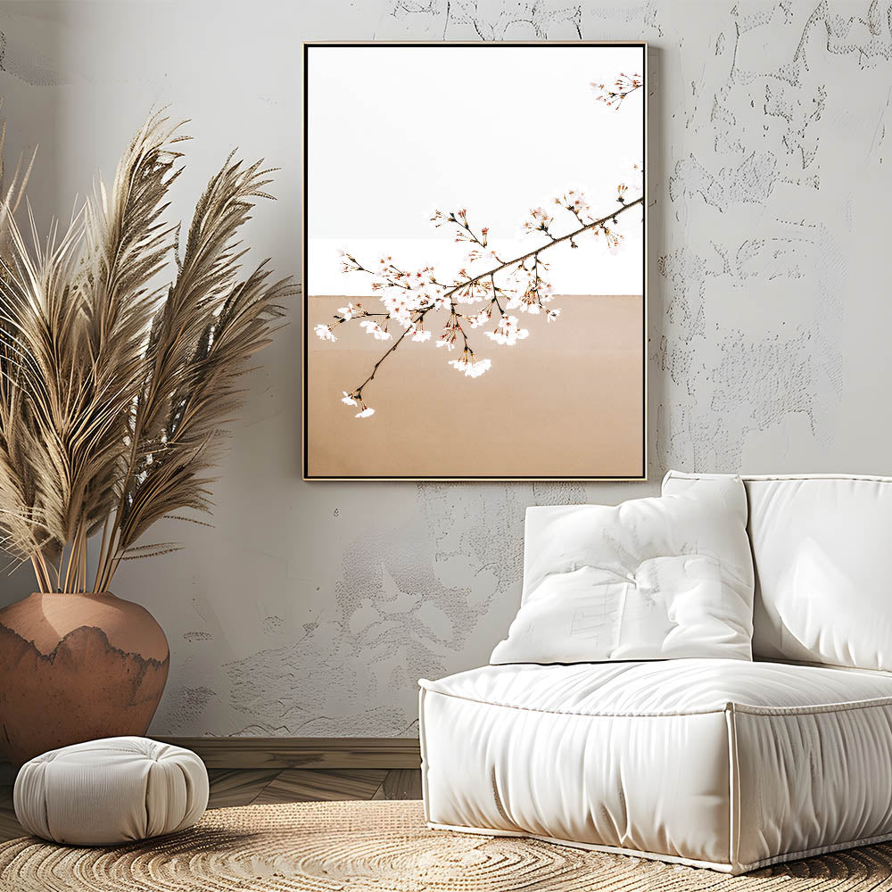 Elevate your space with the timeless beauty of nature through this minimalist farmhouse wall art featuring a delicate branch of white blossoms. The soft hues and simple design create a peaceful, calming atmosphere, perfect for adding a touch of rustic charm to any room. The natural elegance of the blossoms, set against a neutral backdrop, brings a sense of serenity and grace to your decor.