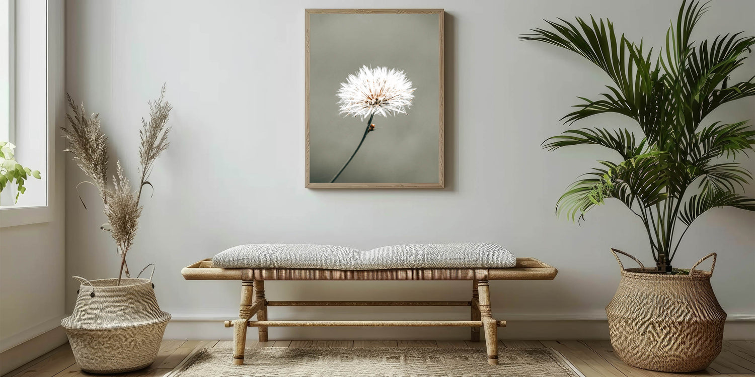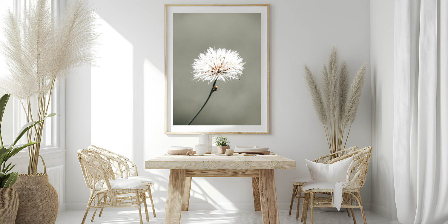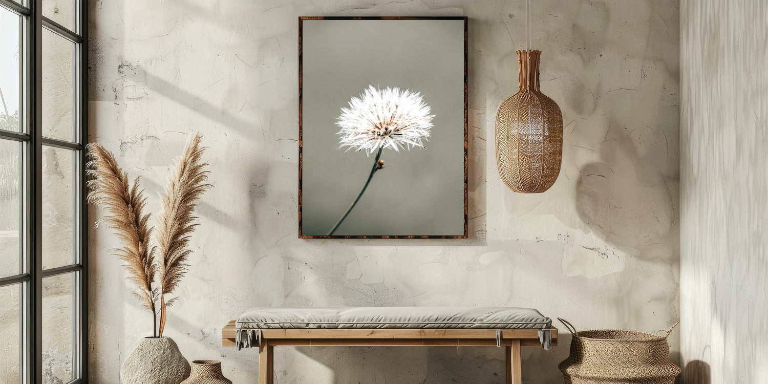 • Features a delicate dandelion in soft focus, adding an elegant, minimalist touch to your decor.