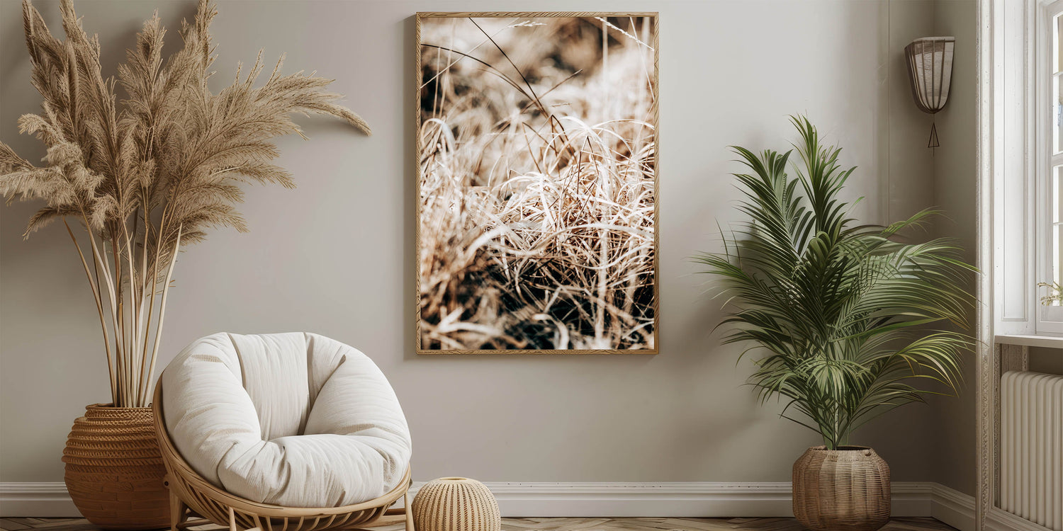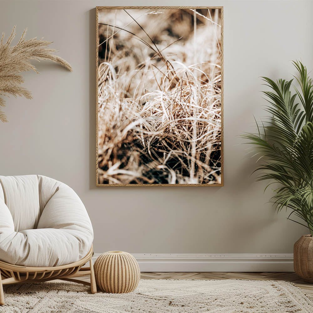 Farmhouse Wall Art Dry Grass Close-Up | Rustic Nature-Inspired Decor