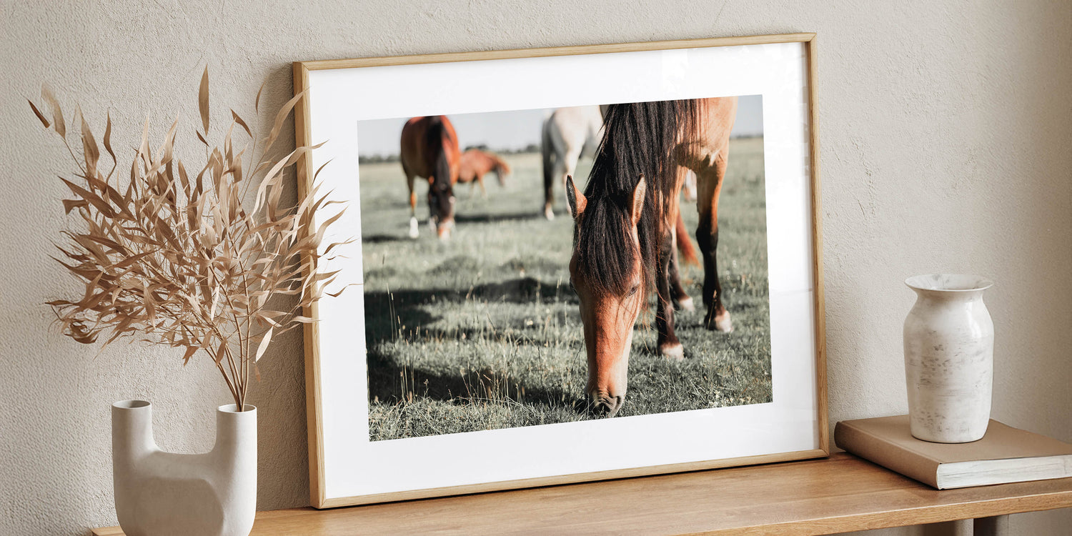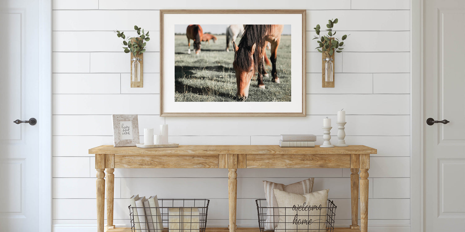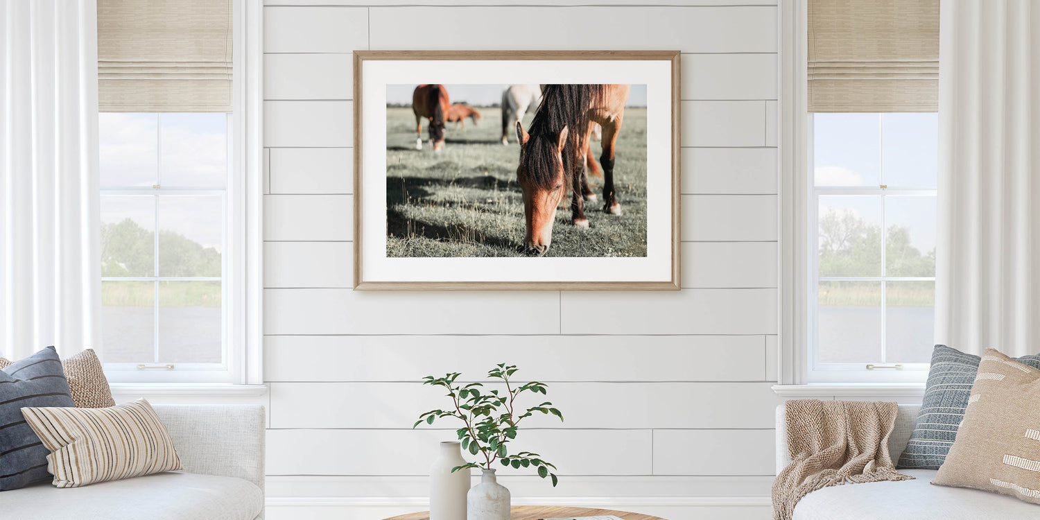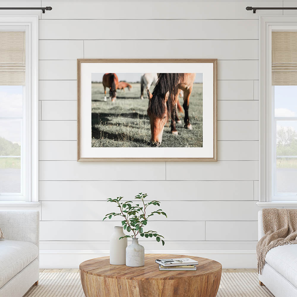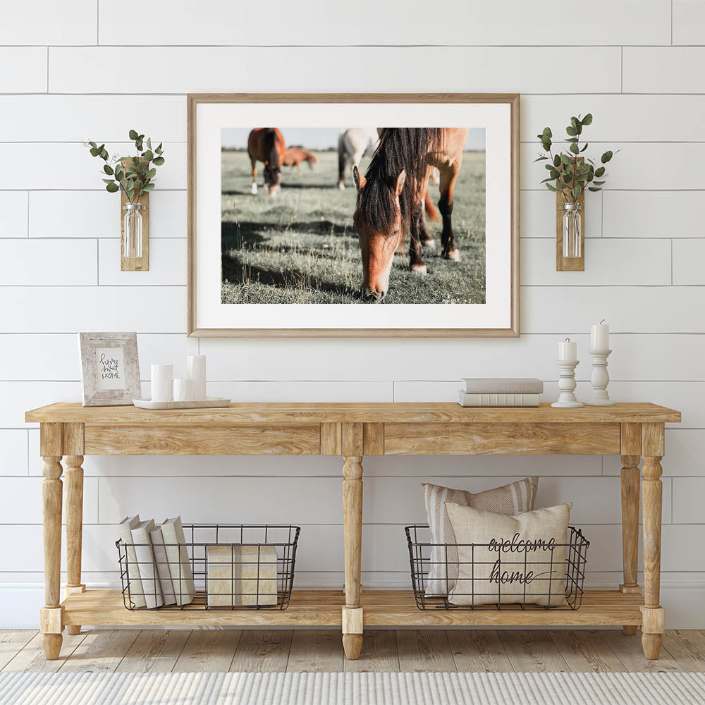 Farmhouse Wall Art: Horses Grazing in Field - Rustic Country Decor