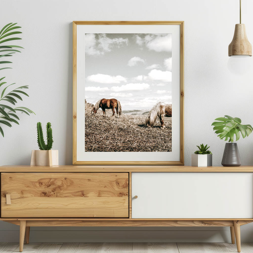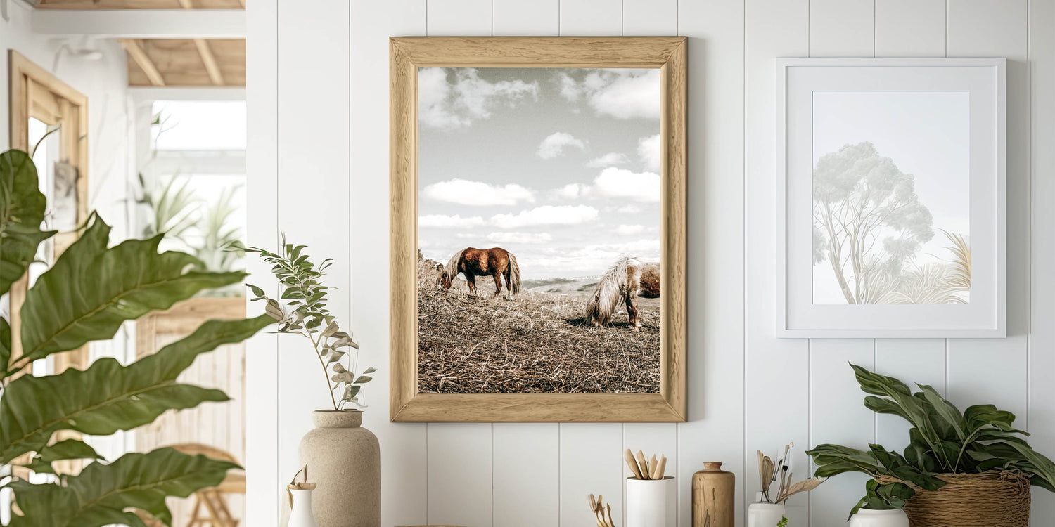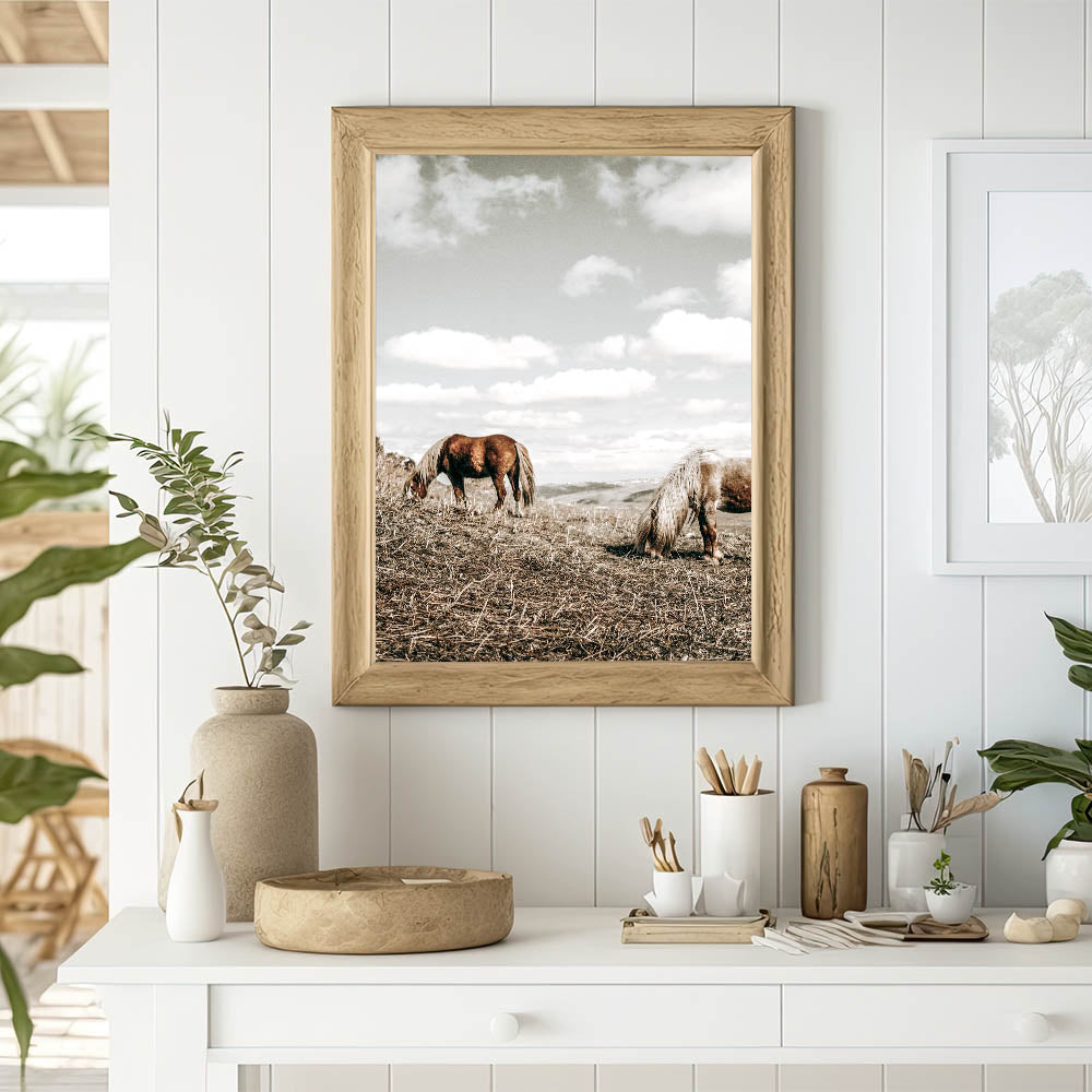 - Rustic charm: The peaceful horses and open meadow evoke the simplicity and serenity of country life, perfect for adding a calming touch to your decor.