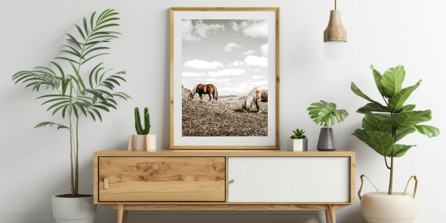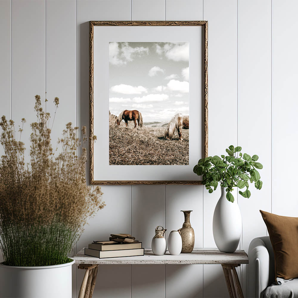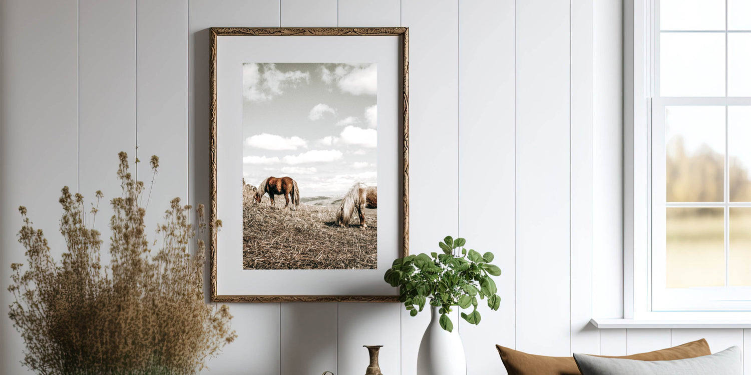 - Rustic charm: The peaceful horses and open meadow evoke the simplicity and serenity of country life, perfect for adding a calming touch to your decor.