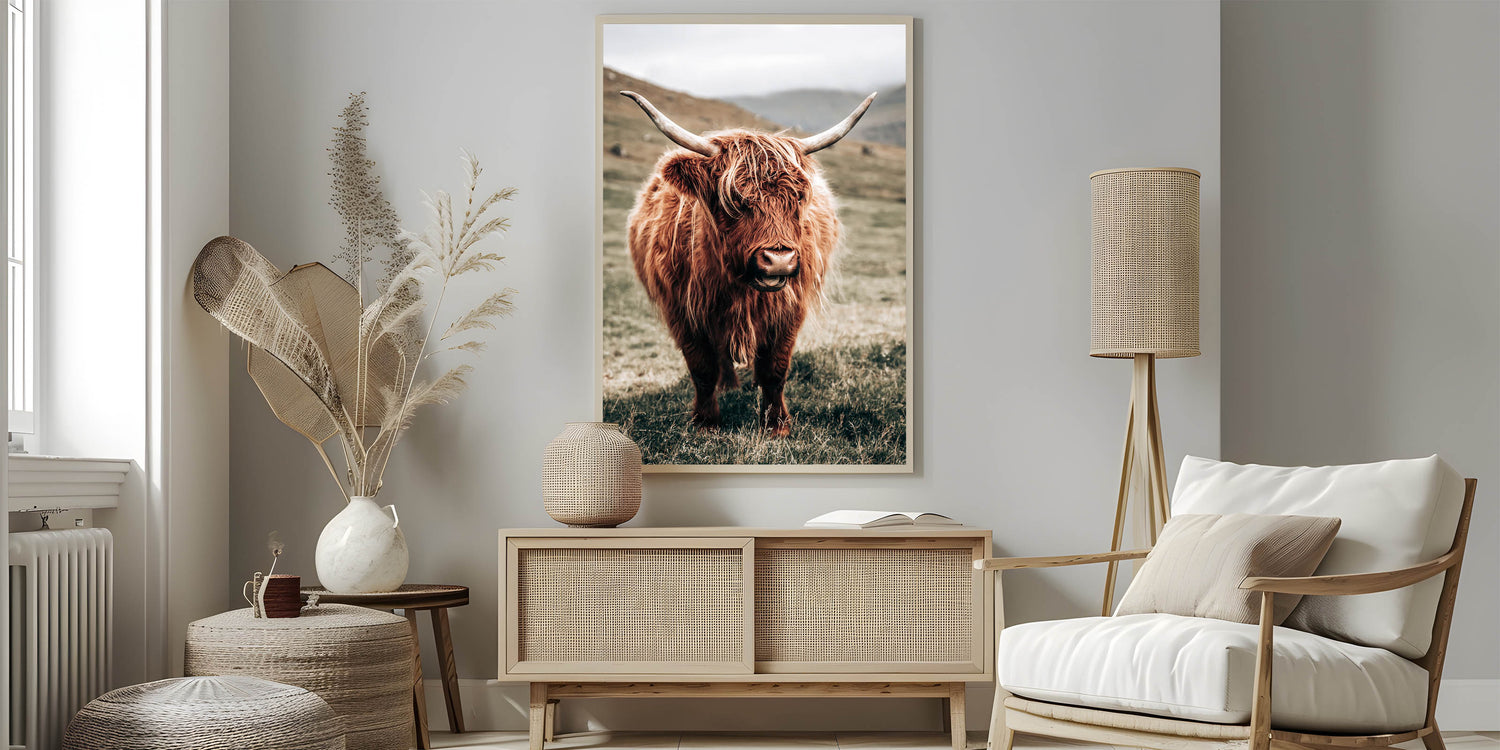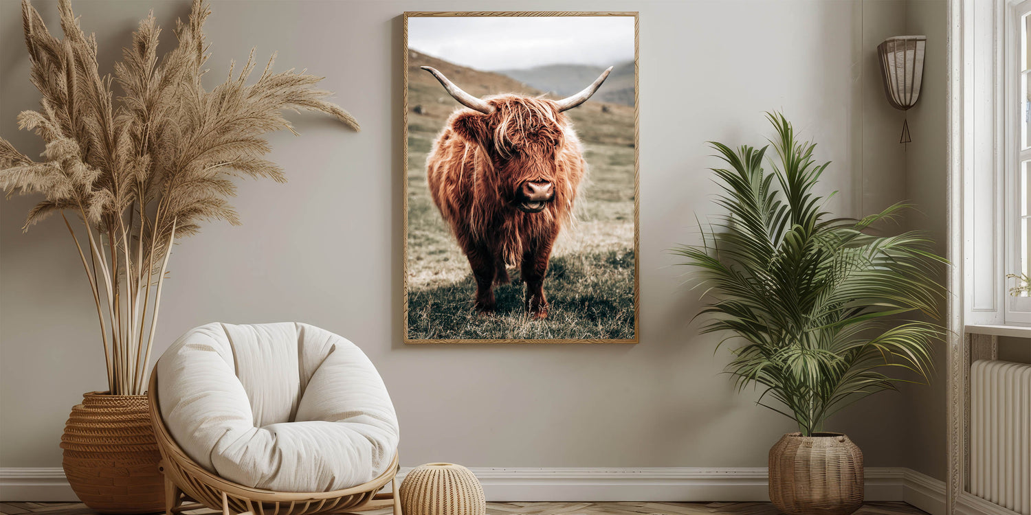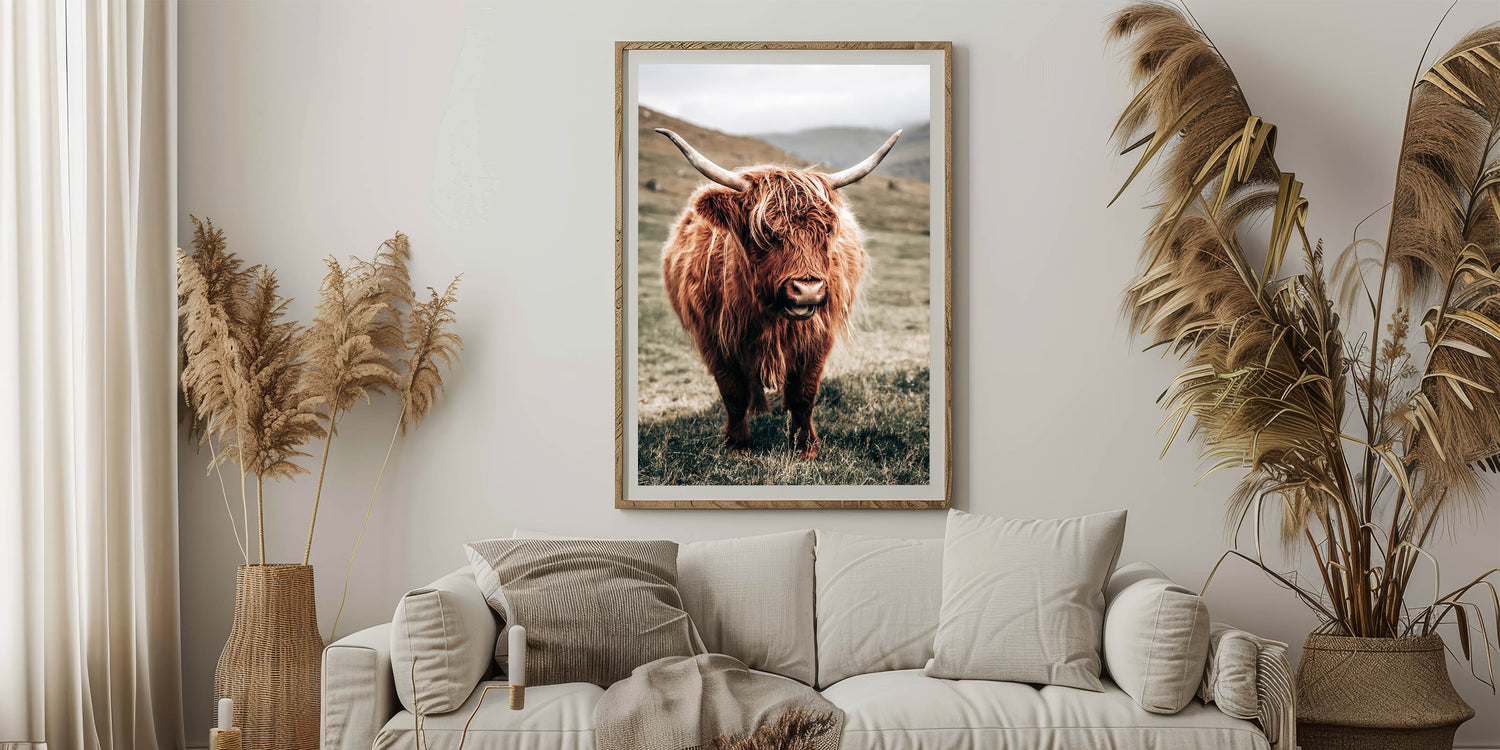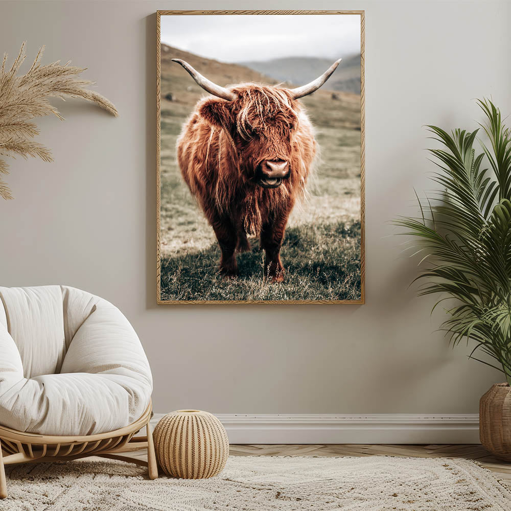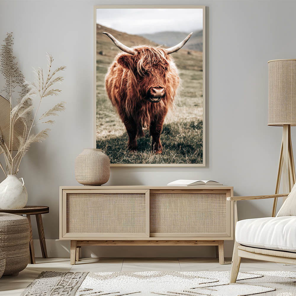Whether displayed in a living room, bedroom, or hallway, this farmhouse style wall decor celebrates the rustic beauty of nature, offering a unique and timeless look for your home. Make this Highland cow print the centerpiece of your farmhouse collection.