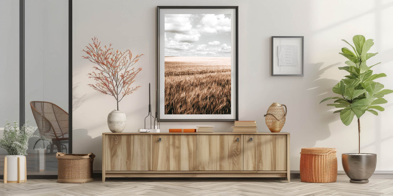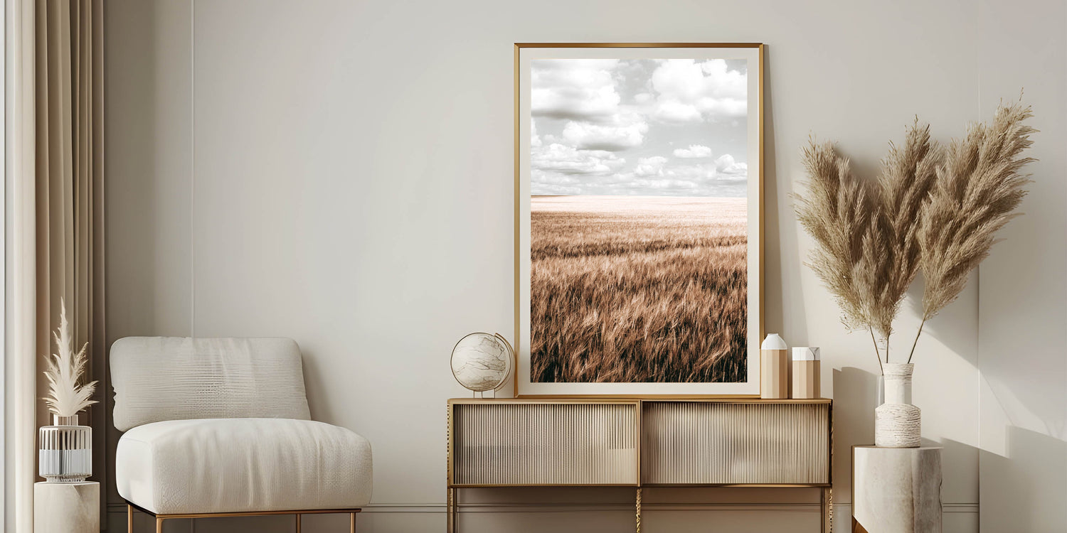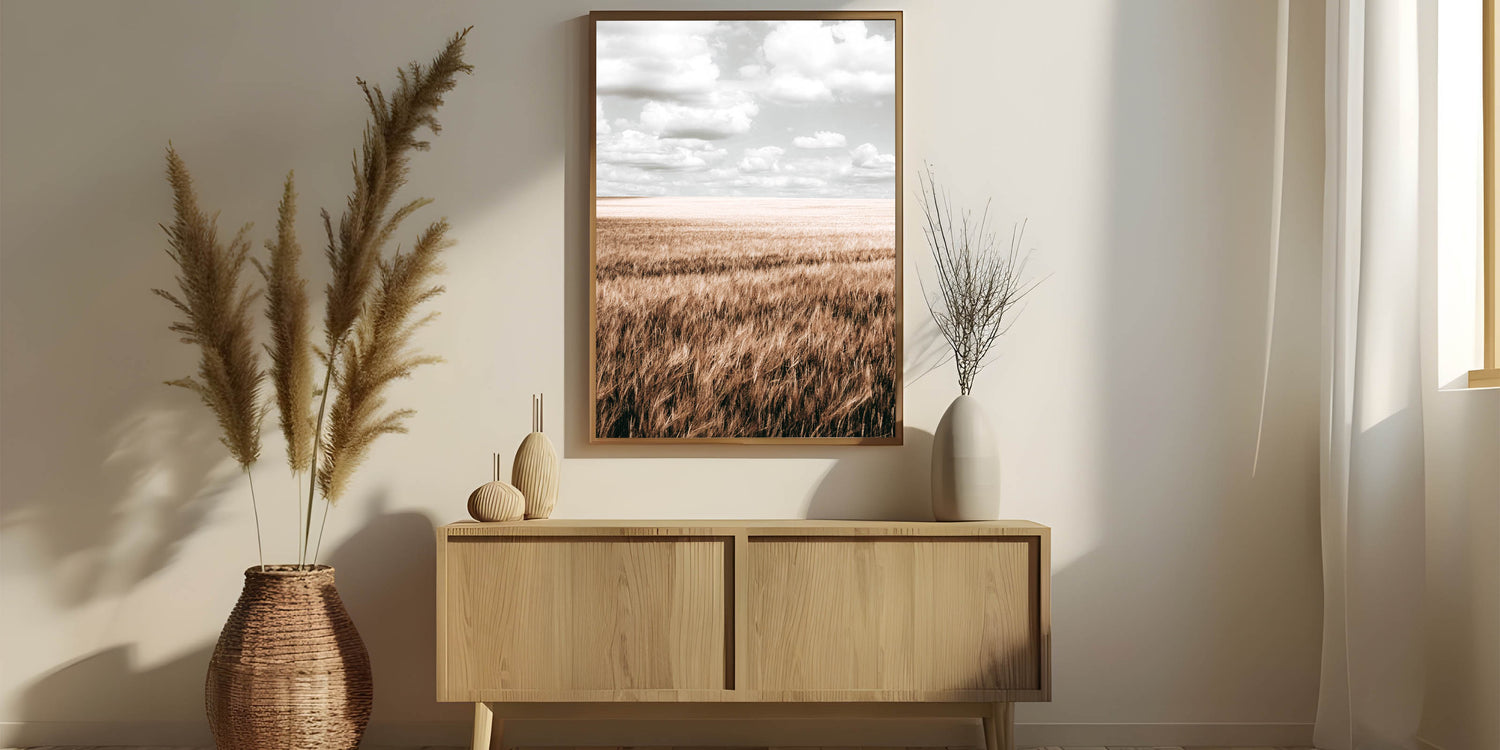 Farmhouse Wall Art of Wheat Field and Sky - Rustic Country Style Decor