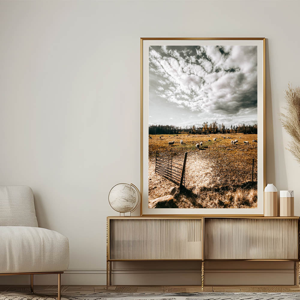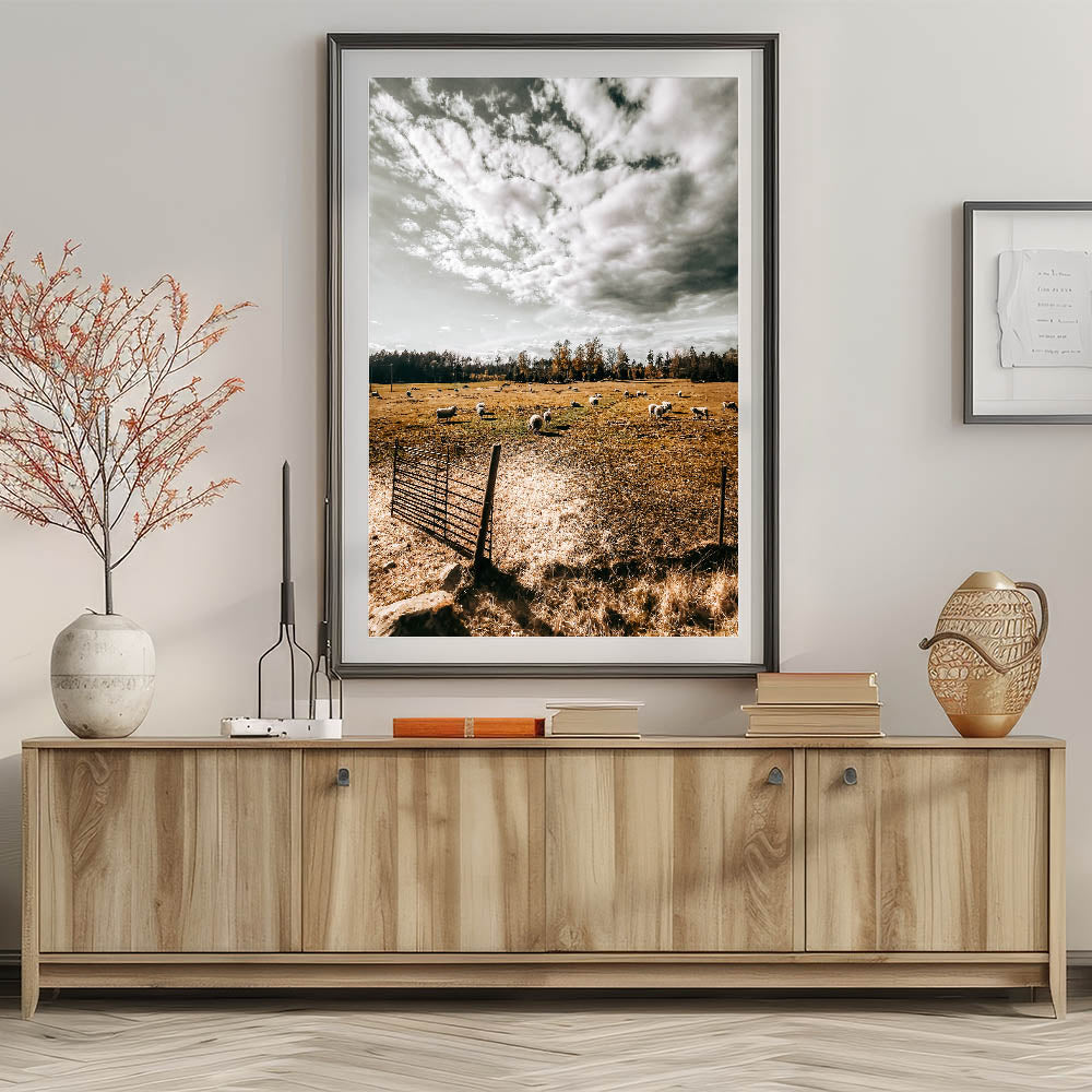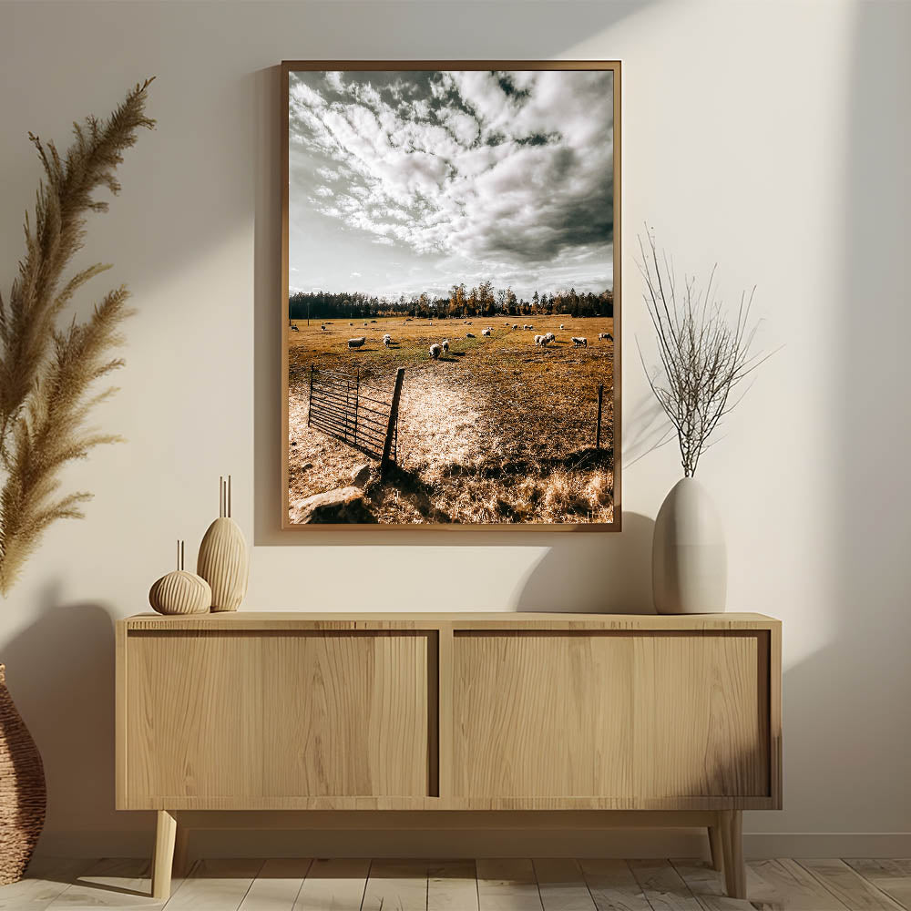 Farmhouse Wall Art - Pastoral Sheep in Field with Rustic Country Charm
