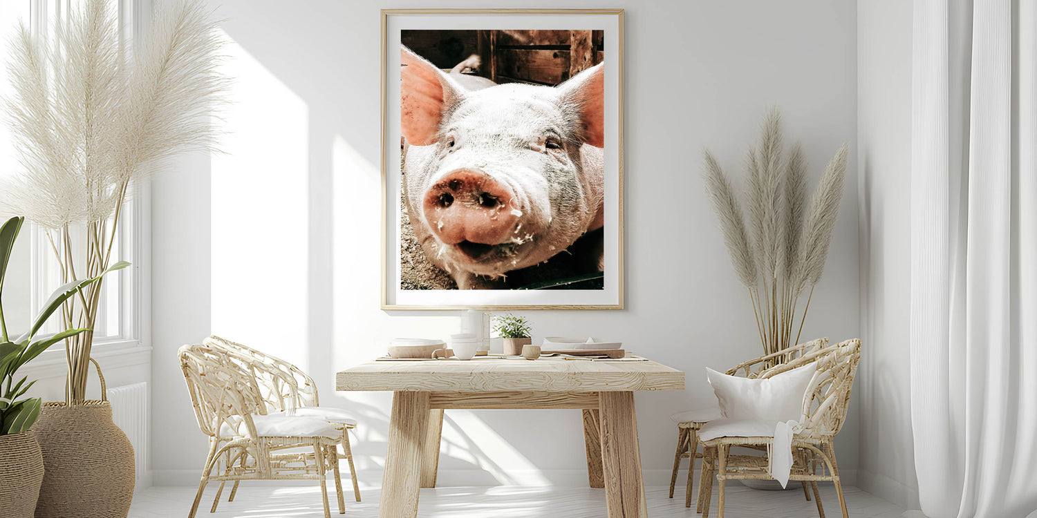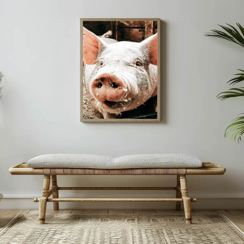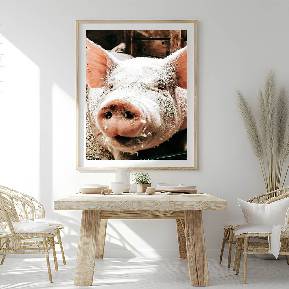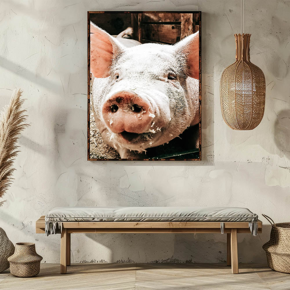 Farmhouse Wall Art - Playful Pig Close-Up with Rustic Farmhouse Charm