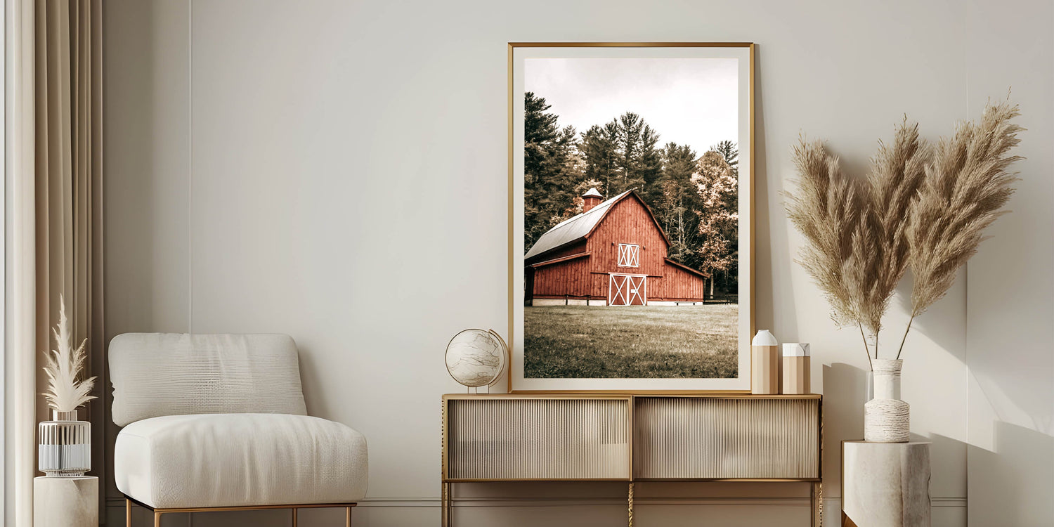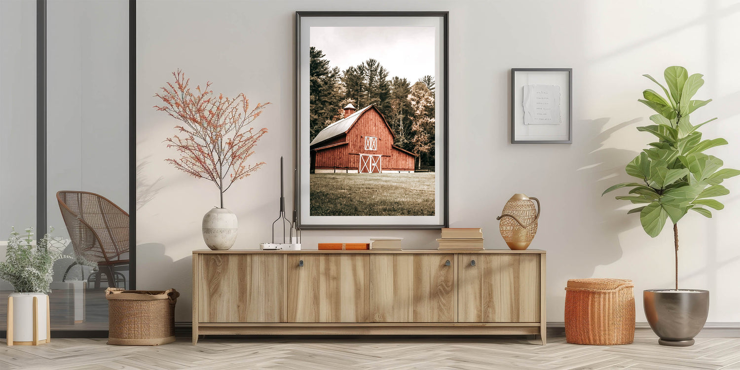 Farmhouse Wall Art: Red Barn in the Woods, Rustic Country Style Decor