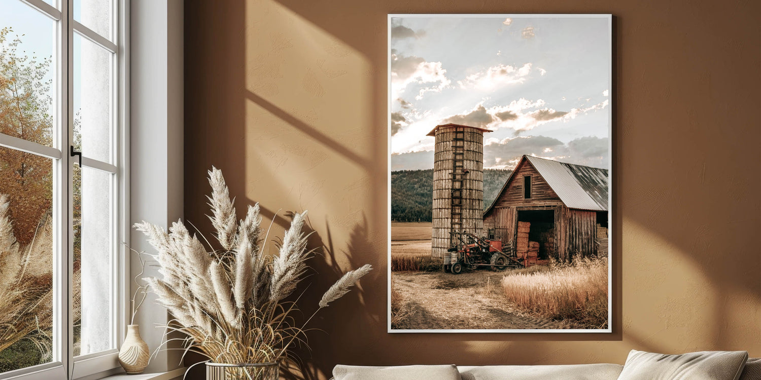 Farmhouse Wall Art – Rustic Barn and Silo Scene for Country Style Decor
