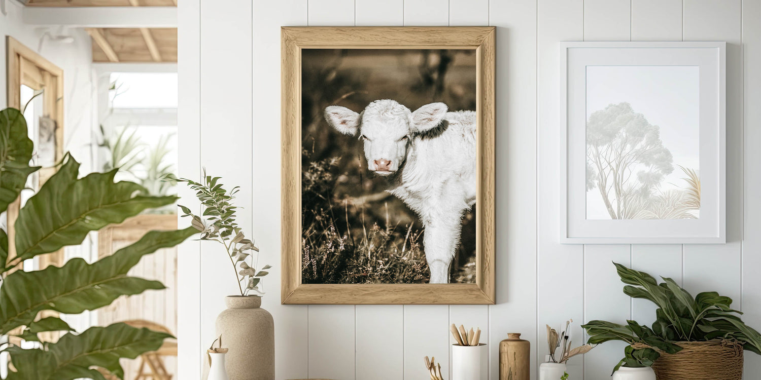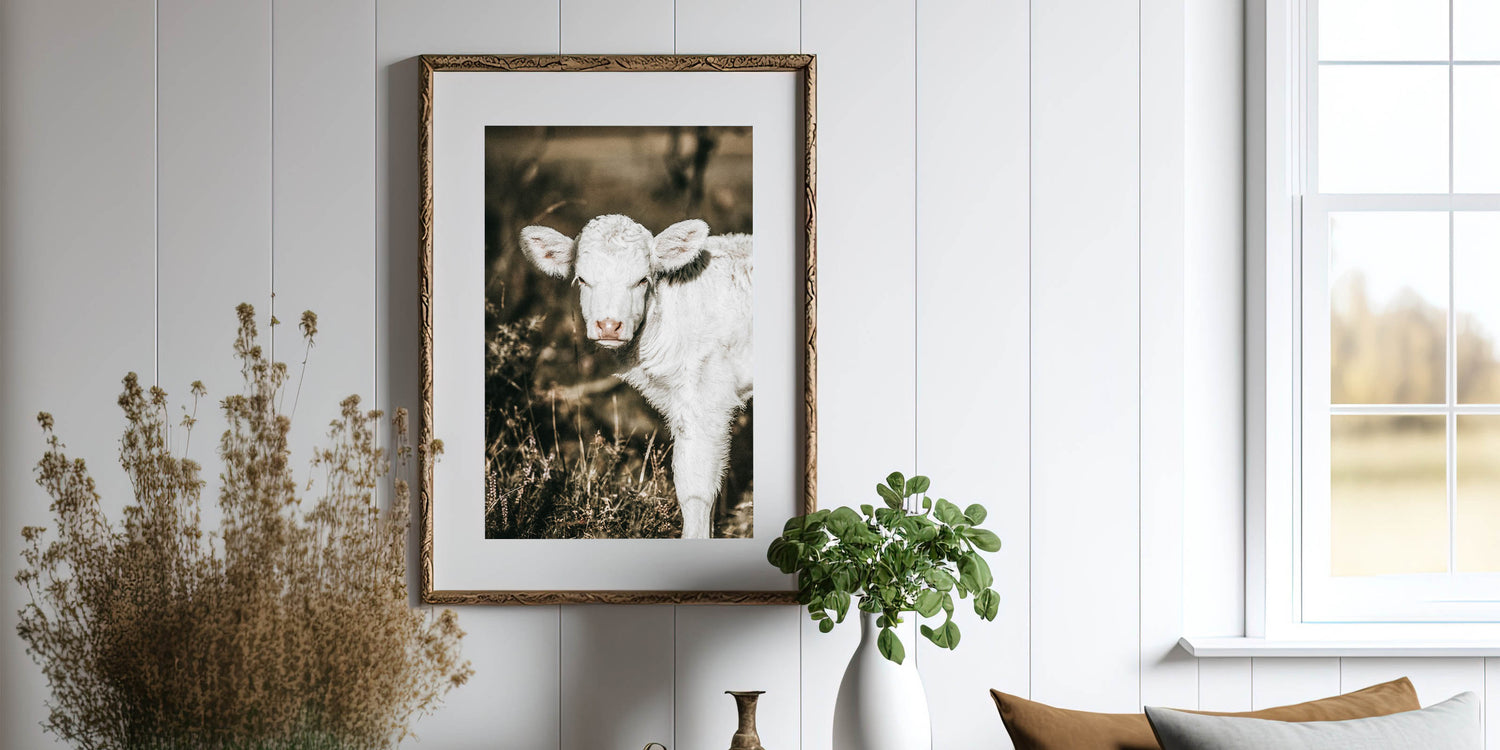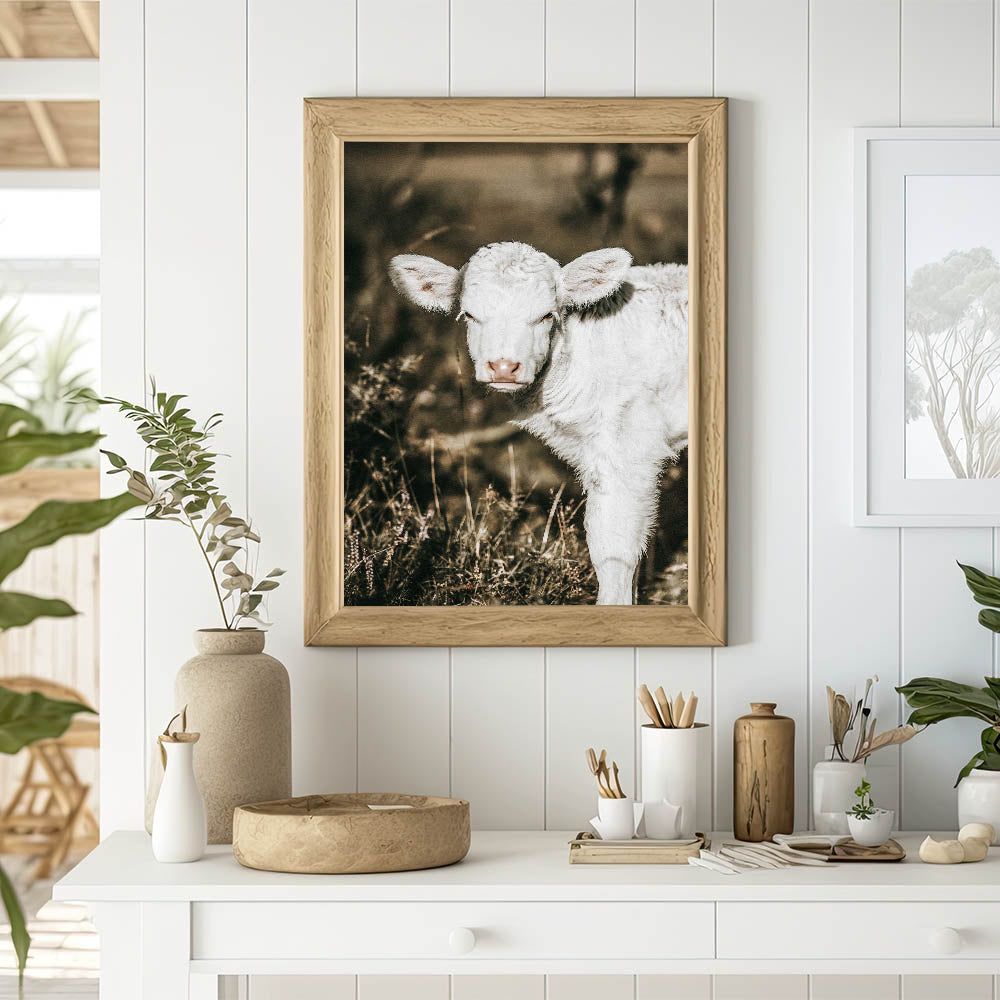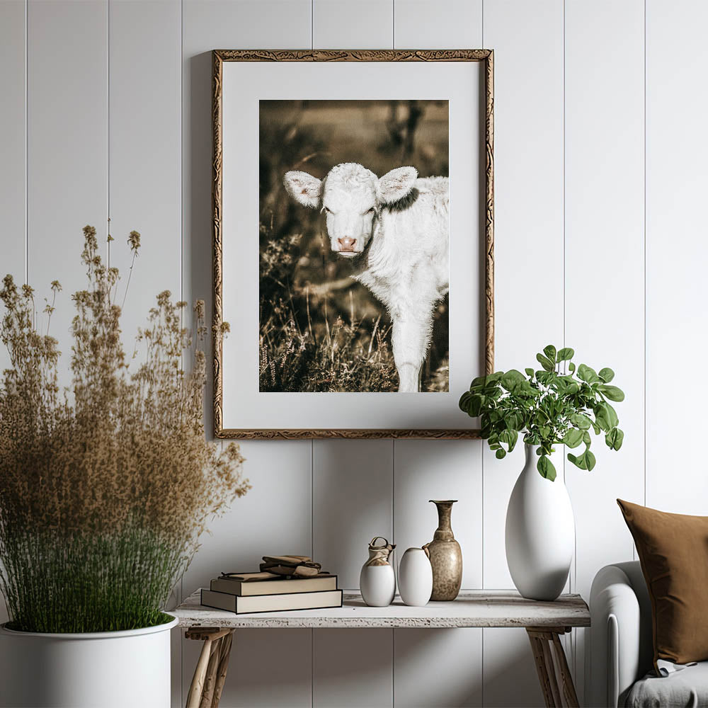 Farmhouse Wall Art: Rustic Calf Portrait in Country Meadow Décor