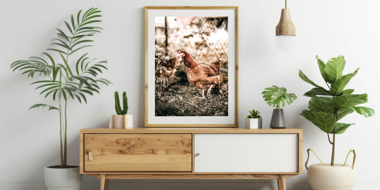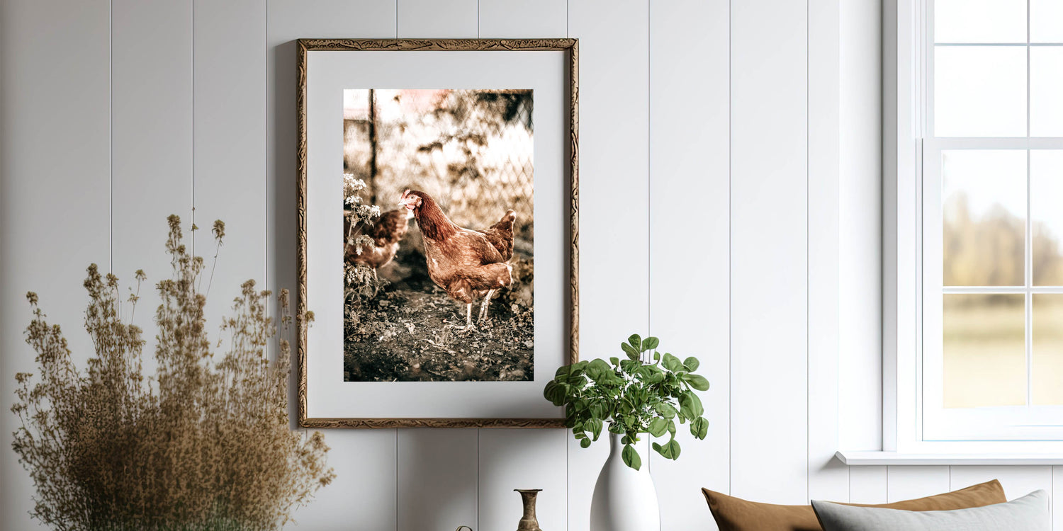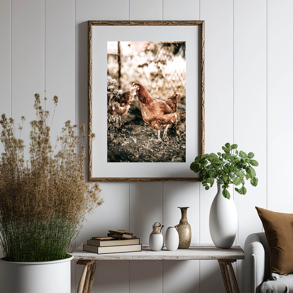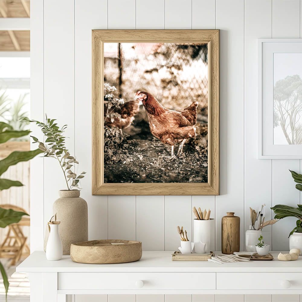 Bring the charm of the countryside into your home with this Farmhouse Wall Art, featuring a rustic scene of a chicken in a farmyard setting. This artwork perfectly embodies the country living style, making it a beautiful addition to any farmhouse or rustic-inspired space. The natural, earthy tones and the simplicity of the scene evoke a sense of warmth and connection to nature, making it ideal for creating a cozy and welcoming atmosphere.
