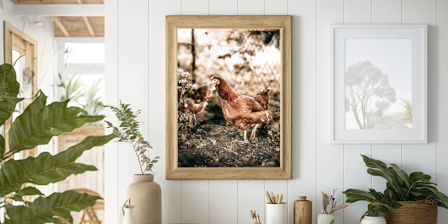 Farmhouse Wall Art – Rustic Chicken Scene for Country Style Decor