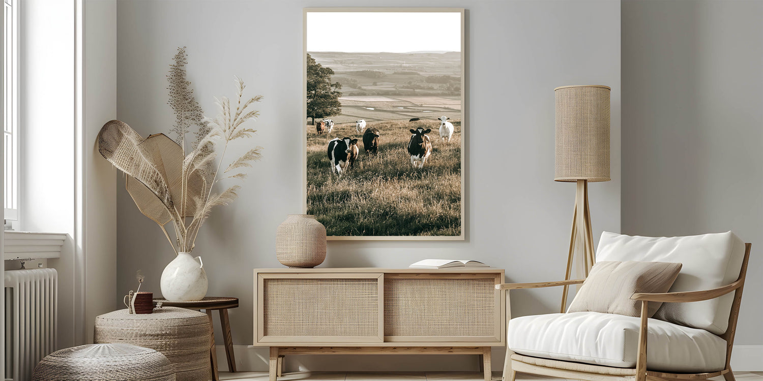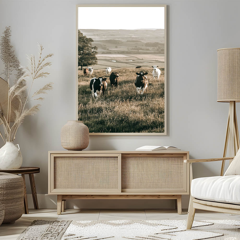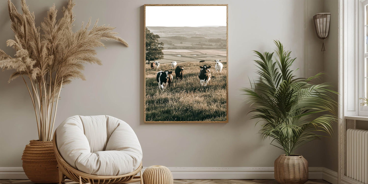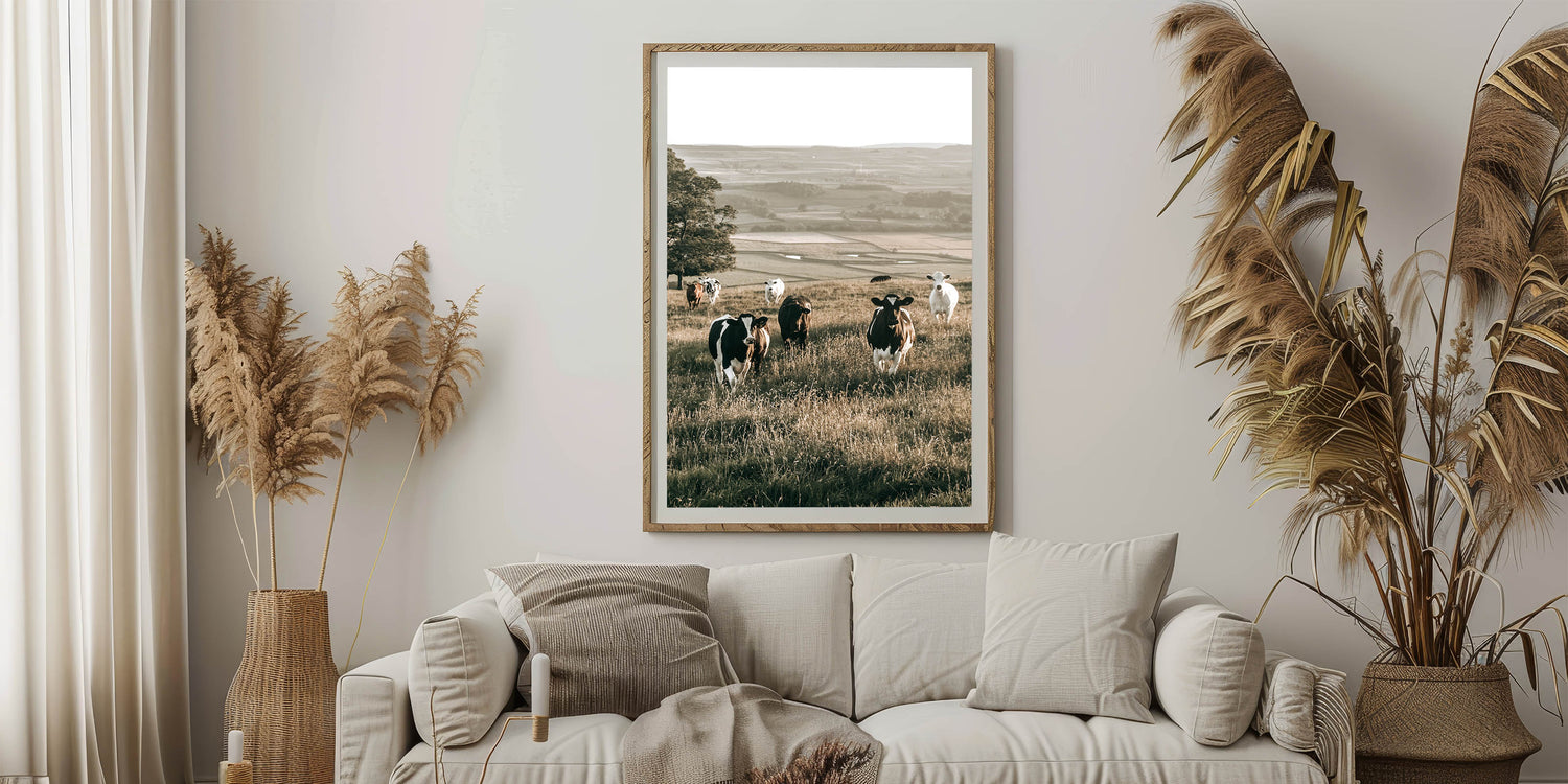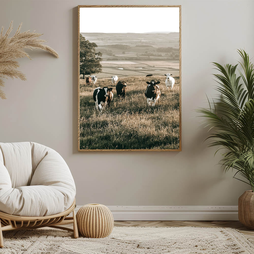 Bring the essence of rural charm into your home with this stunning farmhouse wall art. Featuring a peaceful herd of cows set against a backdrop of rolling hills, this artwork captures the rustic beauty of country living. Perfect for those looking to enhance their space with vintage-inspired farmhouse décor, this piece adds a touch of warmth and tranquility to any room.