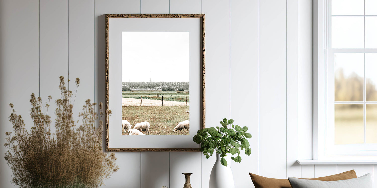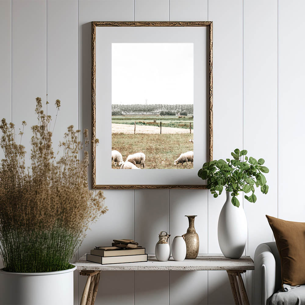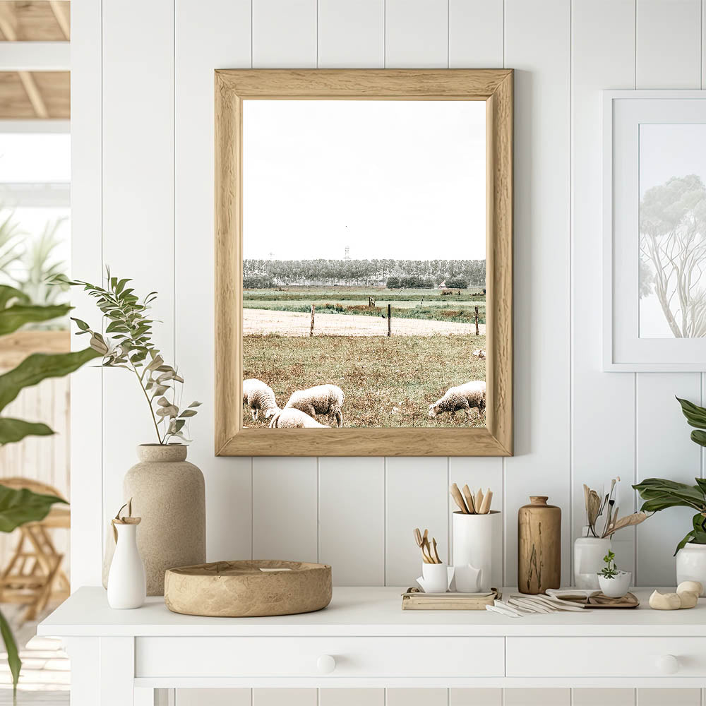 Farmhouse Wall Art: Rustic Country Style with Grazing Sheep Scene