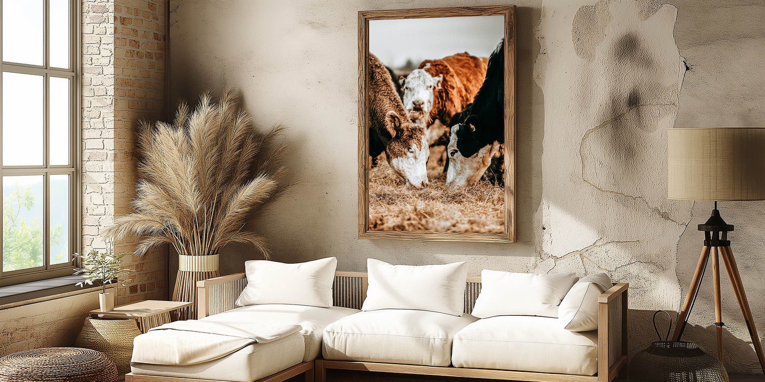 Farmhouse Wall Art - Rustic Cows in Close-Up with Country Farm Charm
