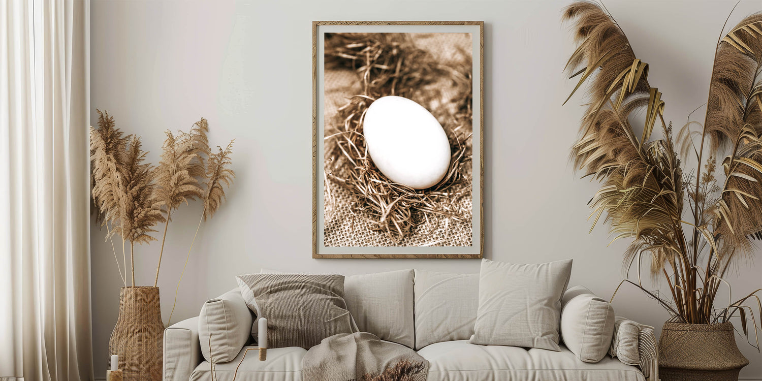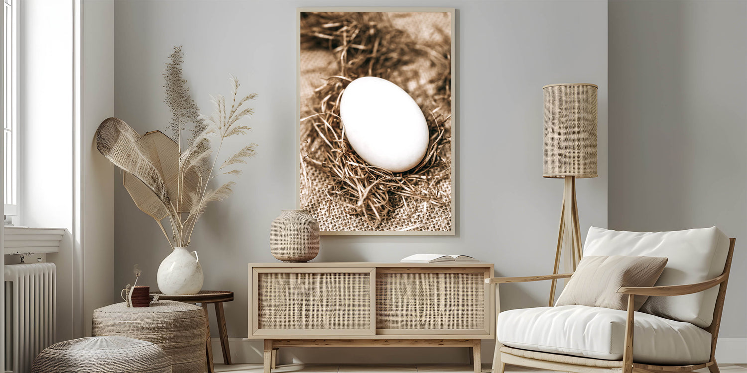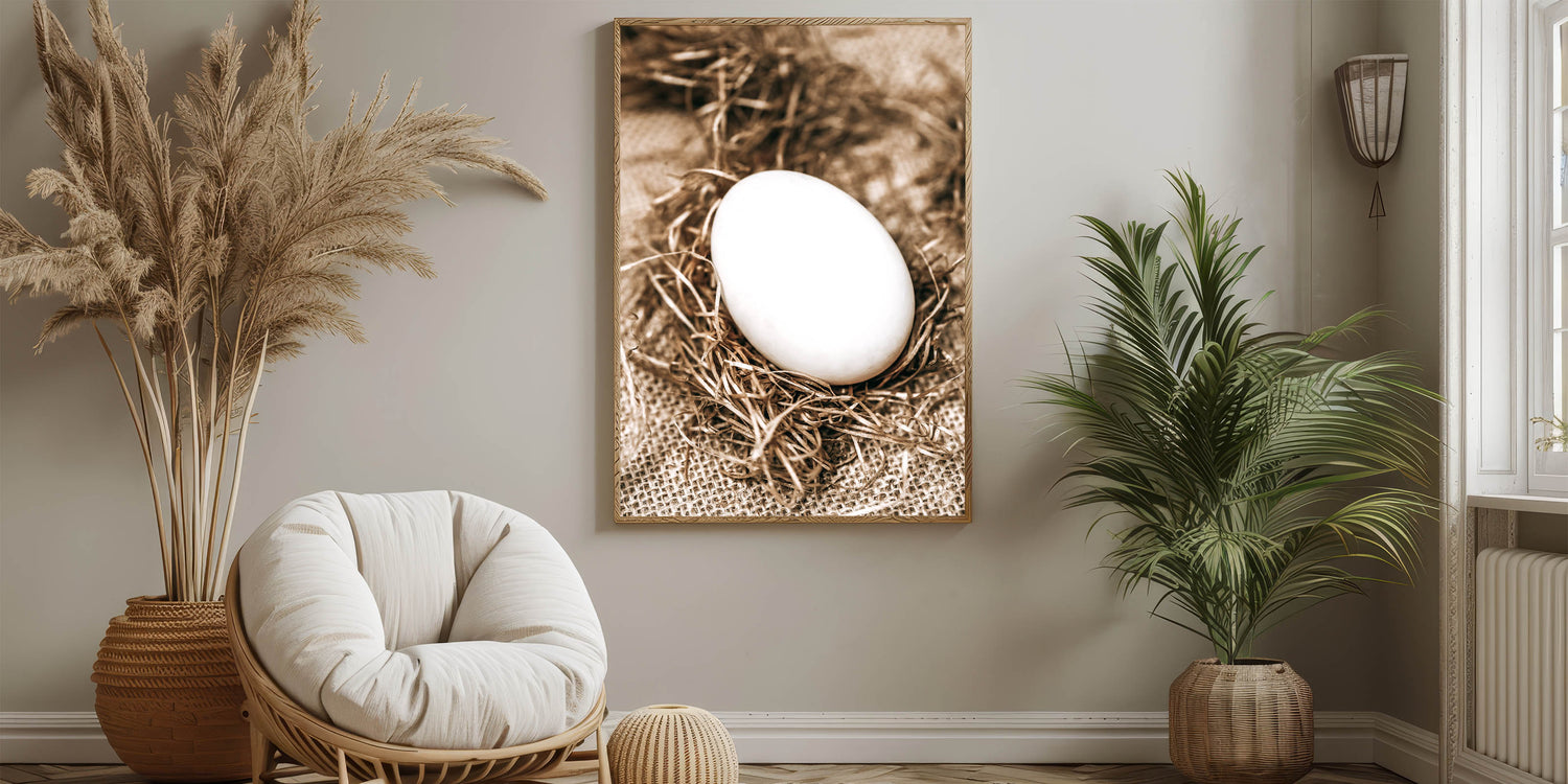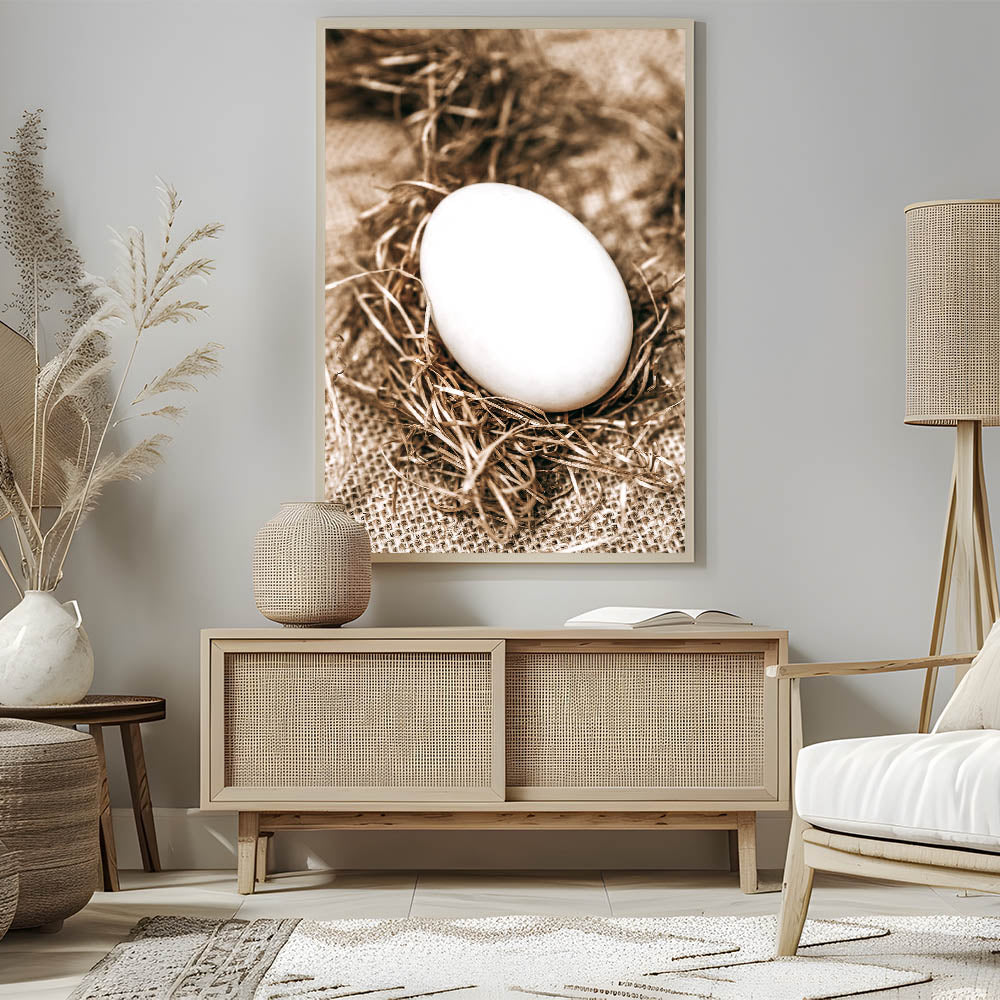 - Natural elements: The earthy textures of the straw and the smooth egg provide a calming and serene atmosphere, ideal for any room.
