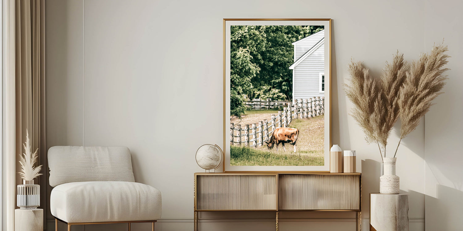 Farmhouse Wall Art - Rustic Grazing Cow with Vintage Country Style Charm