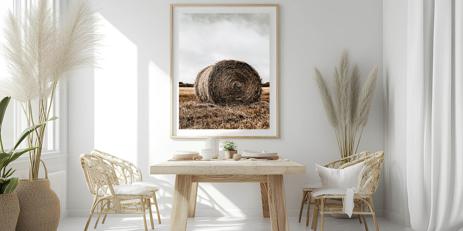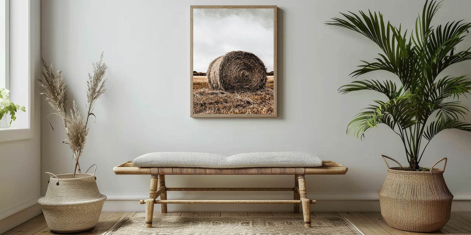 This artwork is a perfect addition to any farmhouse-inspired room, offering a beautiful and peaceful reminder of the simpler things in life. Whether used as a focal point or as part of a larger gallery, this rustic hay bale wall art will bring warmth and character to your home.