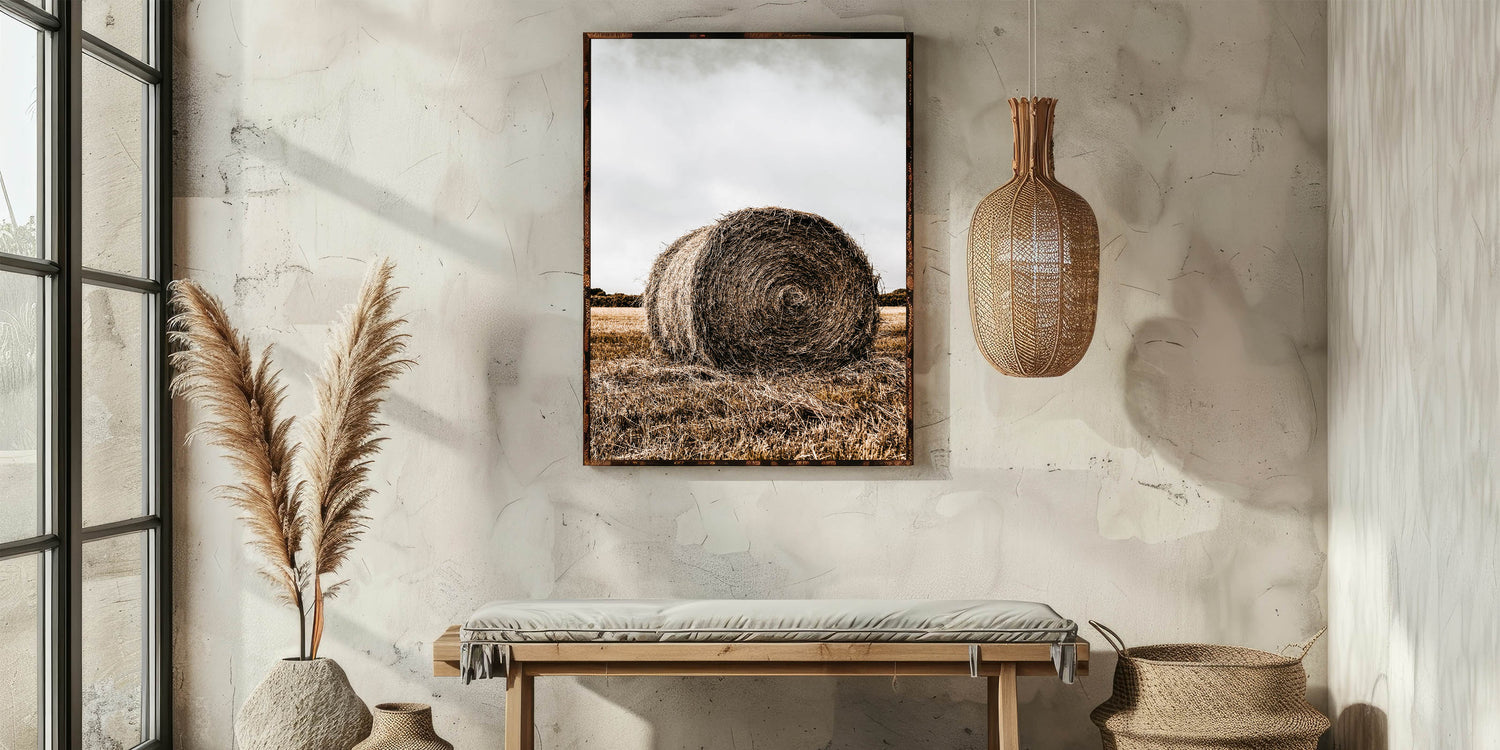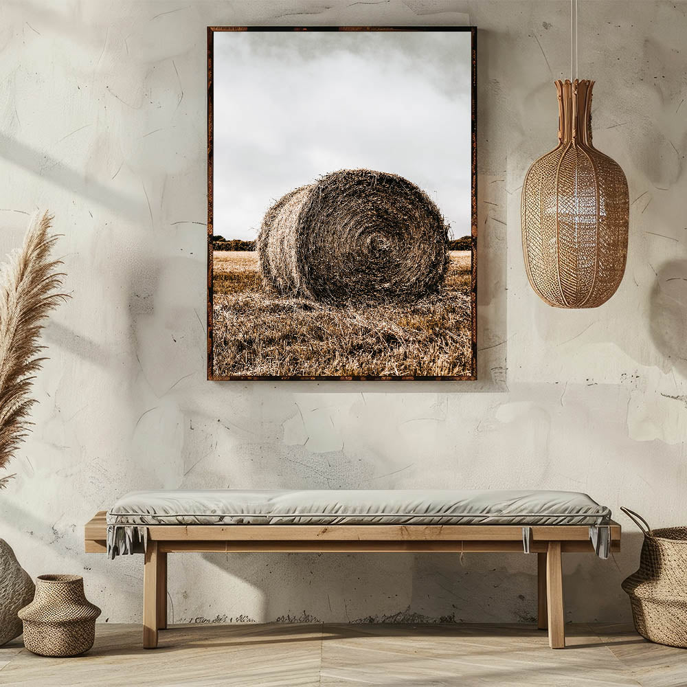 Farmhouse Wall Art - Rustic Hay Bale with Vintage Country Charm