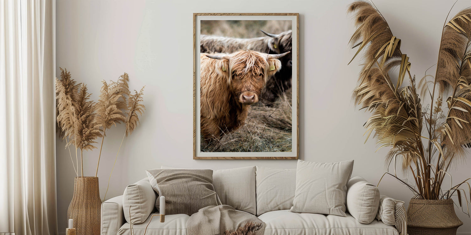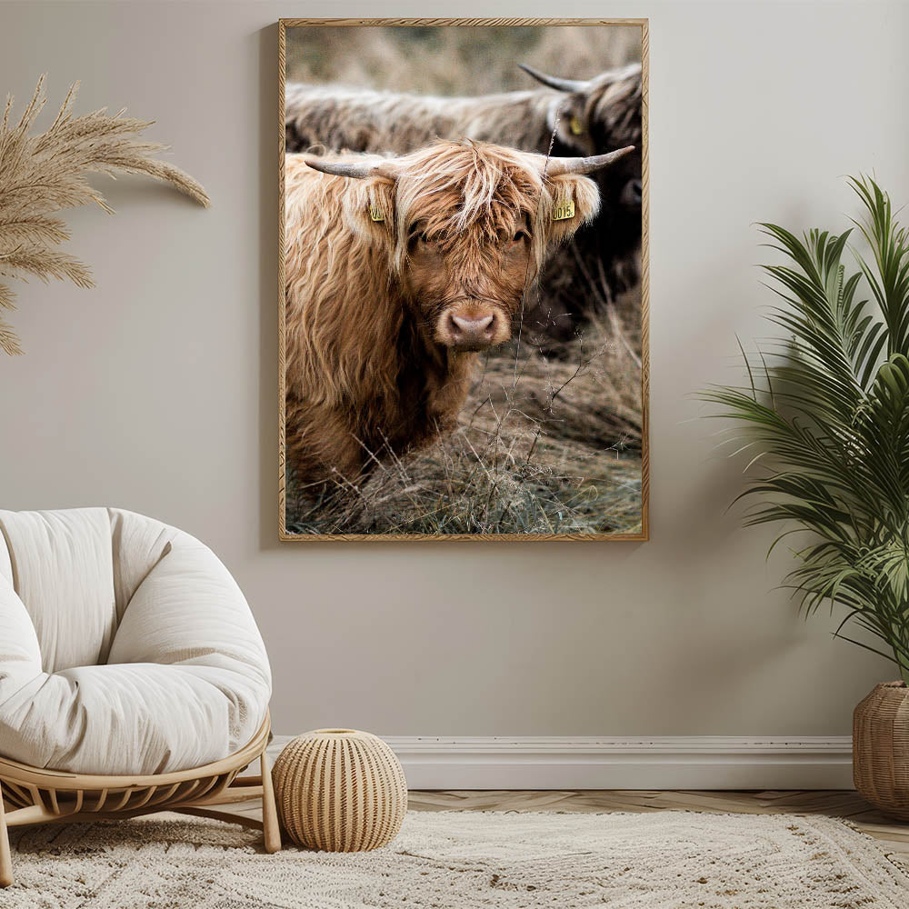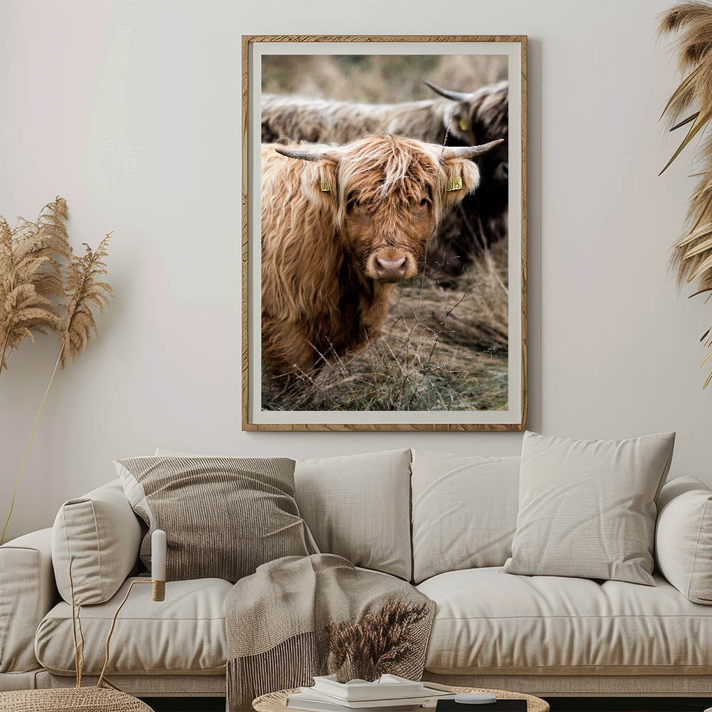 Whether displayed in your living room, kitchen, or hallway, this beautiful Highland cow print will bring a cozy, rustic atmosphere to your home. Perfect for those seeking a country-style accent, this piece blends vintage charm with natural elegance.