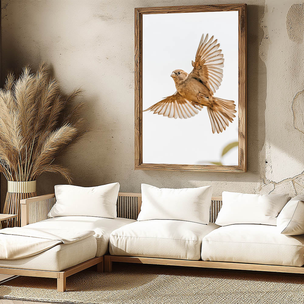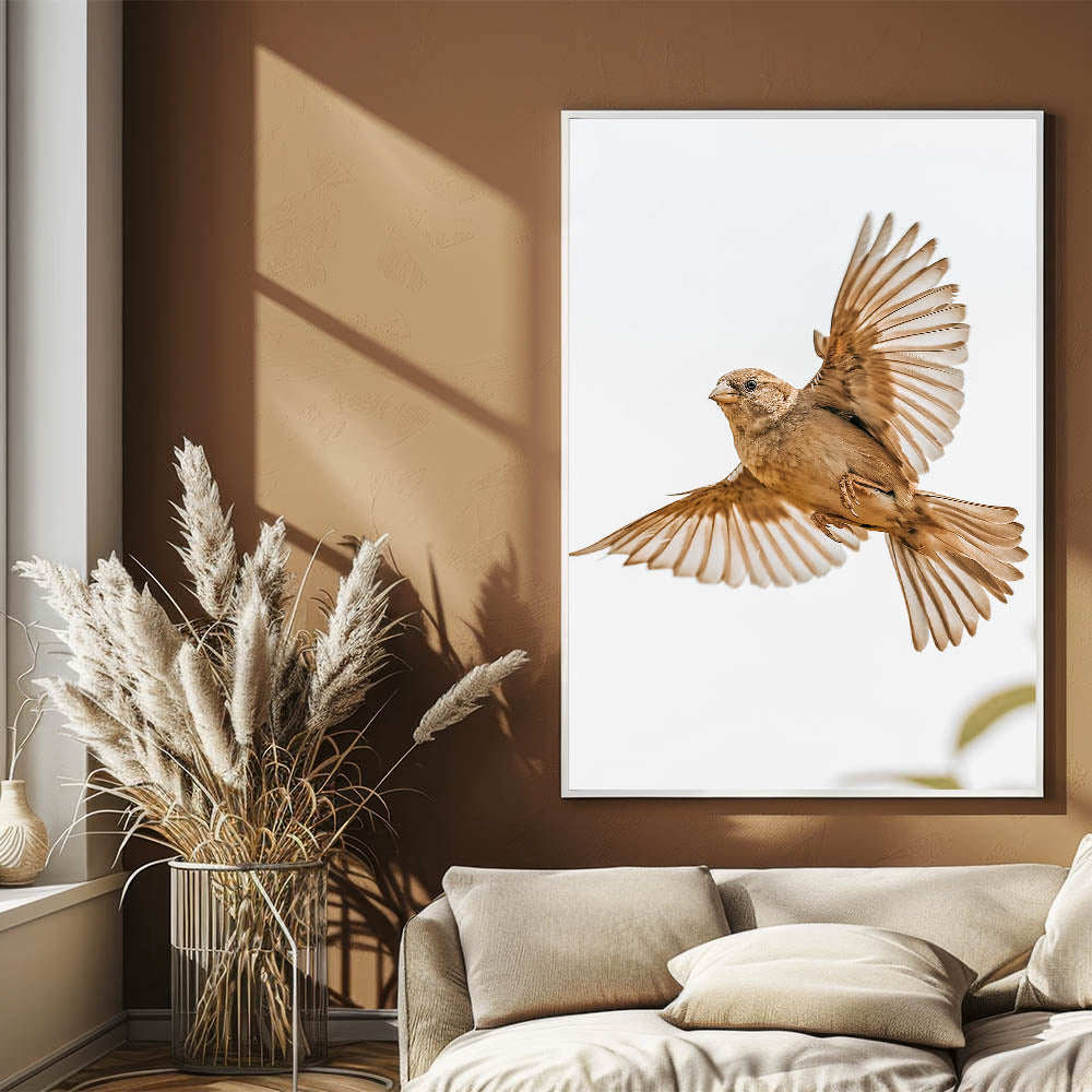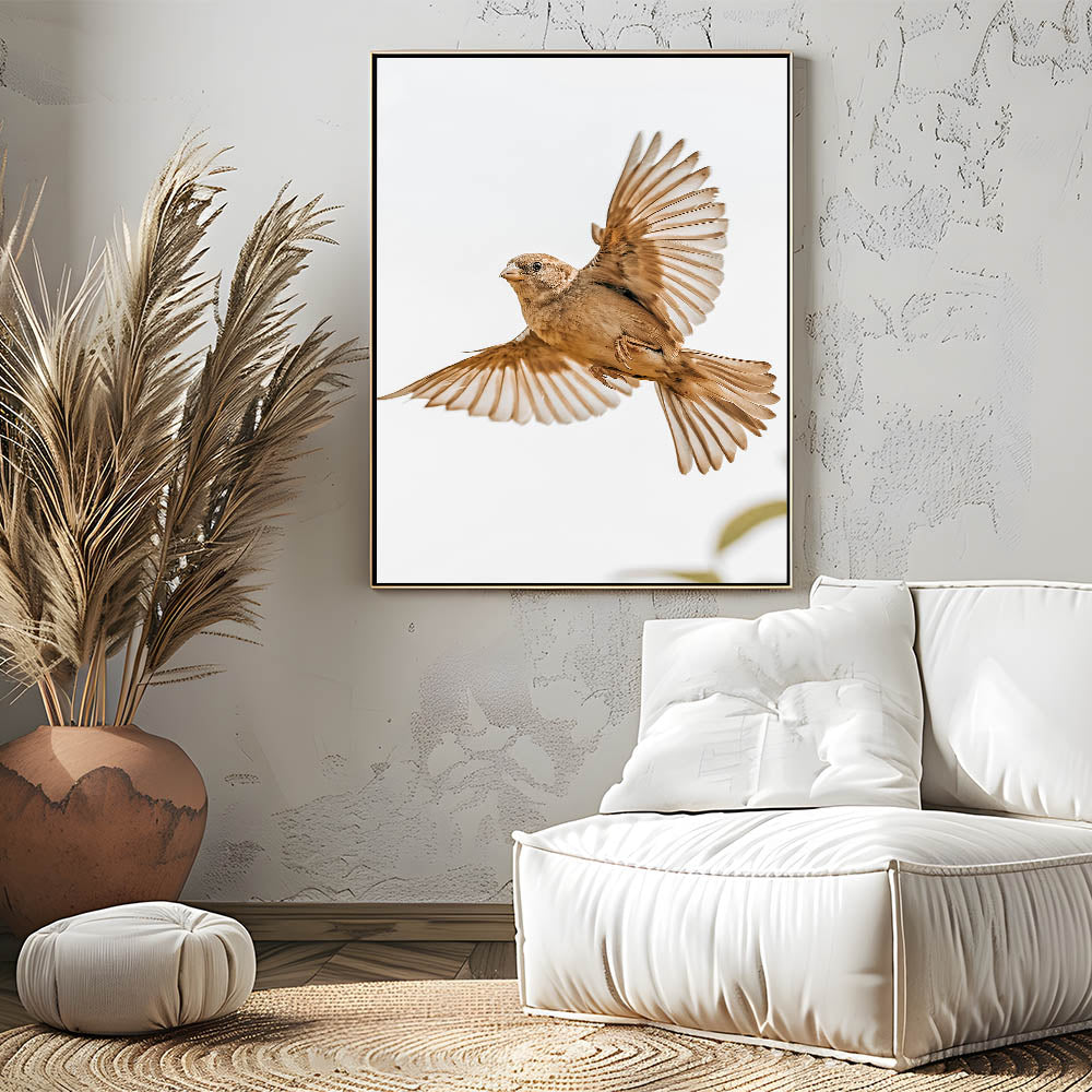 Bring the beauty of nature into your home with this stunning rustic sparrow wall art. The delicate image of a sparrow in mid-flight captures a sense of freedom and movement, adding a peaceful, nature-inspired feel to any space. The soft tones and detailed wings bring out a vintage-inspired look, making this piece perfect for enhancing your farmhouse-style decor. Its antique farmhouse aesthetic offers a charming touch of country living style.